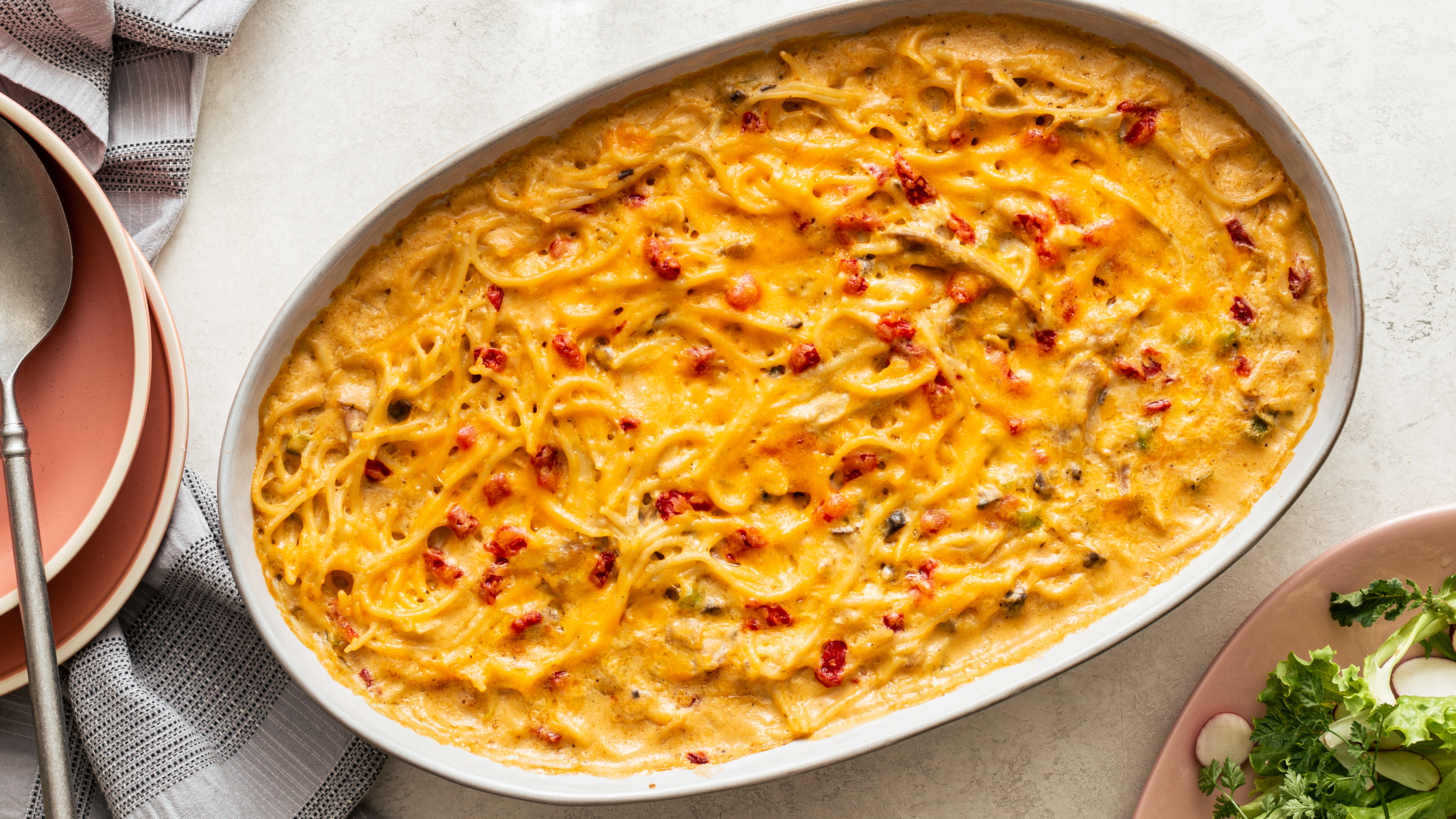 In our humble opinion, Any-Night Chicken Spaghetti should be on the menu no matter what day of the week it is! How can you blame us? It's pretty hard to turn down those notable noodles serendipitously spinning in a creamy and slightly spicy sauce. And another nice little nighttime perk it brings is that it doesn't take much time to throw together. So, you can enjoy your food and relax from the busy day you've just made it through. Any-Night Chicken Spaghetti is there for you... every single night!