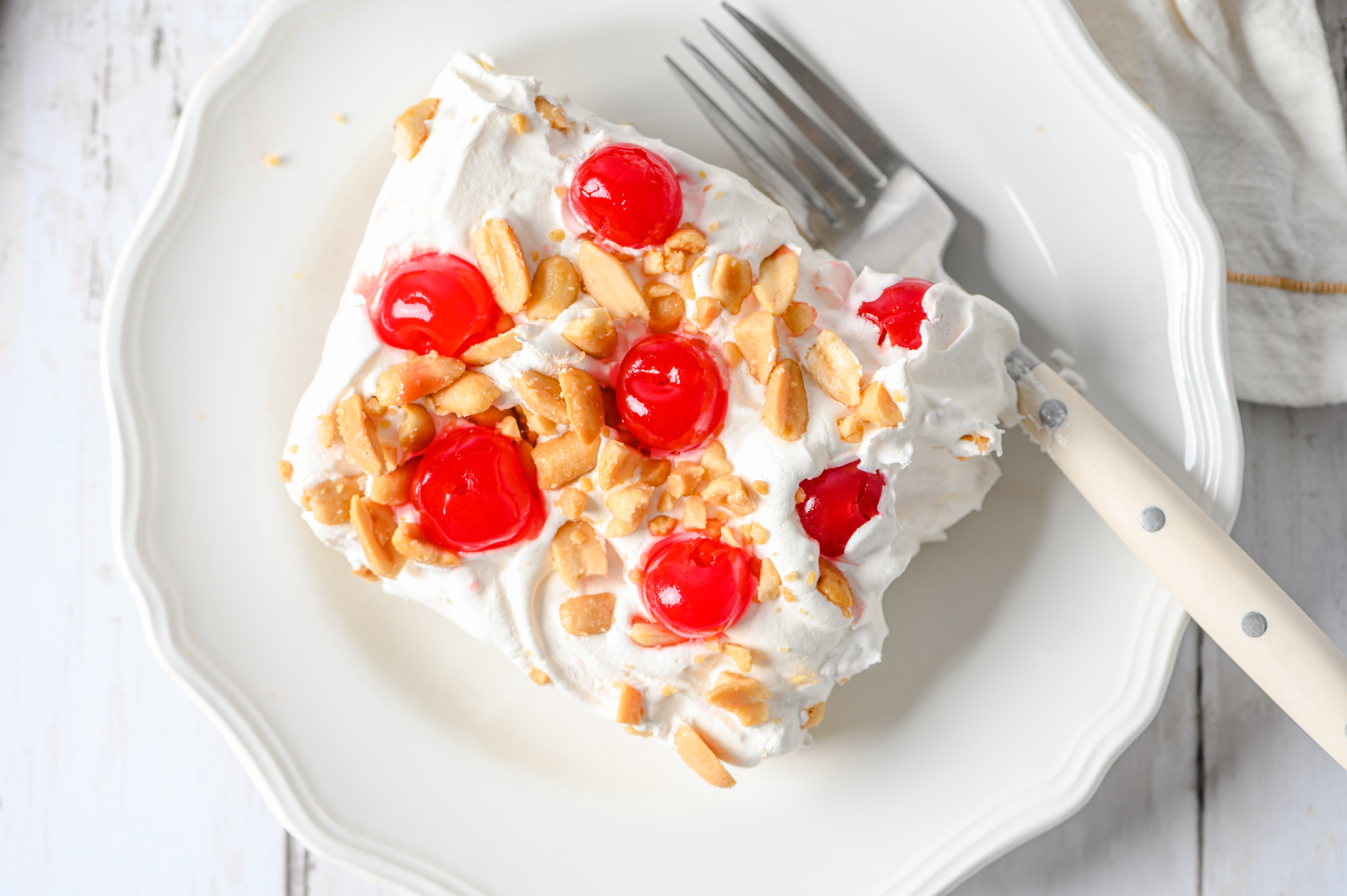 Step 8 -Top the whipped topping with the cherries and the peanuts.