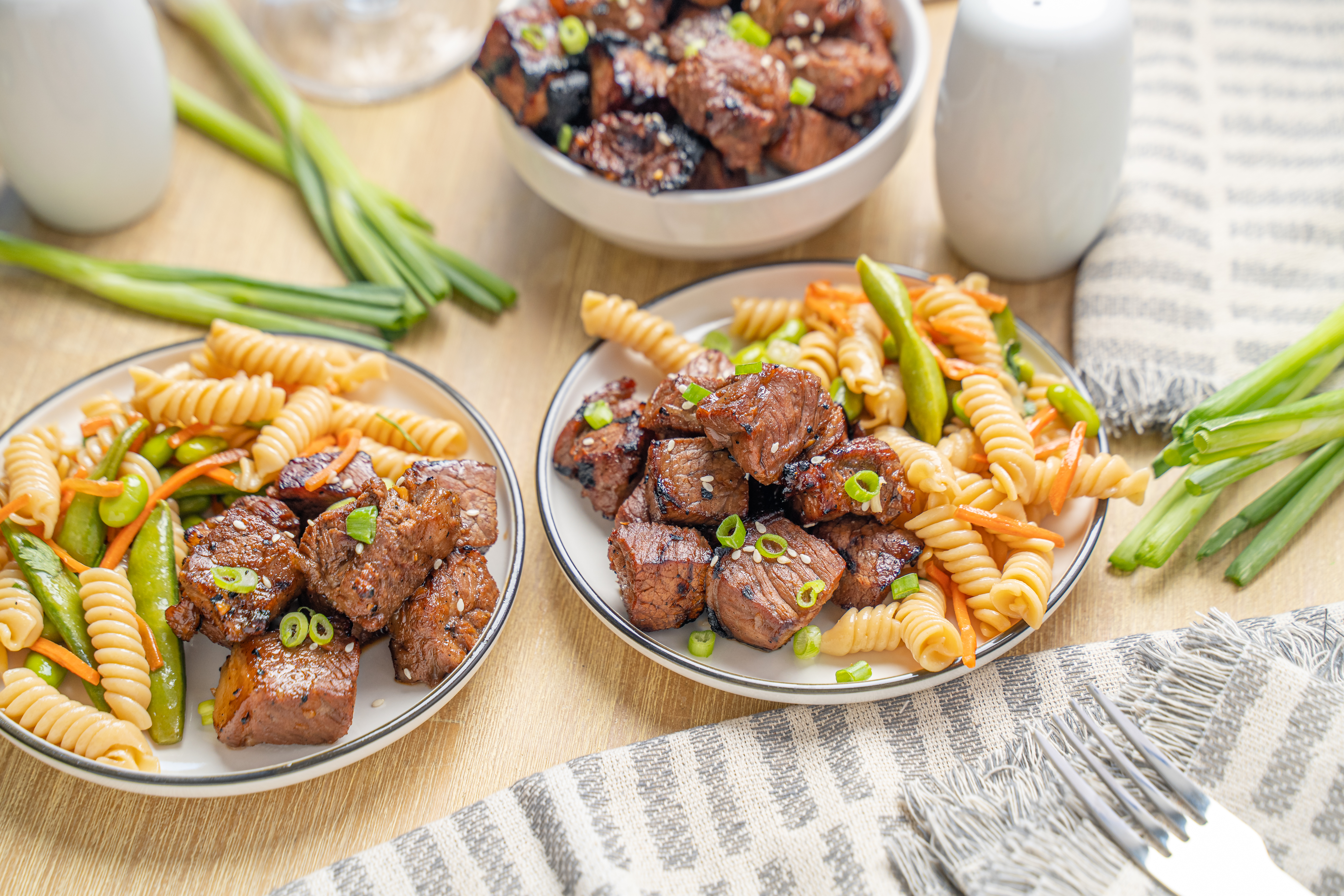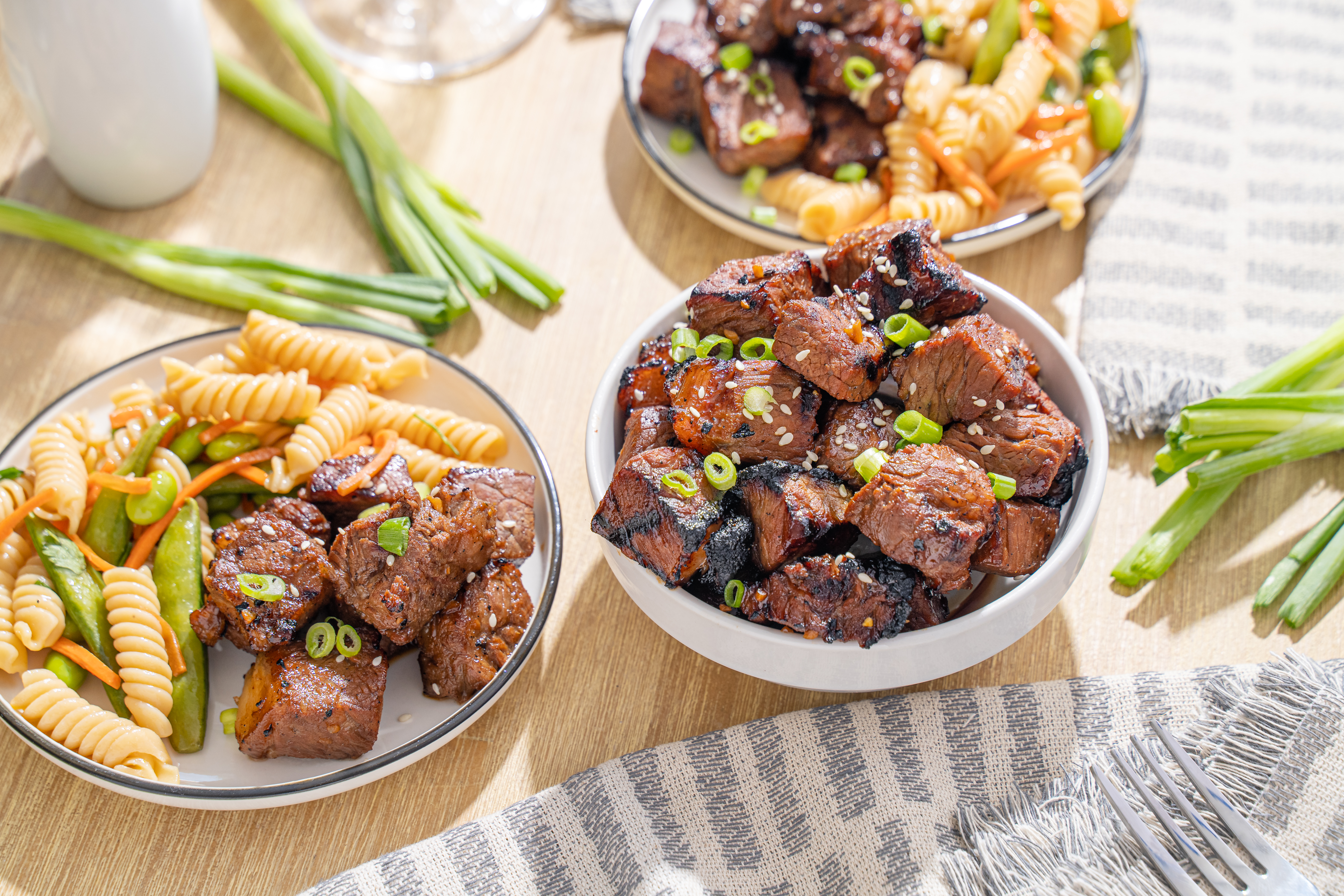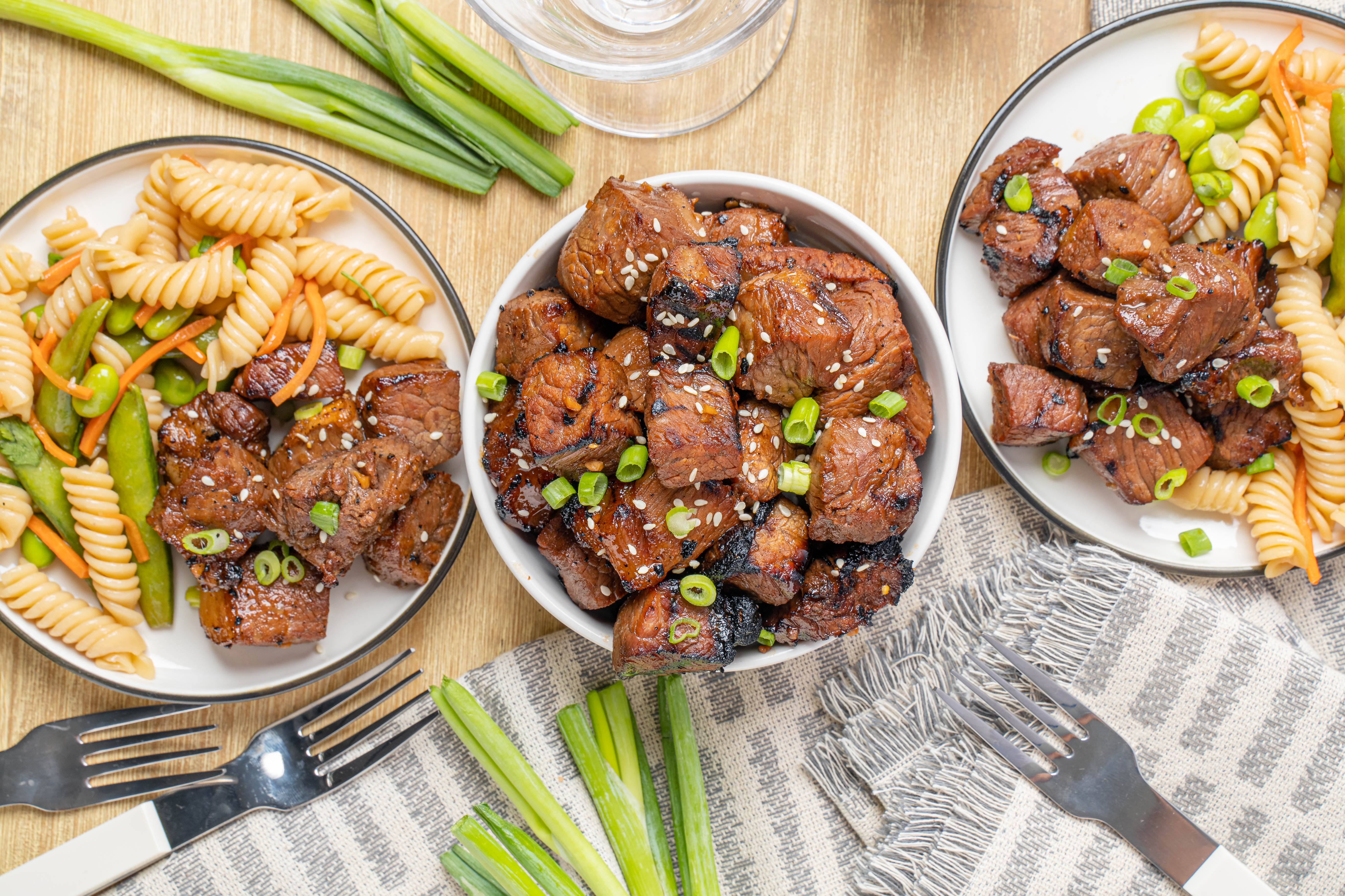 - 2 pounds steak, such as rib-eye, top sirloin, or tri-tip, cubed