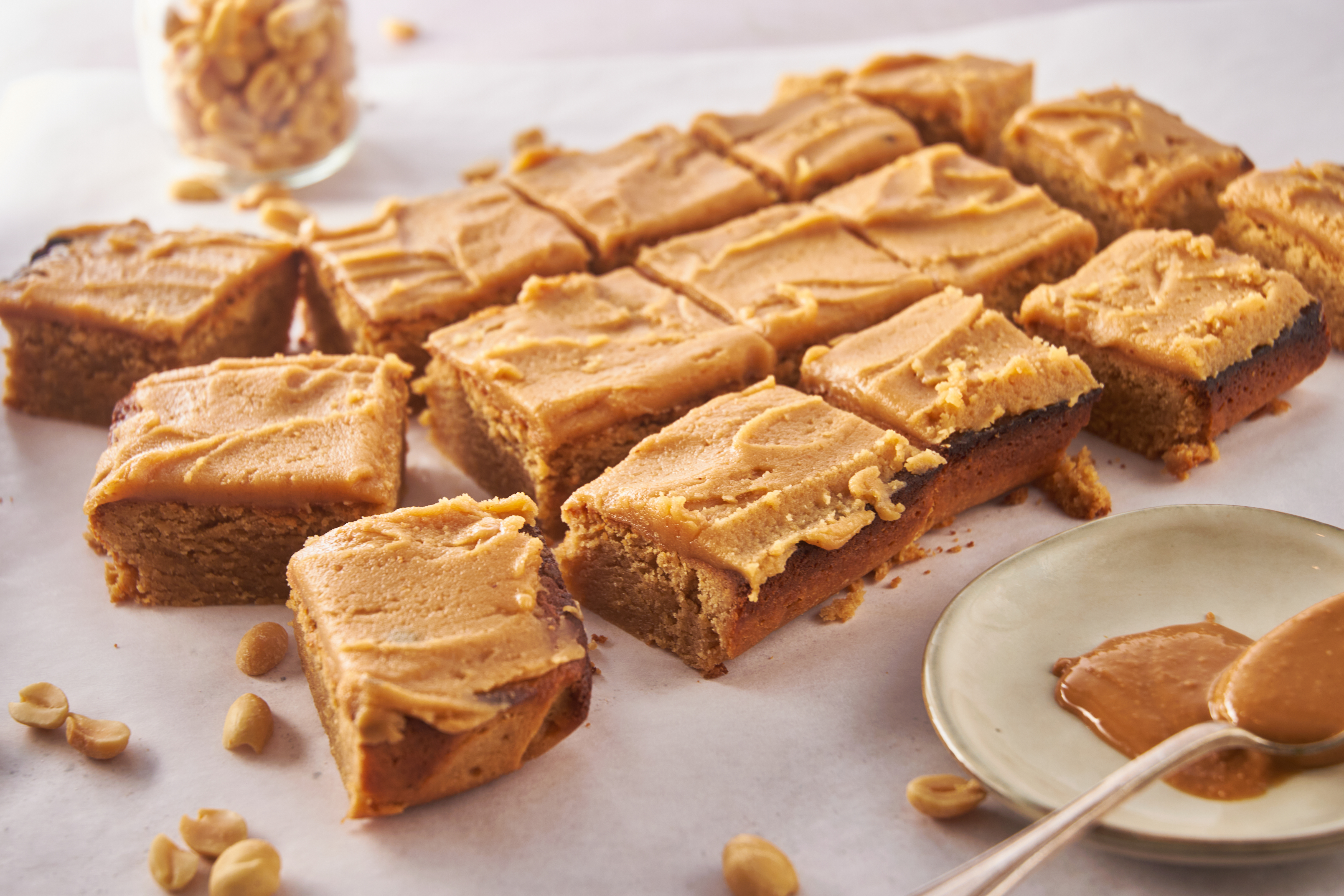 It's time to go back to school! And no, we don't actually mean it's time to hit the books. What we're saying is, with one taste of these Cafeteria Peanut Butter Bars, your tastebuds will be sent right back to those semi-crowded cafeteria tables full of your friends and classmates for lunch. Imagine it... you just finished up your sloppy joe and carrots and you actually saved your dessert for last, because you know it's worth the wait. You bite into the moist peanut butter square that is smothered with a sugary, sweet, peanut buttery icing and it's like, actually the best part of your day. Life was so simple back then, huh? Well, let's go back in time with some of these Cafeteria Peanut Butter Bars!