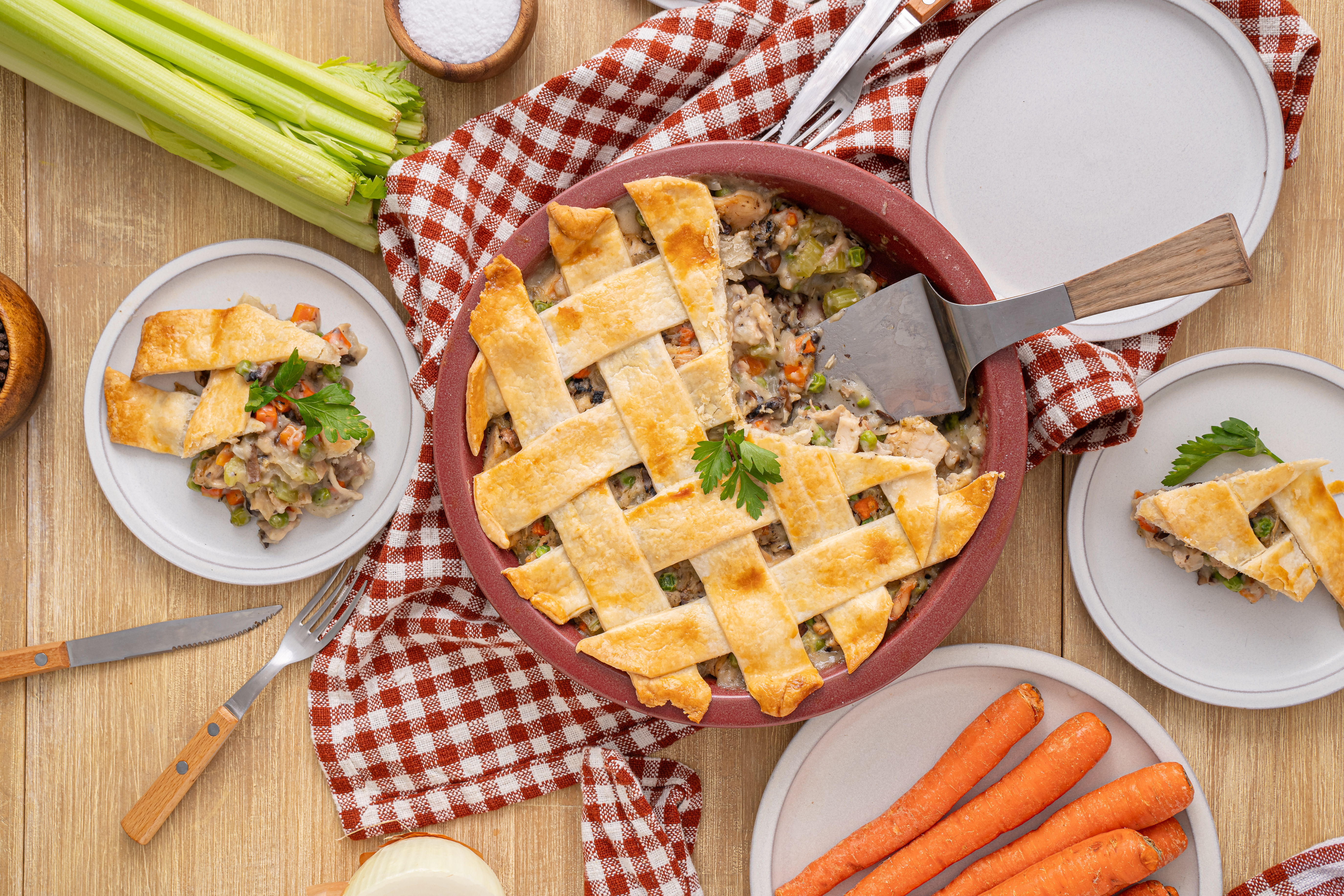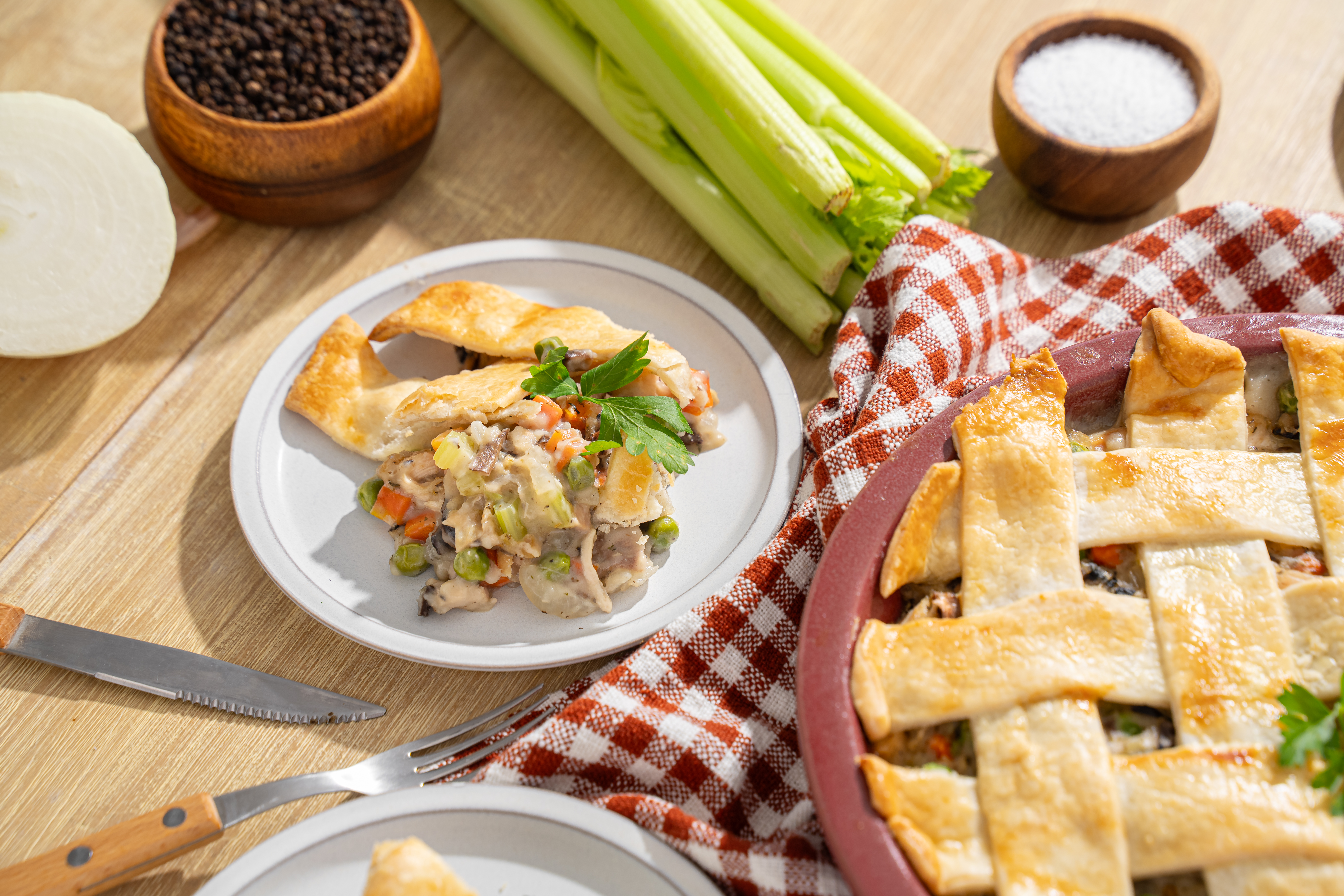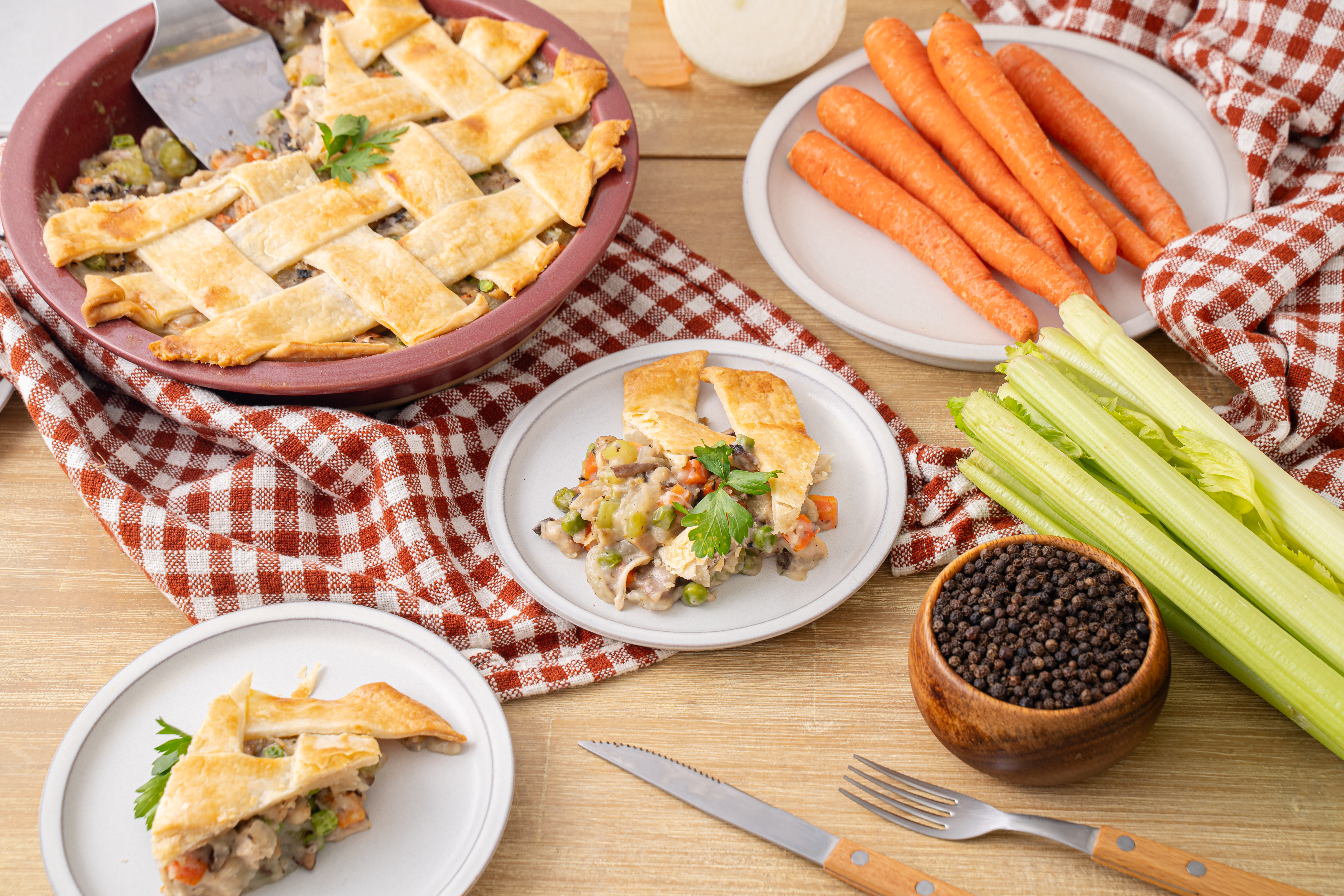 Some meals are intimidating to make, but this one is as easy as pie! Chicken Pot Pie Supper is a down-home and easy way to put a great meal on the table that your family will long for! Topped with a golden flaky crust and loaded with delicious chicken, mushrooms, and peas in a perfectly seasoned sauce, this pie will definitely perk up your dinner table. Run, don't walk, and make Chicken Pot Pie Supper, and listen to the compliments roll in. You've got this!