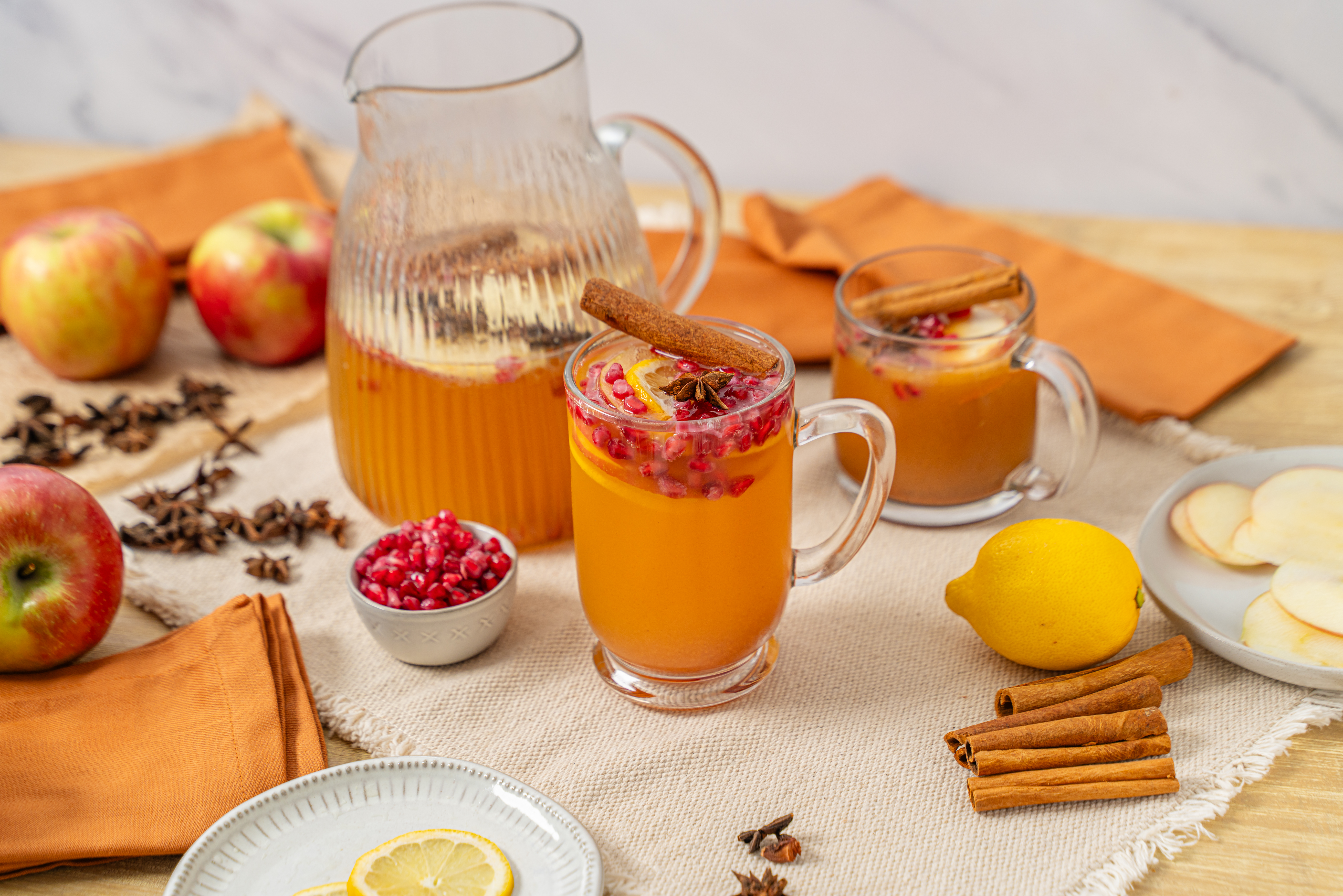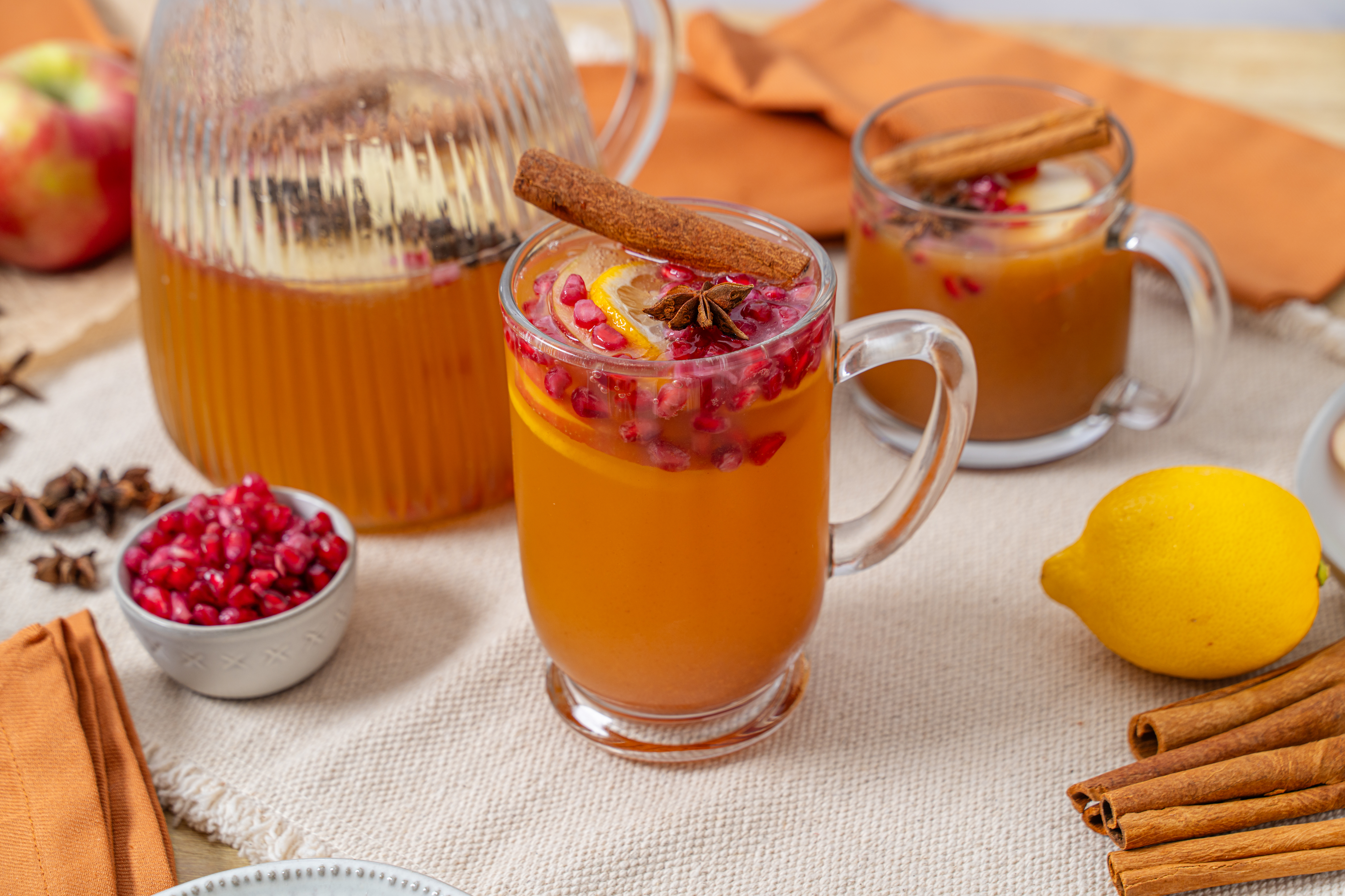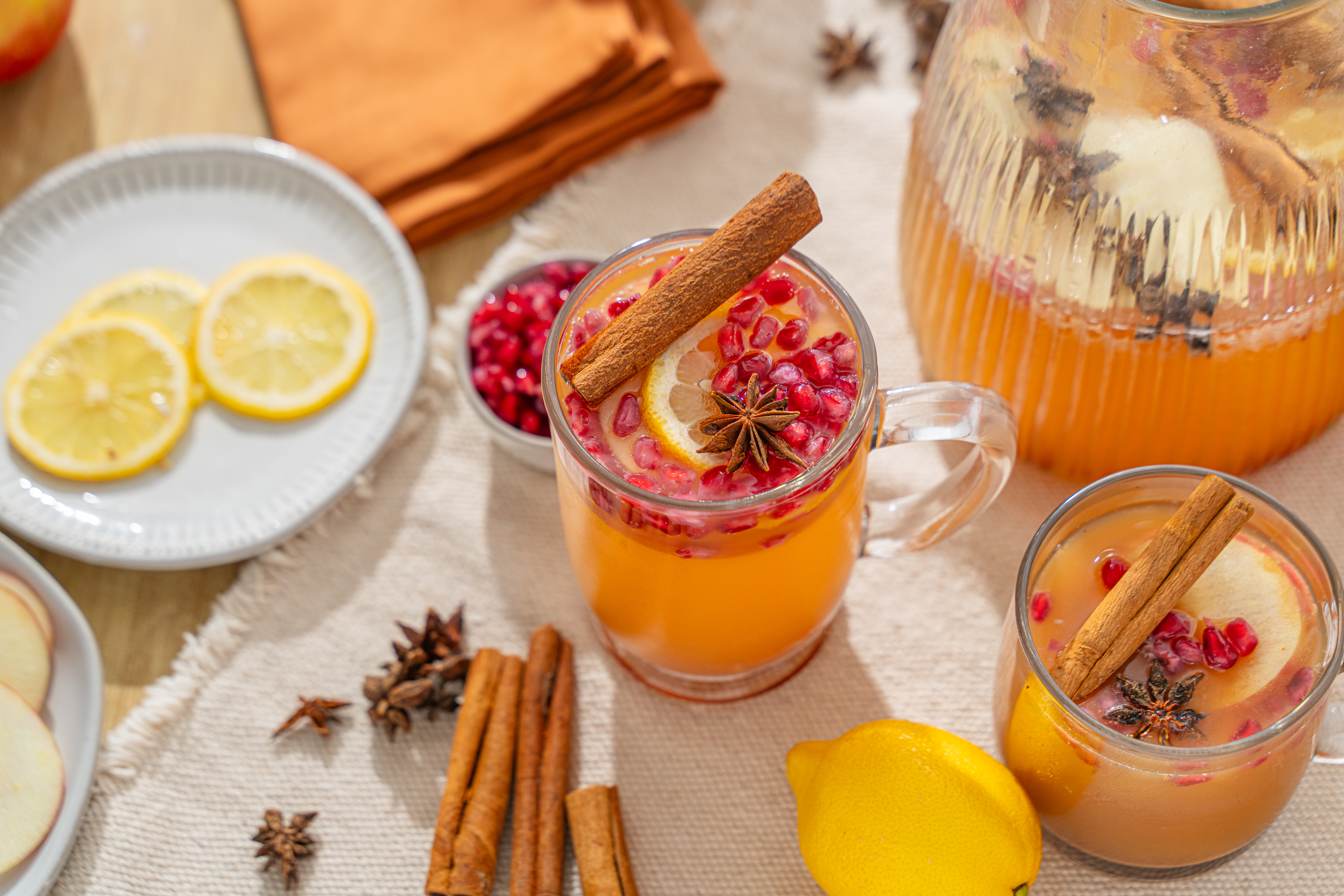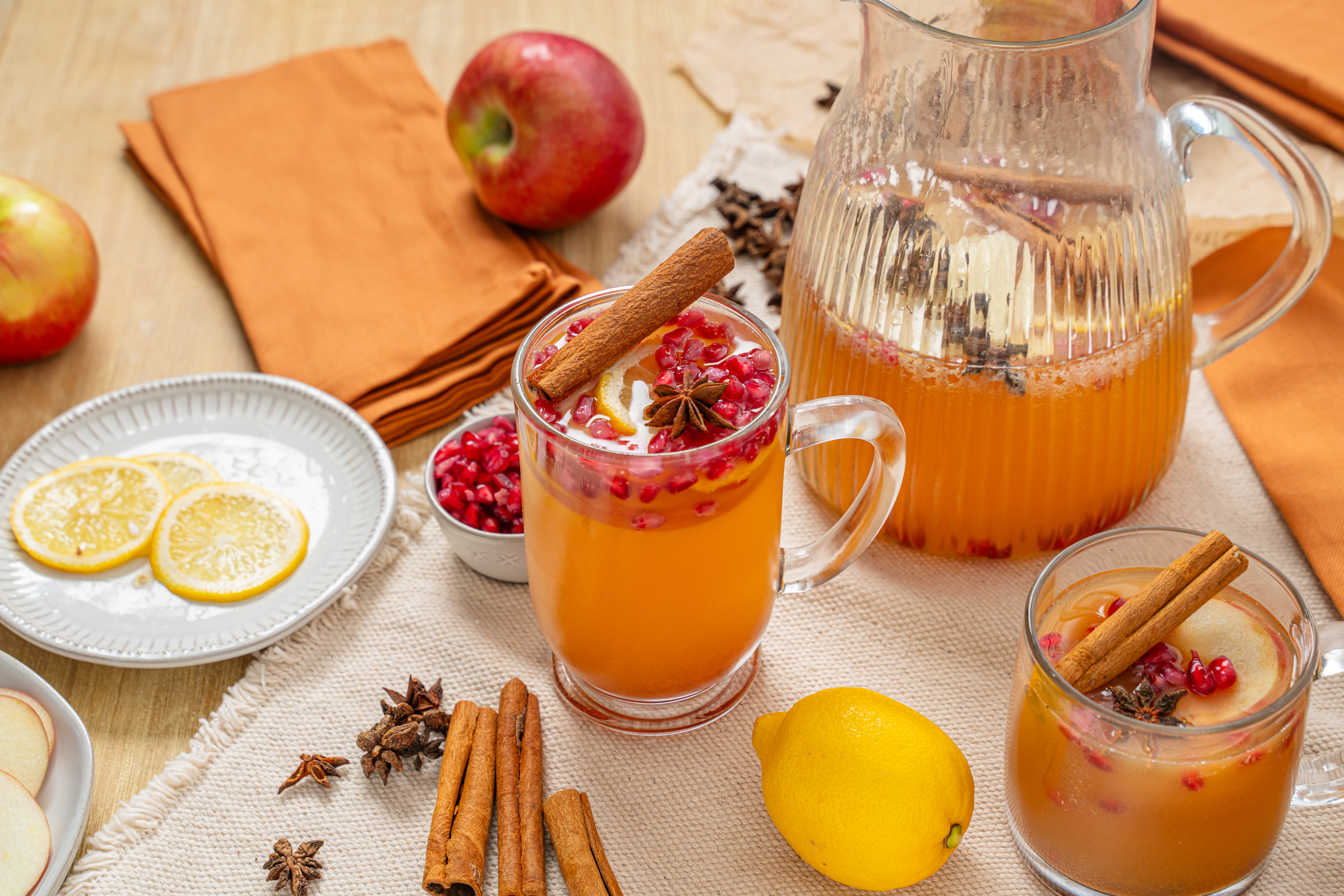 Sangria in the winter? It may sound a little kooky, but Christmas Sangria proves that punch is not the only player in town! Bubbly and beautiful, this golden-brown brew is just sparkling with wonderfully crisp and sweet apple flavor, with slices of pears, apples, and lemons infusing the beverage with fresh flavor! Enhanced with stars of pomegranate and staffs of cinnamon, each cup of Christmas Sangria is filled with Yuletide yumminess! Ho ho ho!