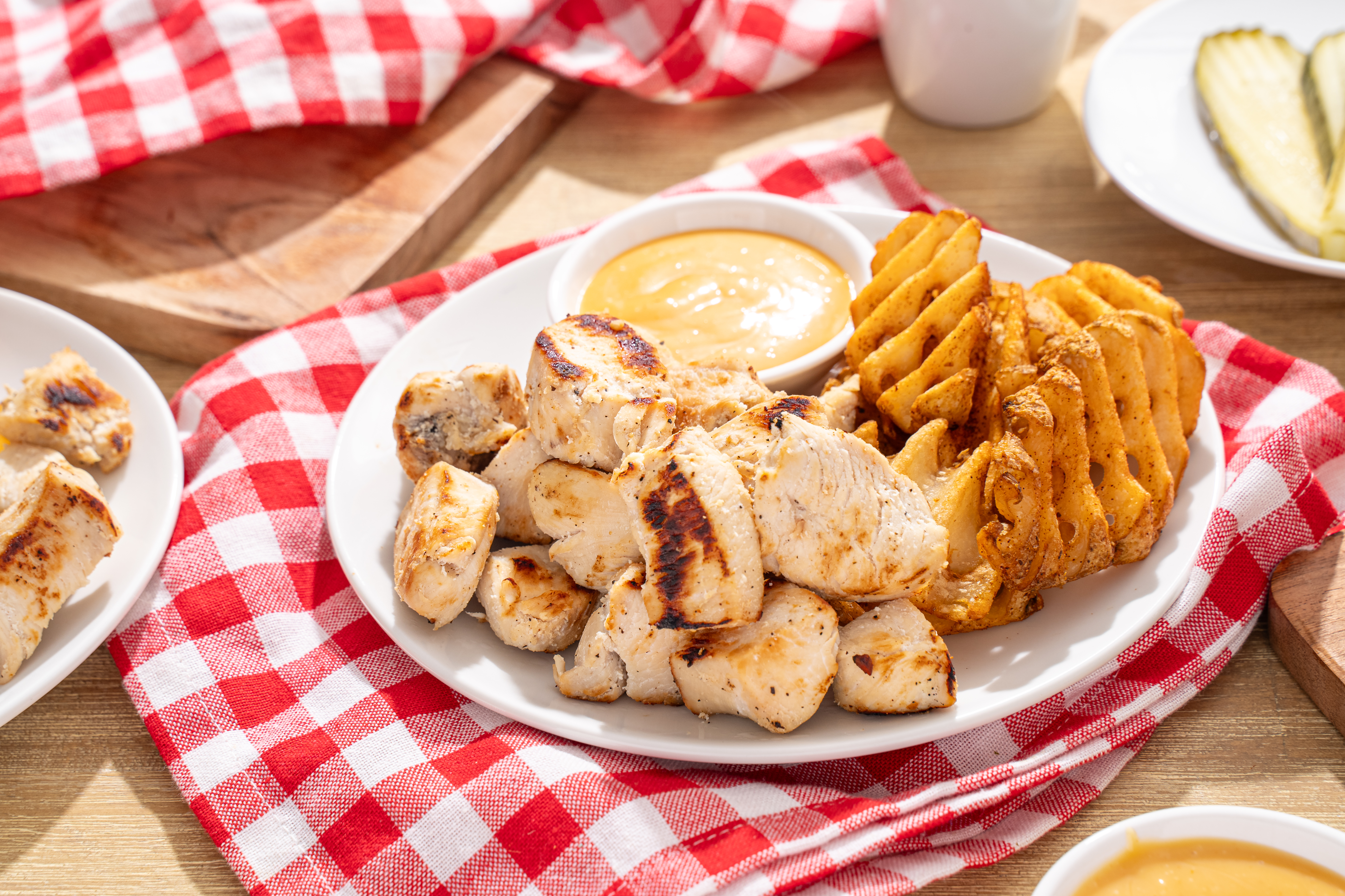 - 4 chicken breasts, boneless and skinless, cut into 1-inch cubes