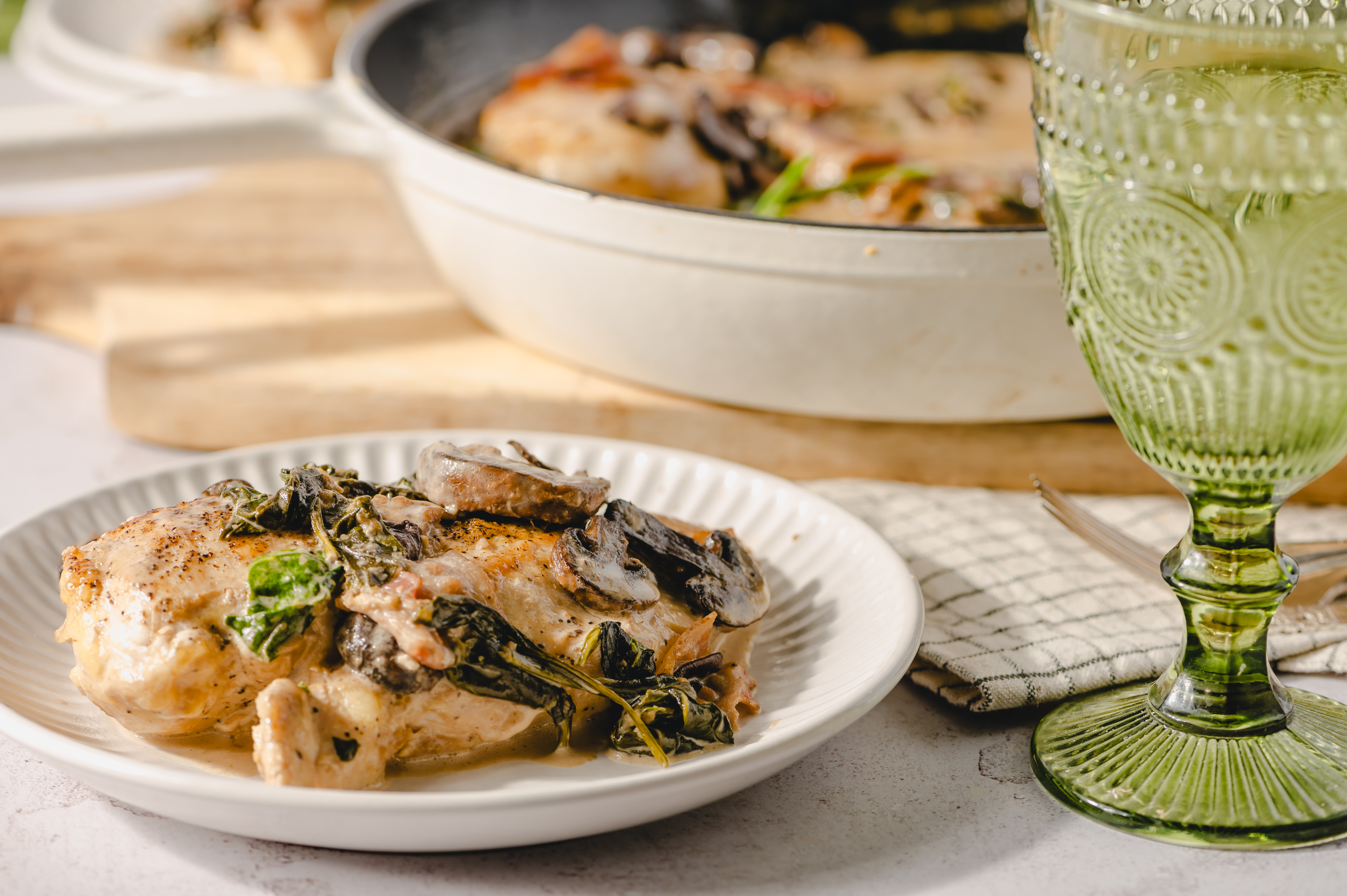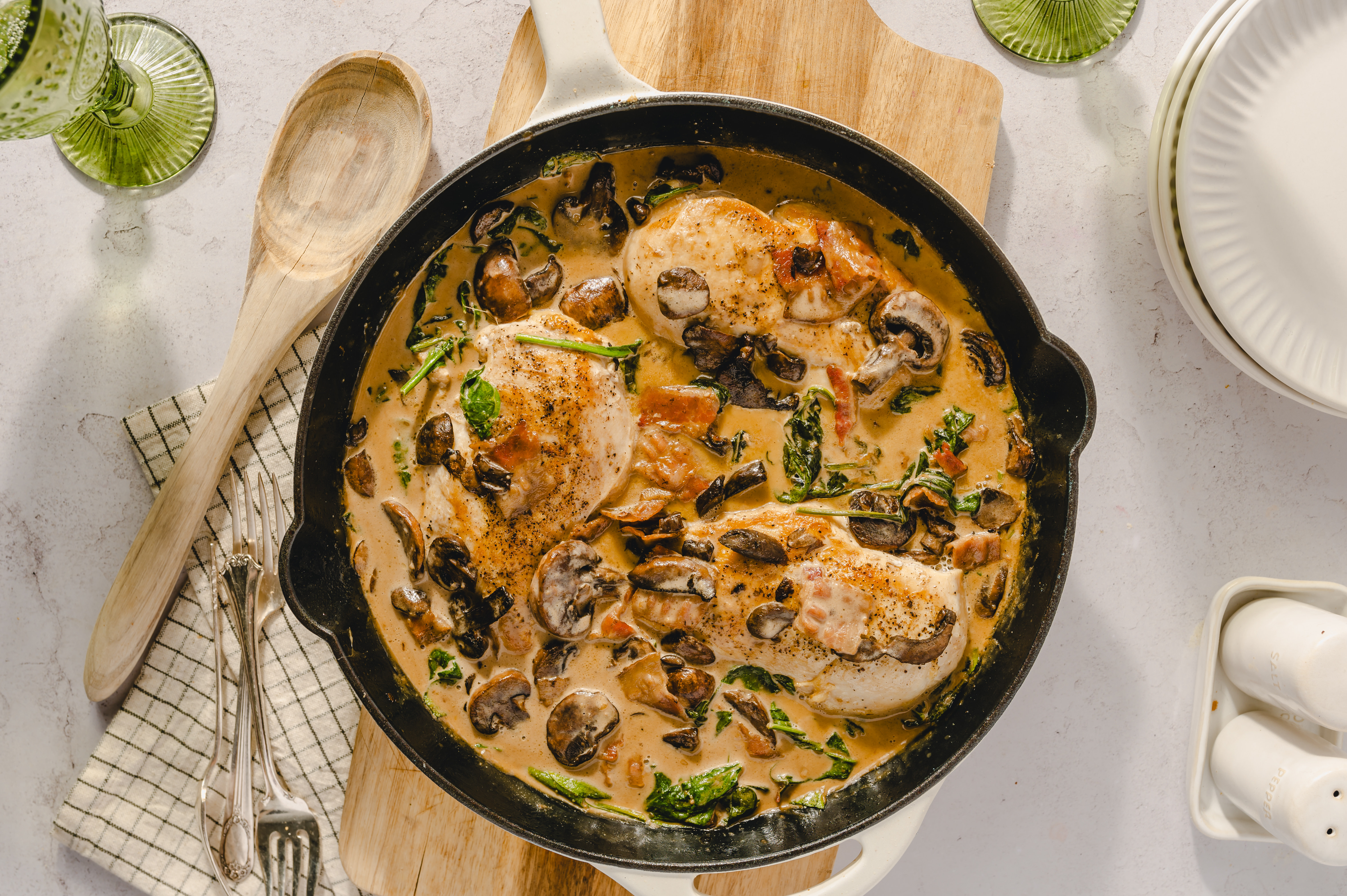 When a stroll through the Italian countryside is not within reach, try another flavorful scenic route. Countryside Chicken will satisfy your desire for a tasty trek for your next meal. Enjoy the view of the tender chicken breasts simmered in a creamy parmesan sauce along with cremini mushrooms, baby spinach, and bacon for perfect companionship. Let Countryside Chicken wind around all your favorites into one beautiful horizon. It's an amazing sight!