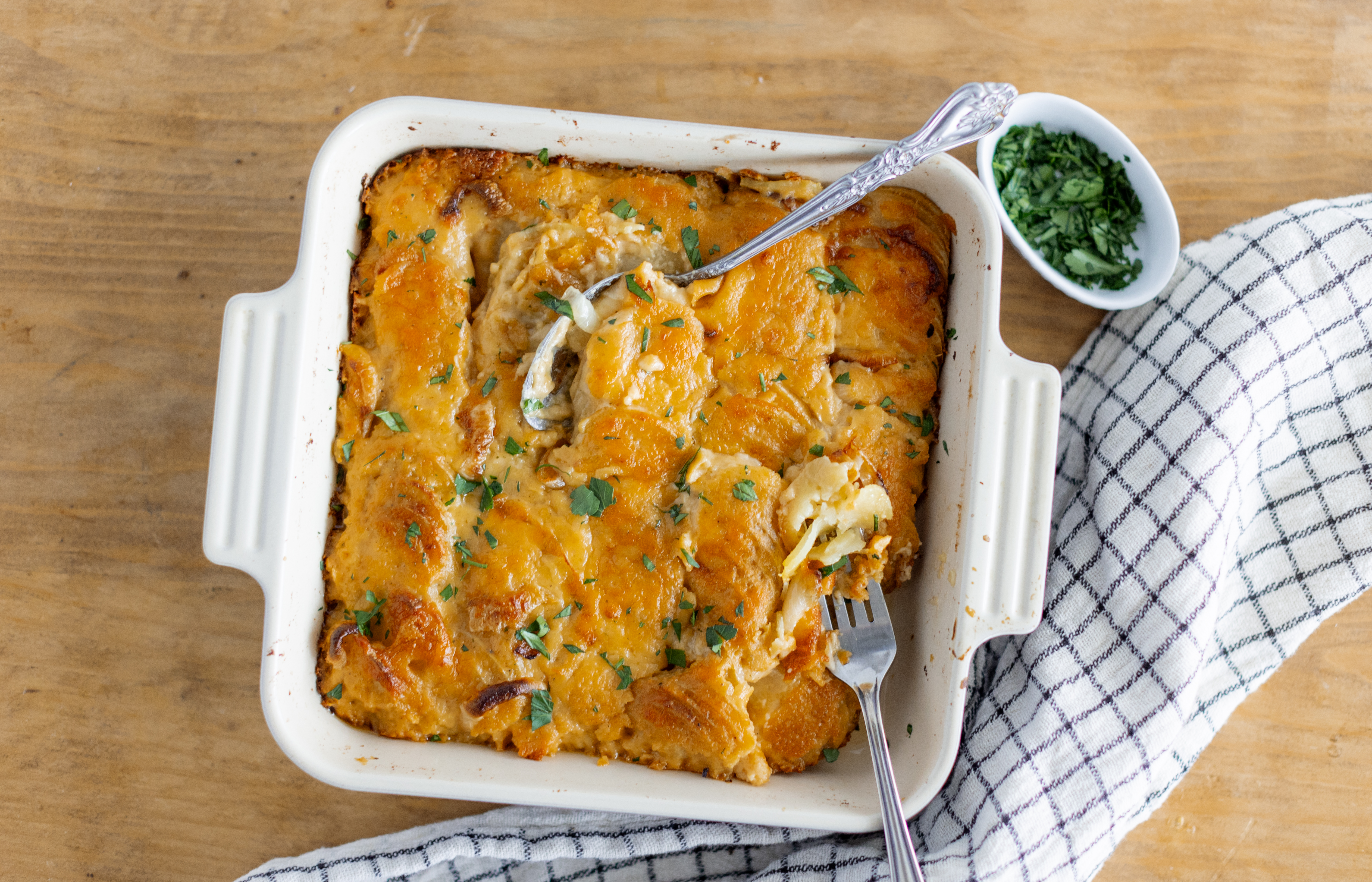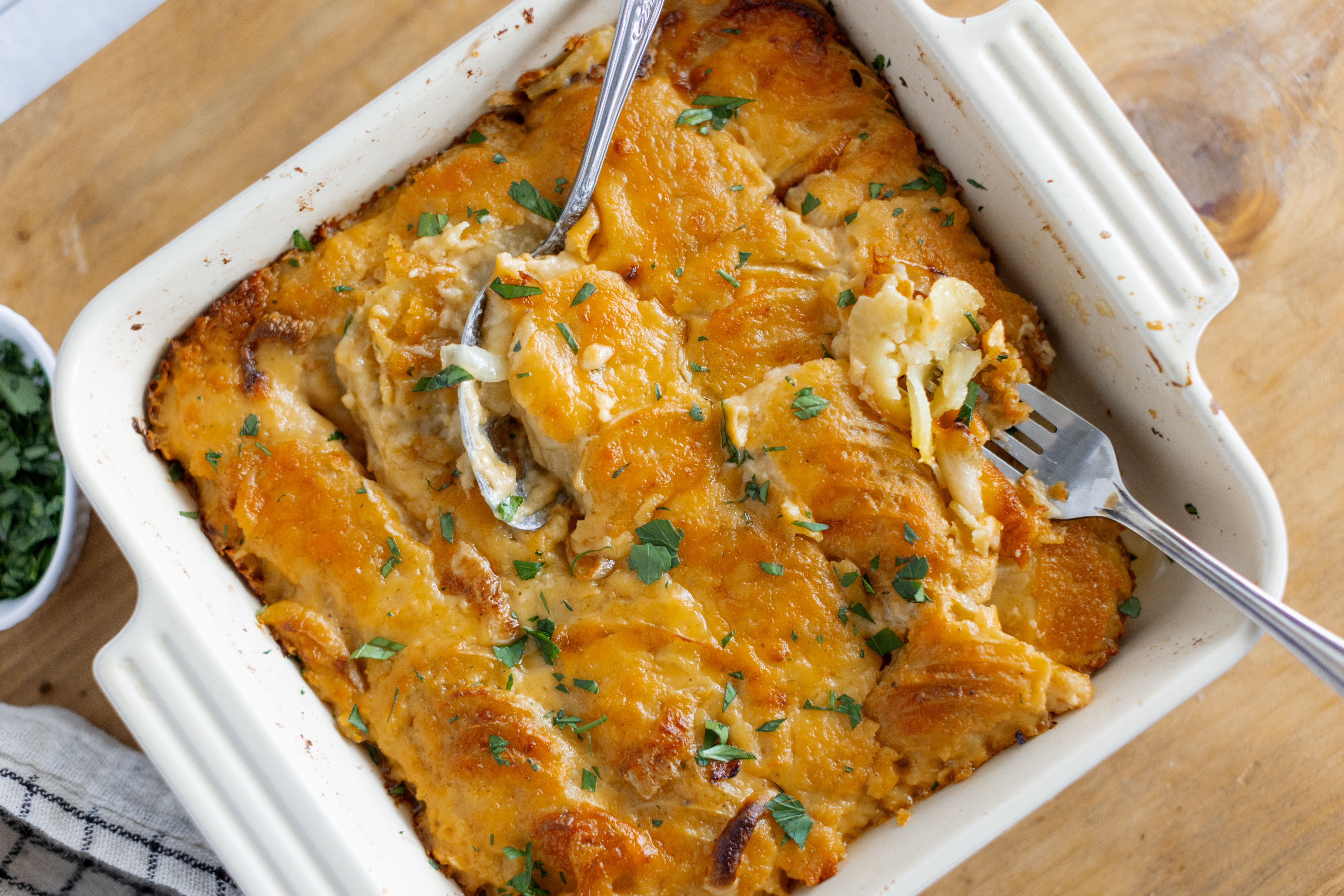 Food is one of Dad's love languages, and it's pretty clear how much he loves us when he makes his signature dish, Dad's Famous Potatoes! Slice upon slice of tender potatoes, nestled with savory onions and smothered with a rich, buttery, cheese sauce... mmmm. It's the warm comfort of your childhood home in a baking dish! Dad's Famous Potatoes deserve to be known and shared with everyone!