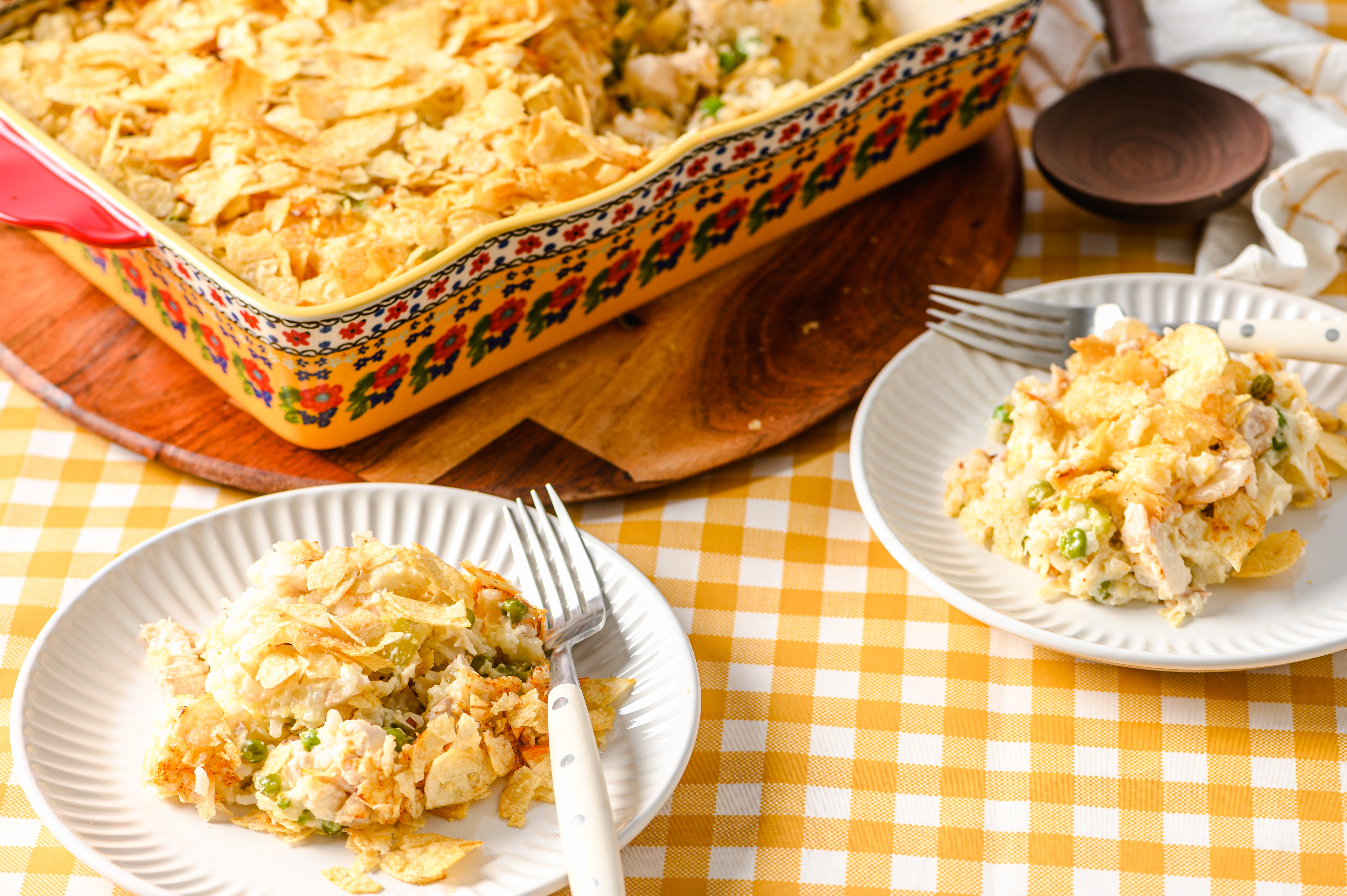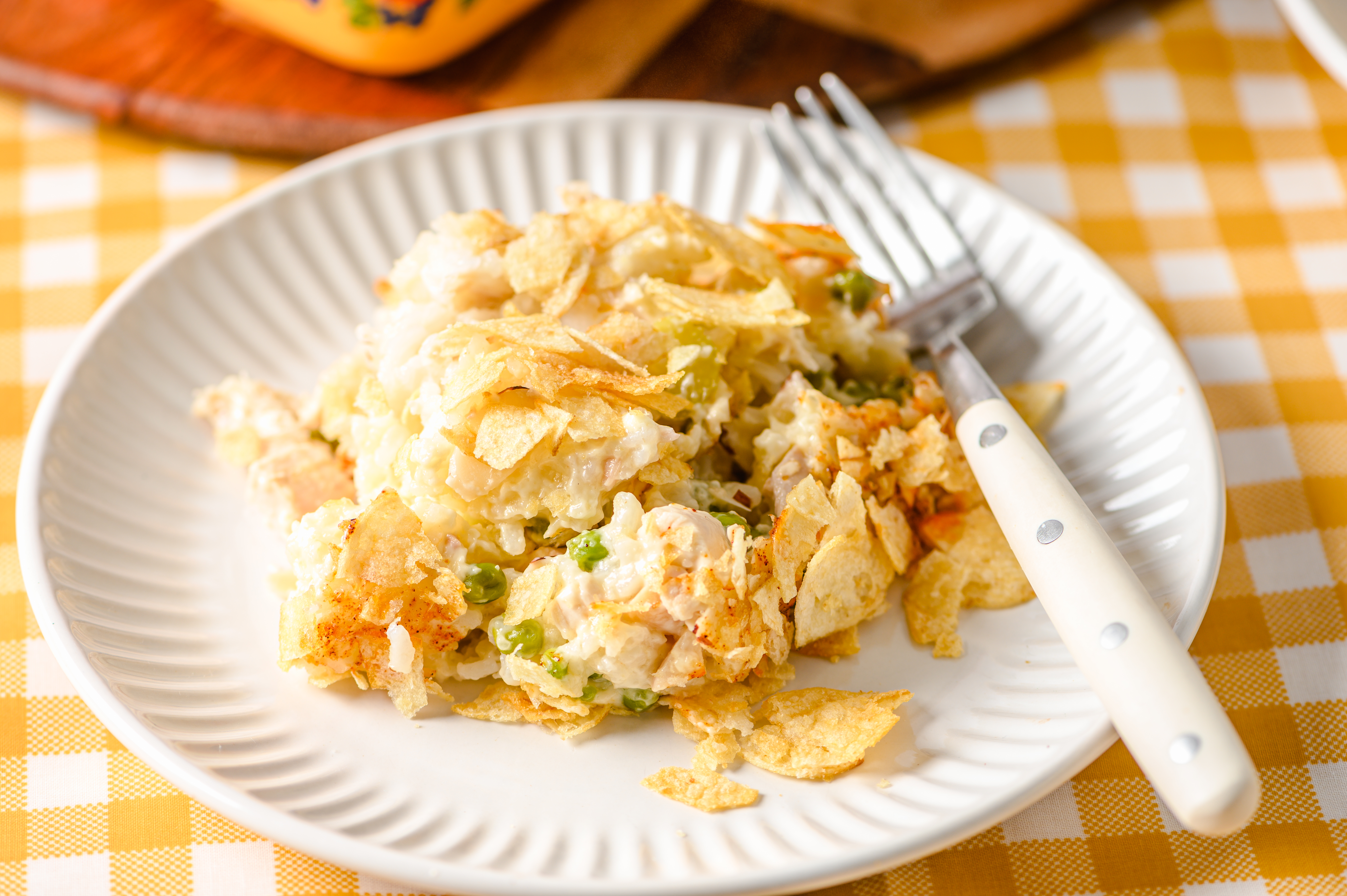 Home, sweet home! That's what this Easy Chicken & Rice Bake feels like as its aroma permeates throughout your home, each and every time it visits your oven. And we say "each" and "every" because this tender, rice-packed, chicken-grinning, sauce-enveloped, crushed-potato-chip-topped, comfort-piece will be on repeat for as long as your apron strings tie together. Nothing says home like the home-cooked and memorable Easy Chicken & Rice Bake. Your family knows the goodness that awaits them when that beloved, baked-with-love dinner bell rings! Welcome home, our loves, welcome home!