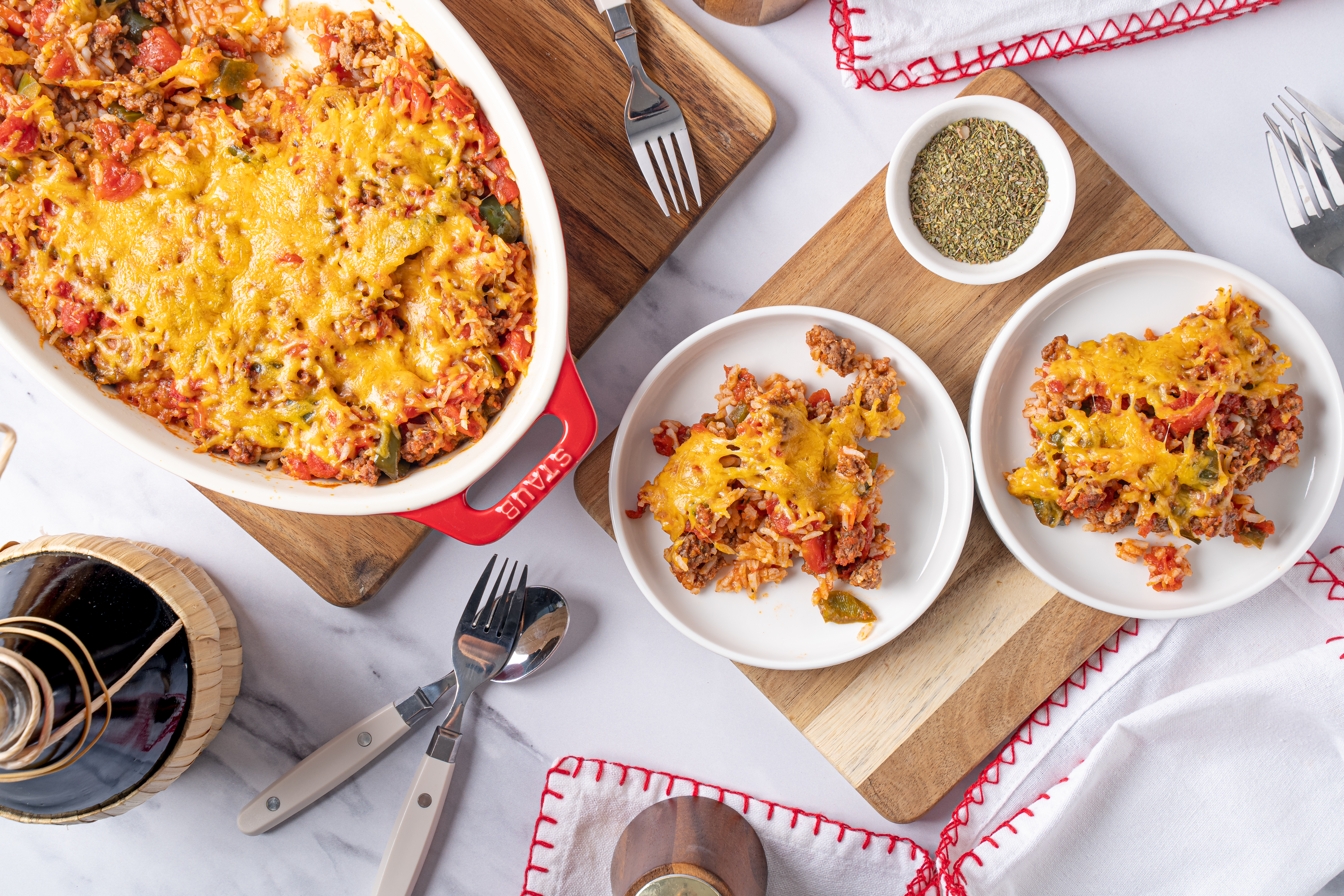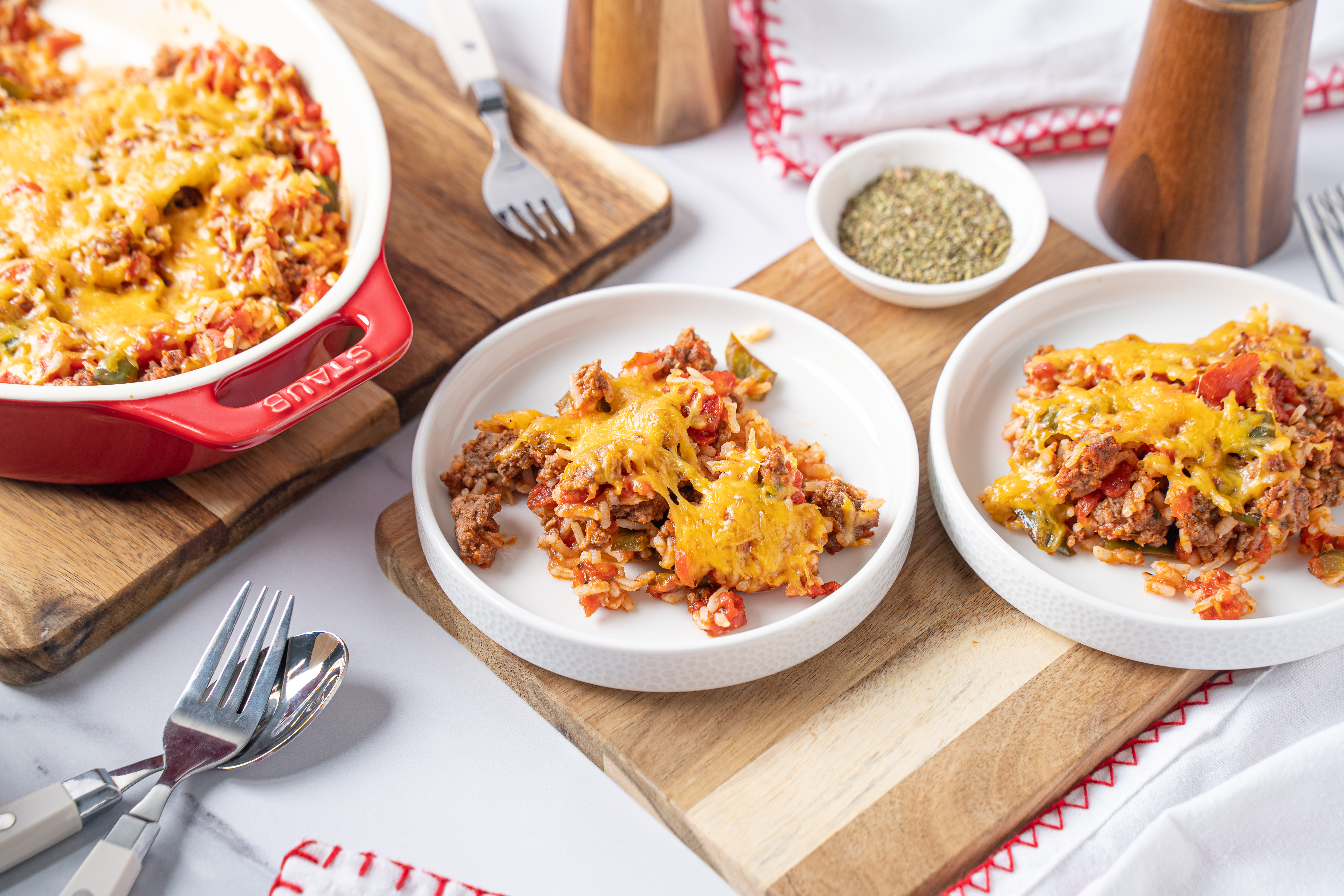 Nothing tastes better than comfort food. That's just a fact! So, the next time you're hungry for something warm and cozy, this Easy Homestyle Beef Bake will meet you right where you're at with open arms. Fill your belly with this tomato-y rice dish mixed with juicy ground beef, tender veggies, and as always, warm, melty cheese. It's simple, but it's absolutely delicious, and will hit that comfort food craving spot every time. Sit back and relax, the Easy Homestyle Beef Bake will make anywhere feel like home!