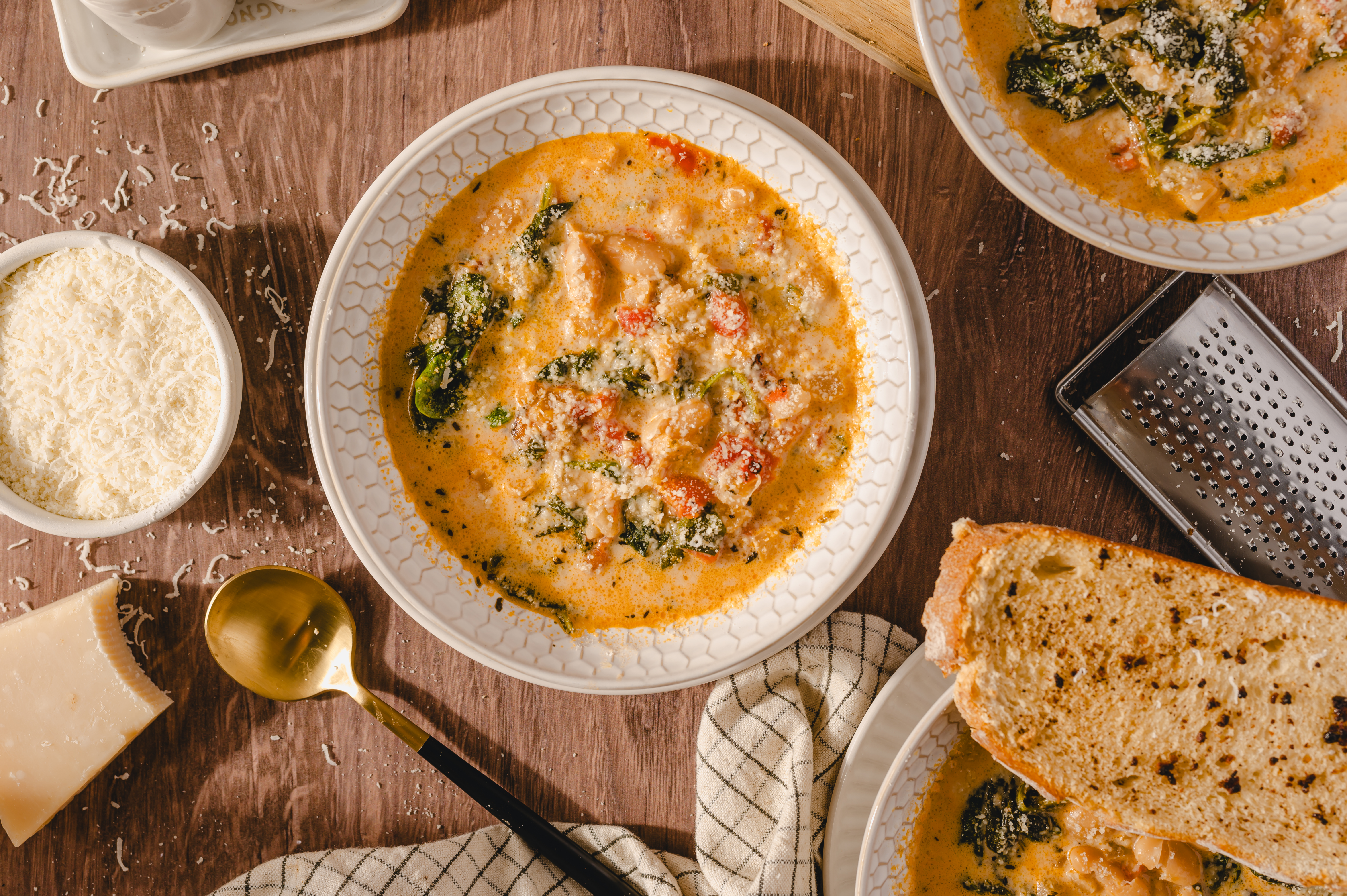 No need to make Fire-Roasted Soup over an actual open flame... although you would get points for style! Instead, this soup places fire-roasted tomatoes, with their toasty, vibrant flavor, front and center. The sweet goodness of tomatoes infuses the broth, as does the sharpness from parmesan, and just a touch of richness from some heavy cream. Hearty, wholesome, and warming, Fire-Roasted Soup will light a fire within you!