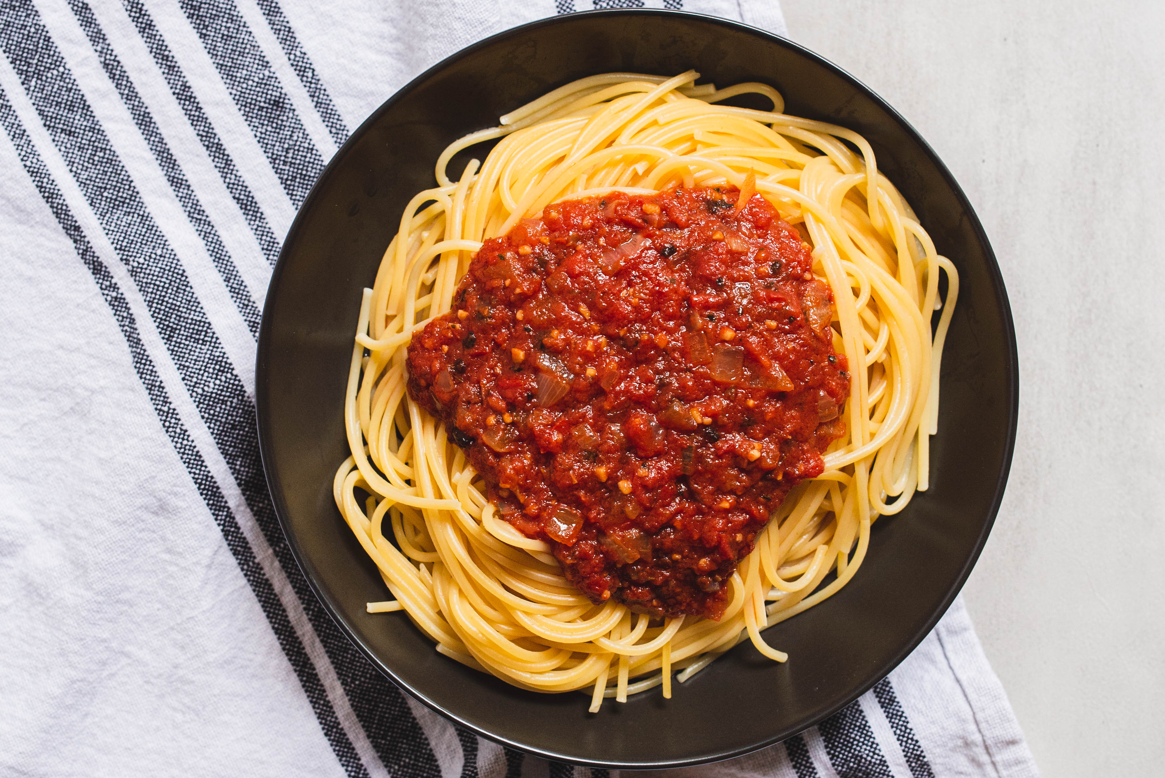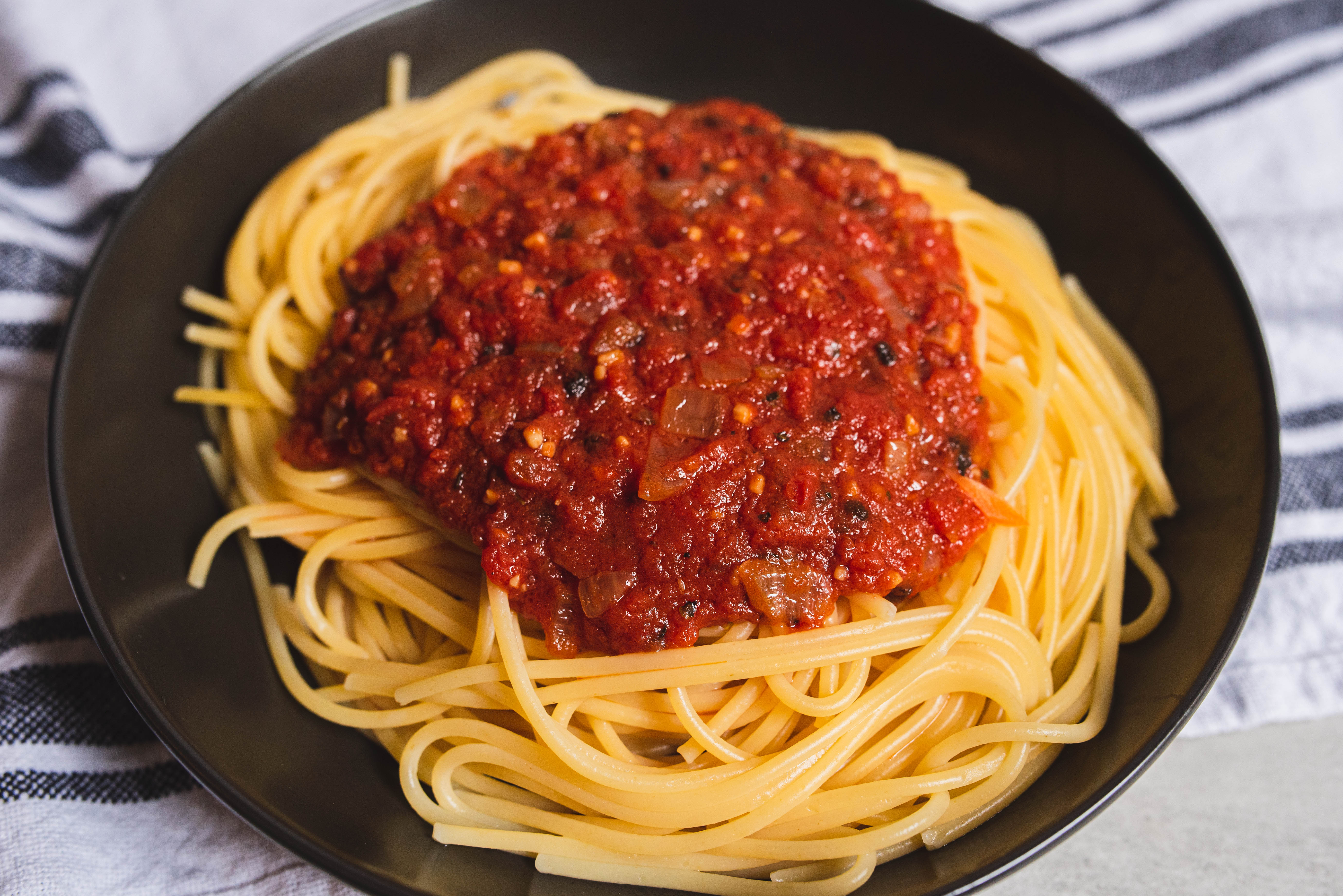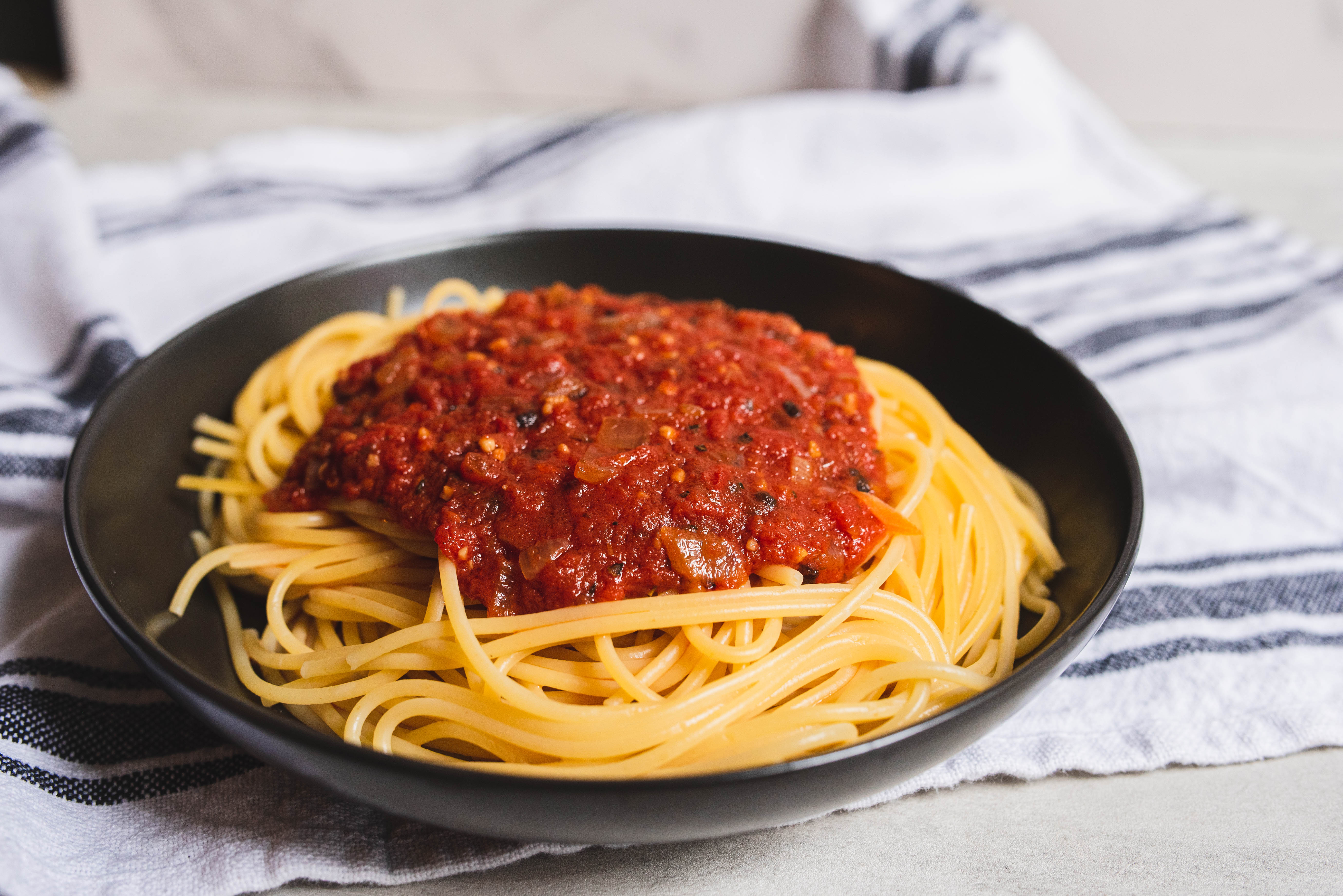 - pasta, such as spaghetti, to taste, cooked and warm, for serving