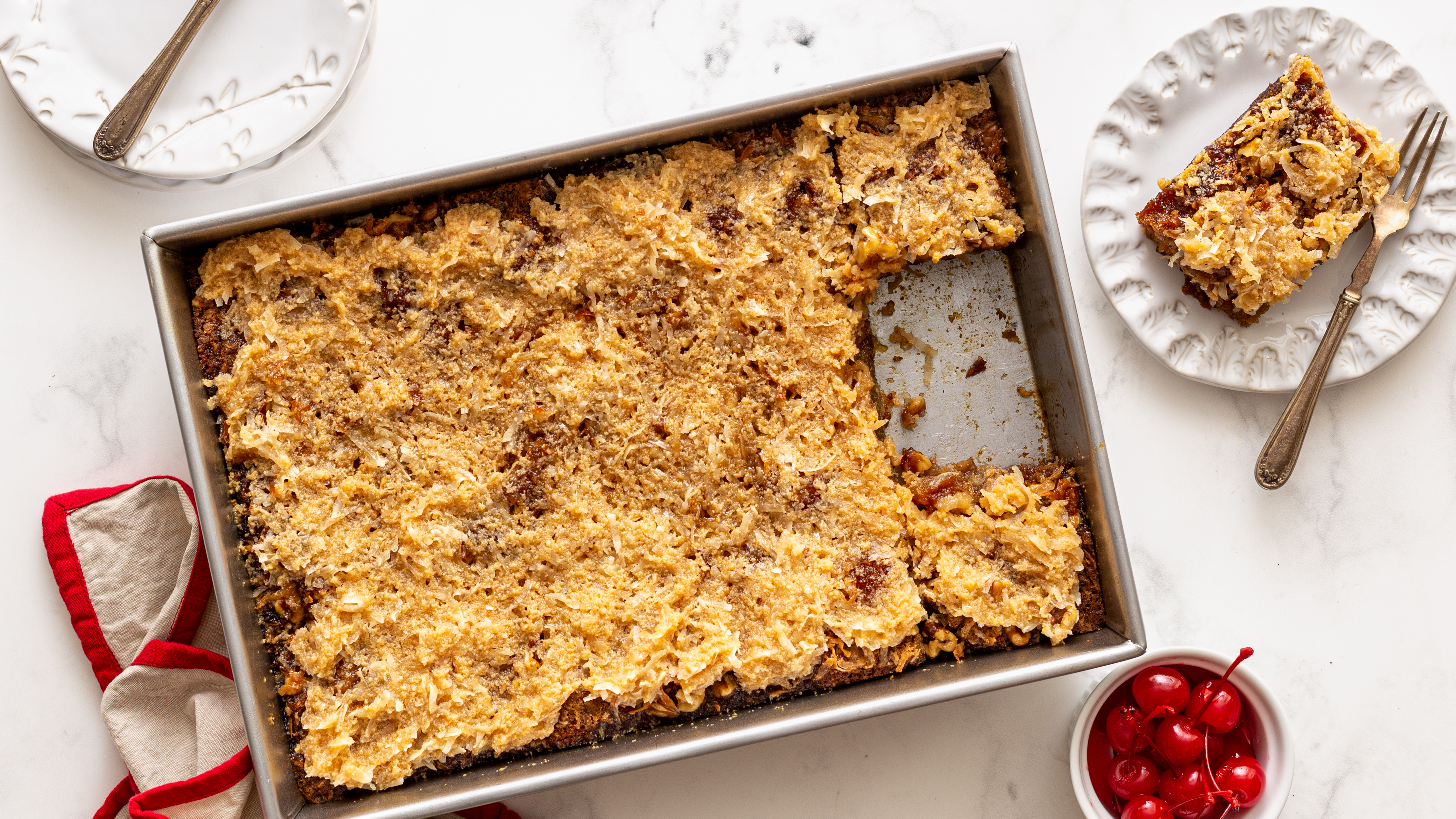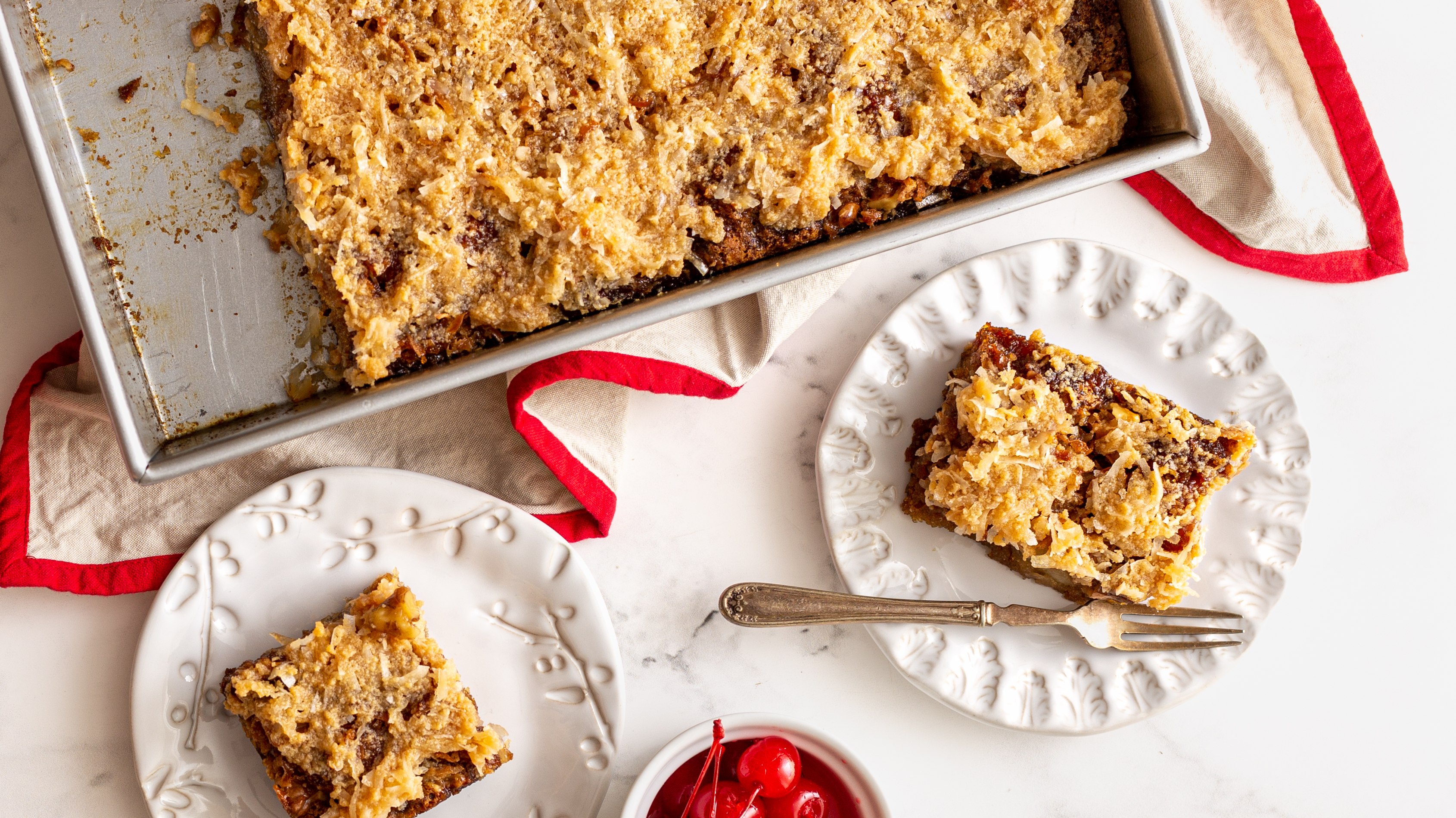 Ok, just being honest here... there isn't a funeral dinner or church social supper that this cake hasn't seen and it certainly holds a special place in the Cake Hall of Fame (we just made that up, but if there was such a thing, this little gem would certainly be in it)! Fruit Cocktail Cake is a staple that never gets old and never disappoints. Loaded with a brown sugar-flaky coconut topping, this fruit-ladened, moist, delicious cake is baked and then topped with an unbelievably tasty, sweet coconut-filled sauce. There isn't a gathering around that doesn't deserve this Fruit Cocktail Cake treat. So, make this blast from the past delight for your next dessert. It will definitely have you saying hallelujah, and there's nothing fruity about that!