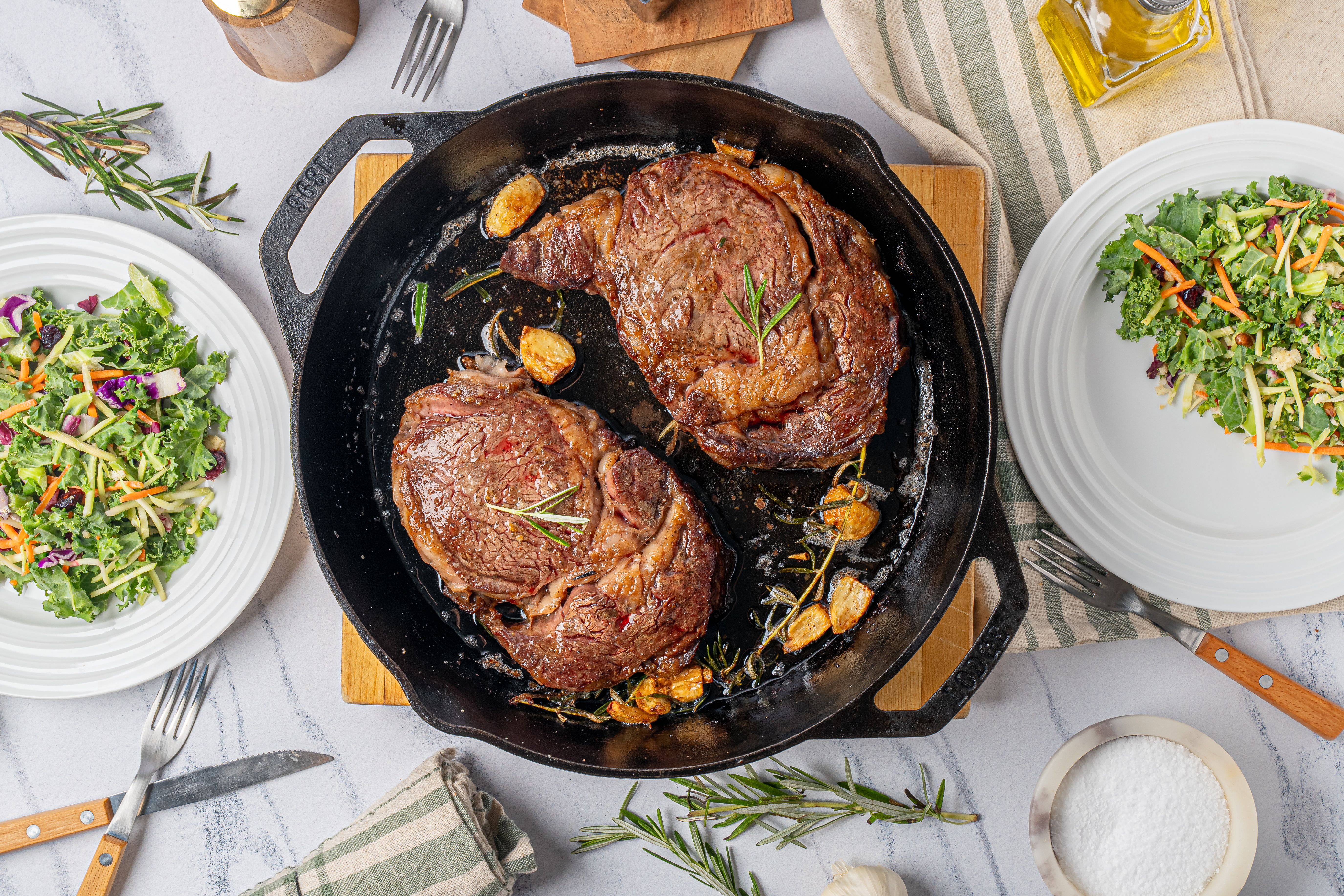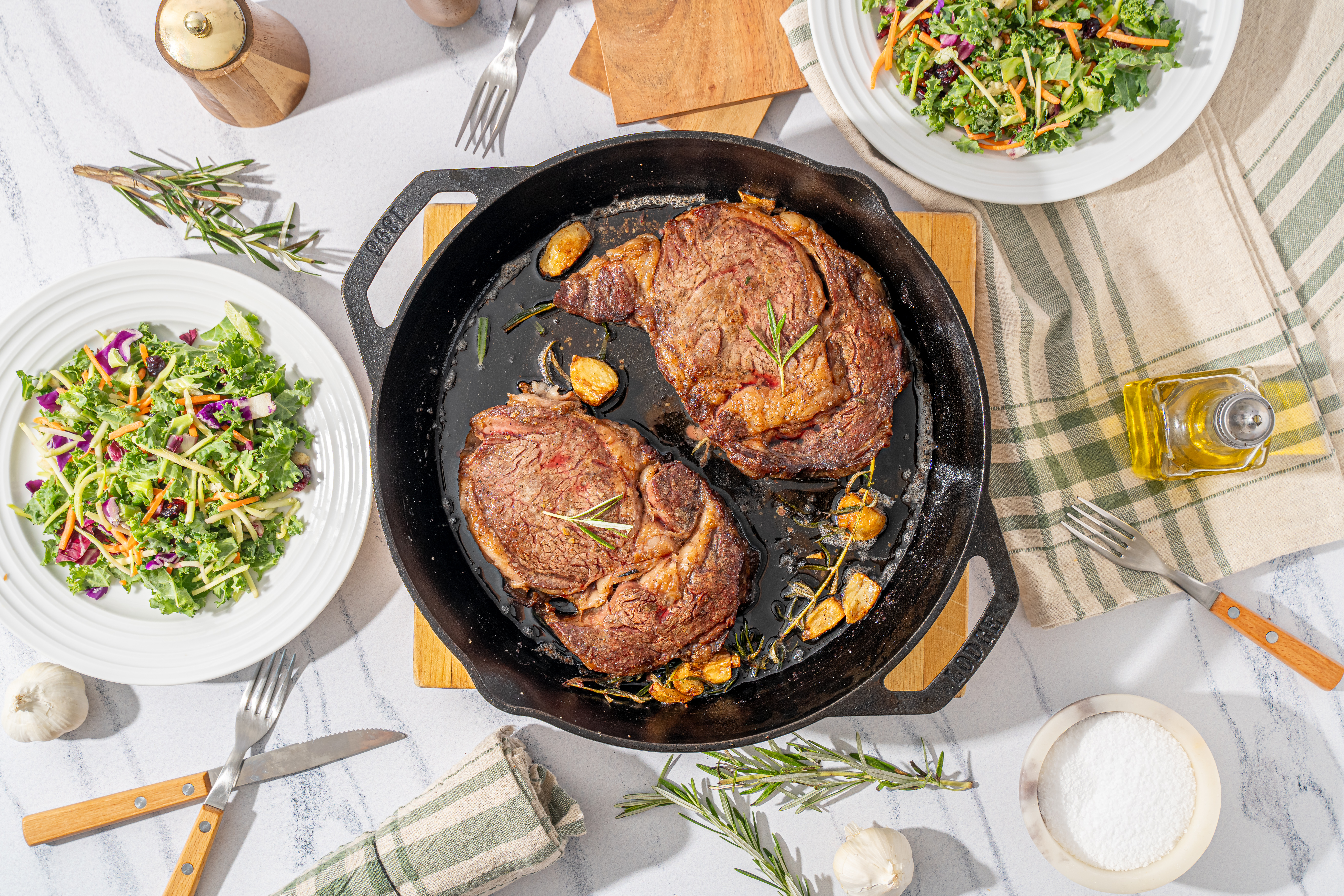 Step 2 -Season both sides of the steaks with the salt and the pepper.