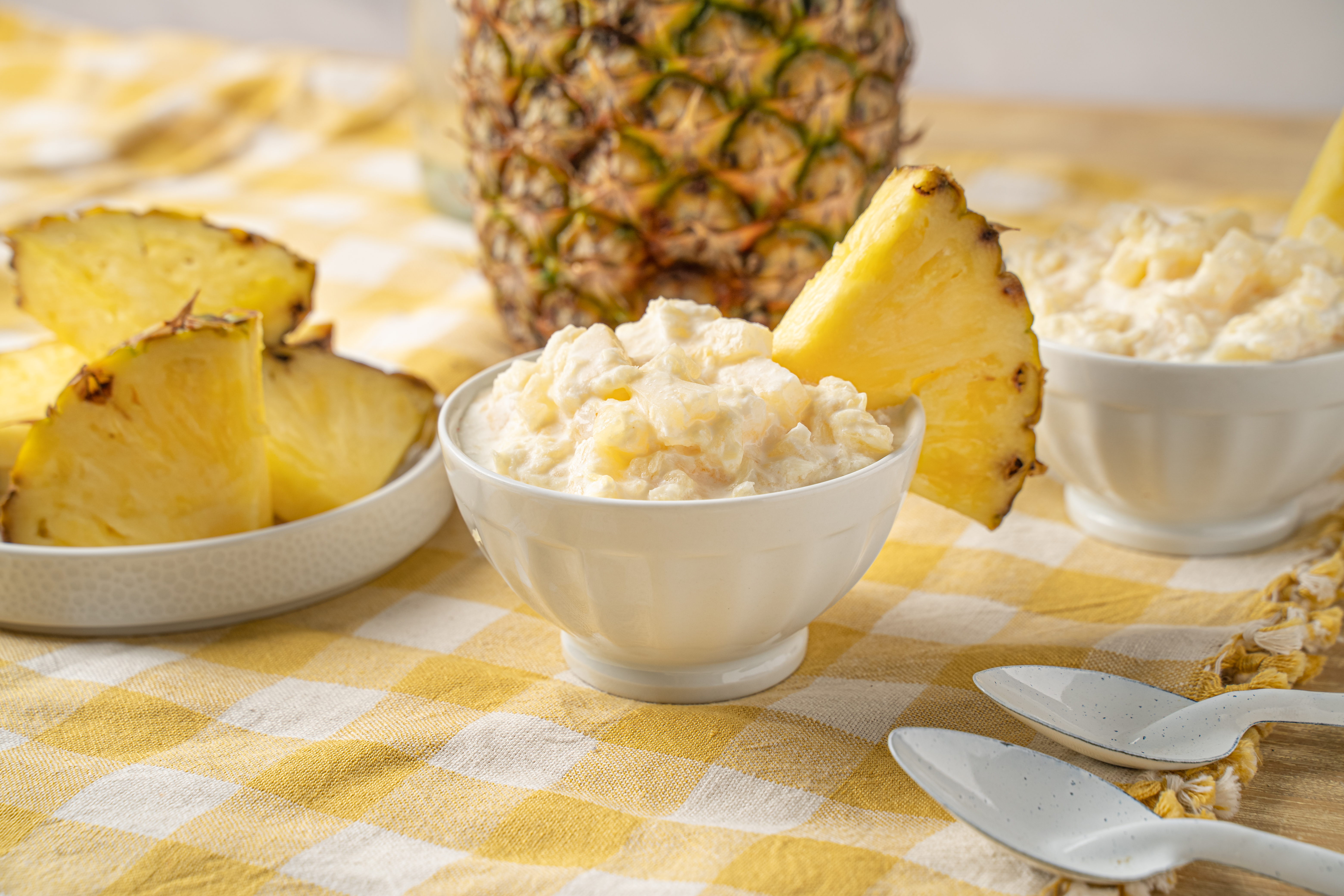 You're in for a real treat with this one! Golden Delight is as pretty as a glimmery sunrise and as tasty as a tropical breeze. This big bowl of creamy, sweet, and tangy pineapple deliciousness is the perfect light and fluffy treat and will add a little bit of glittery magic to the end of any meal! Golden Delight is just that enchanting!