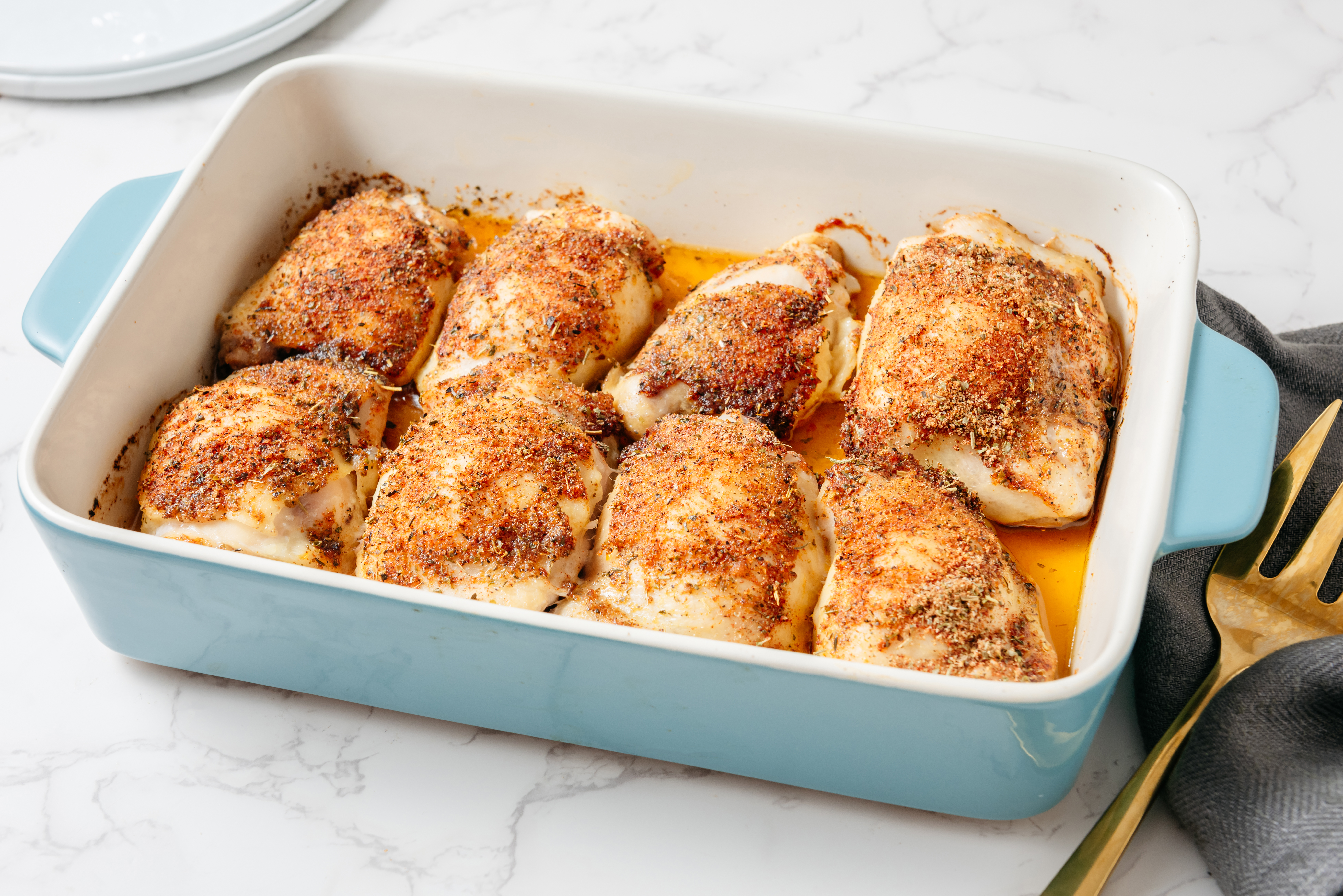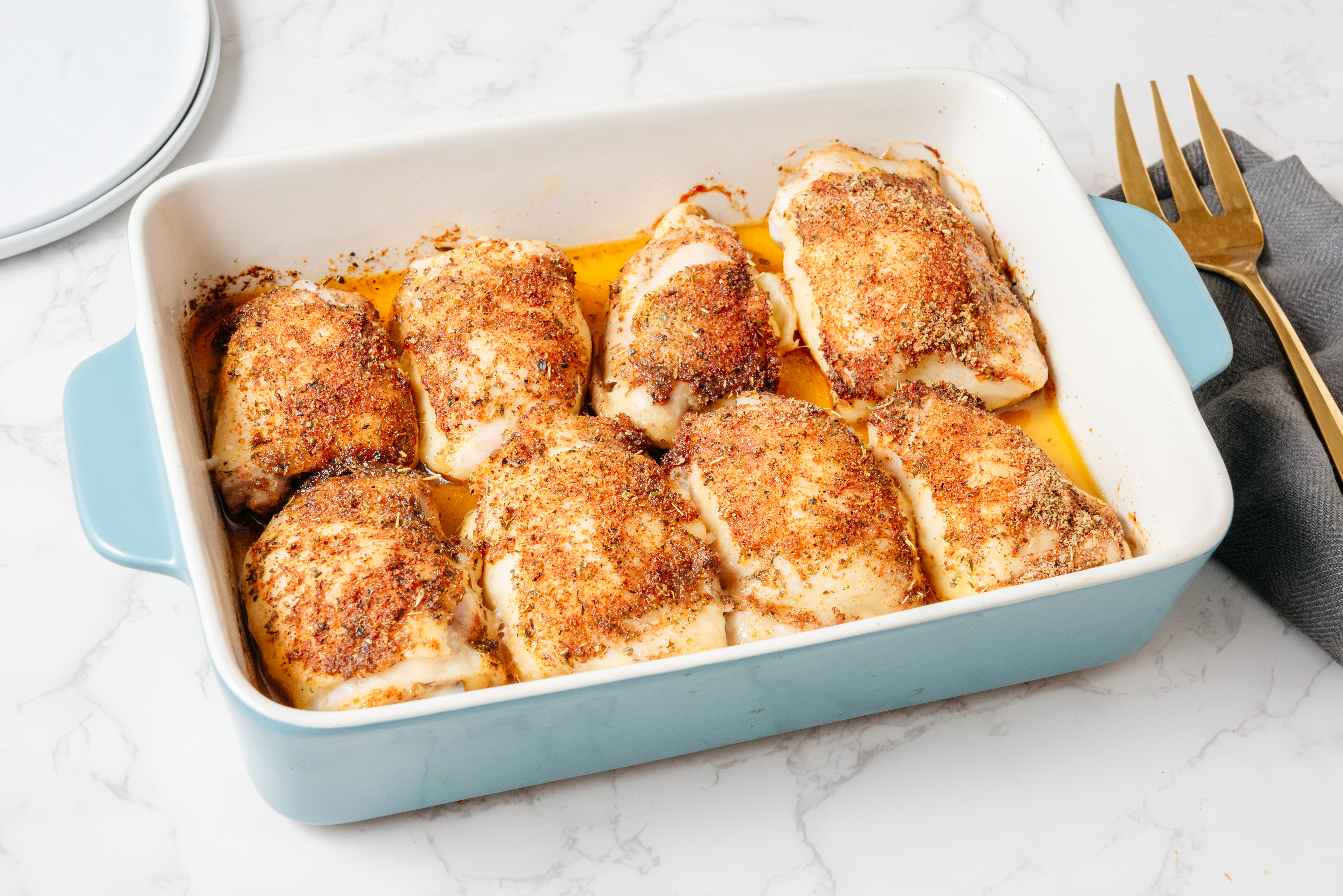 This is one of Grandma's go-to dinners that's guaranteed to make everyone smile! Grammy's Baked Chicken Thighs get a head start by using juicy, succulent chicken thighs, with the skin left on for that extra poultry satisfaction. But then it takes advantage of its strengths by using Grammy's special seasoning blend; a mix of herbs, spices, and even some smoky brown sugar to make the most of the natural chicken flavors. One serving of Grammy's Baked Chicken Thighs may not be enough!