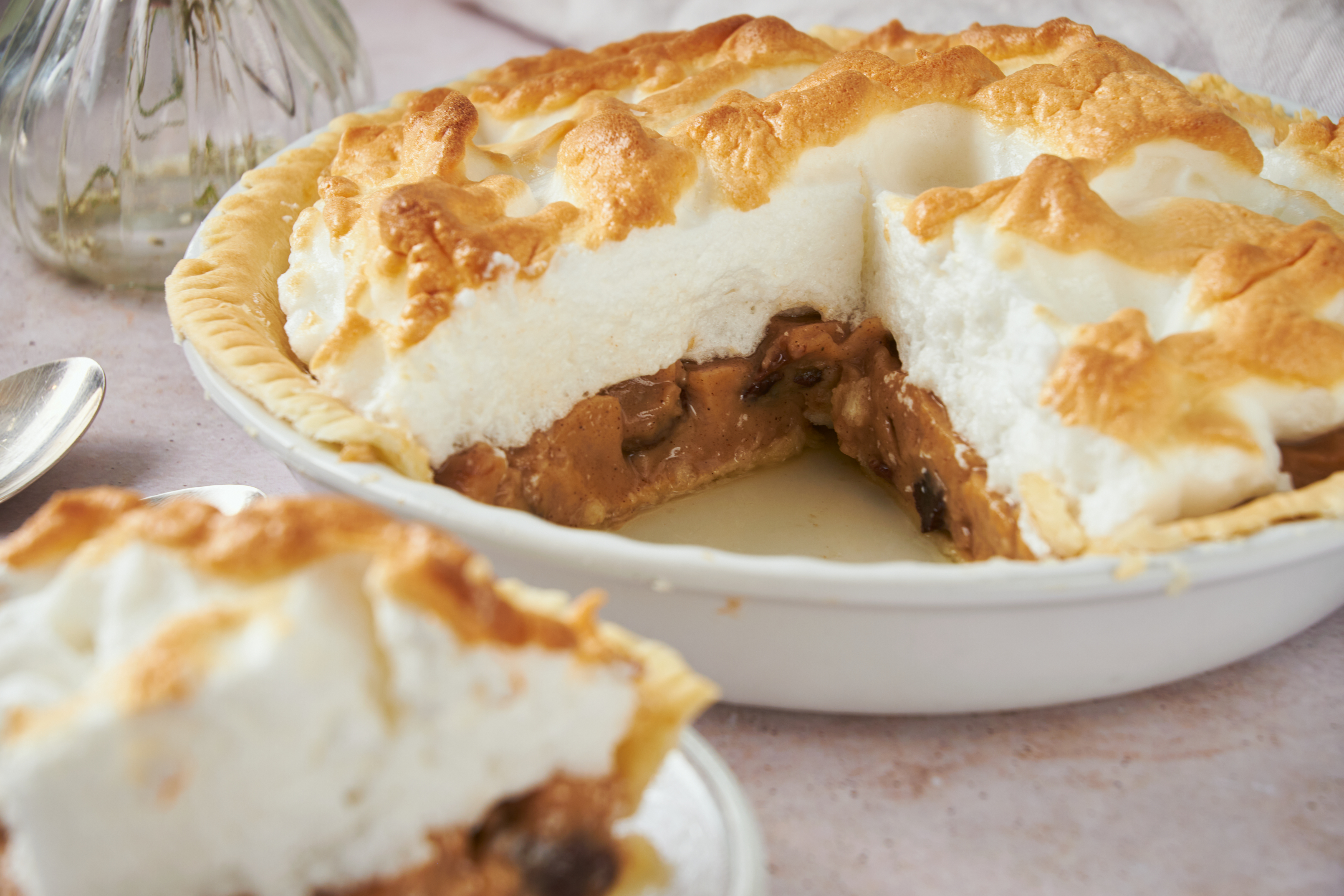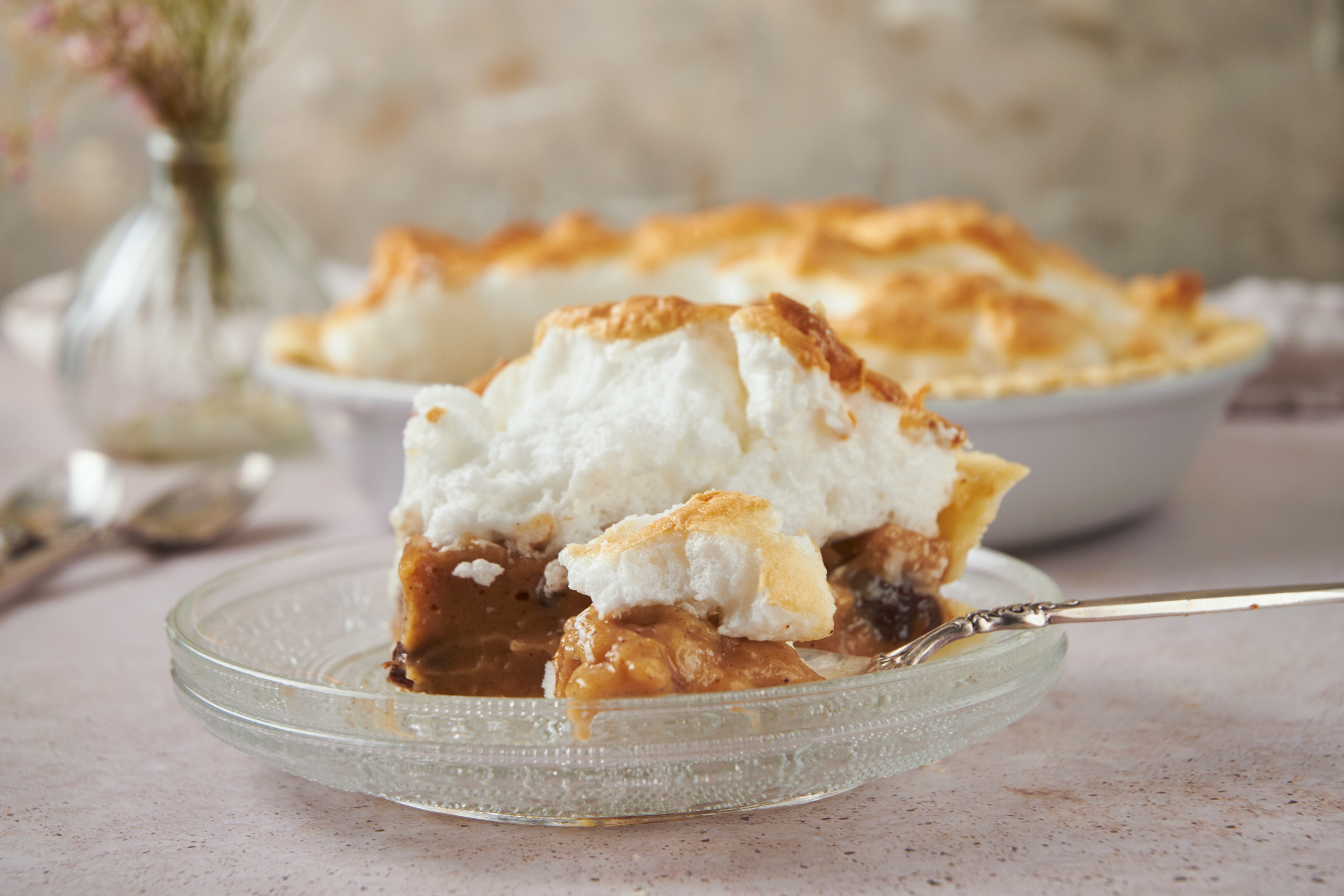 Grammy has all the good secrets to being the best hostess! She always makes sure the house is clean, fresh flowers are present, and most importantly, that she welcomes her guests with a loving hug. Want a bonus tip? Have Grammy's Secret Pie sitting in the fridge when they arrive! Nothing makes anyone feel more loved than having a slice of this homemade creamy, nut-and-raisin-filled pie as they sit and catch up with you. The fluffy meringue on top usually makes them want to stay for hours... and she just loves that! Treat your company to something really special, something as special as Grammy's Secret Pie! They'll surely taste the love with every bite!