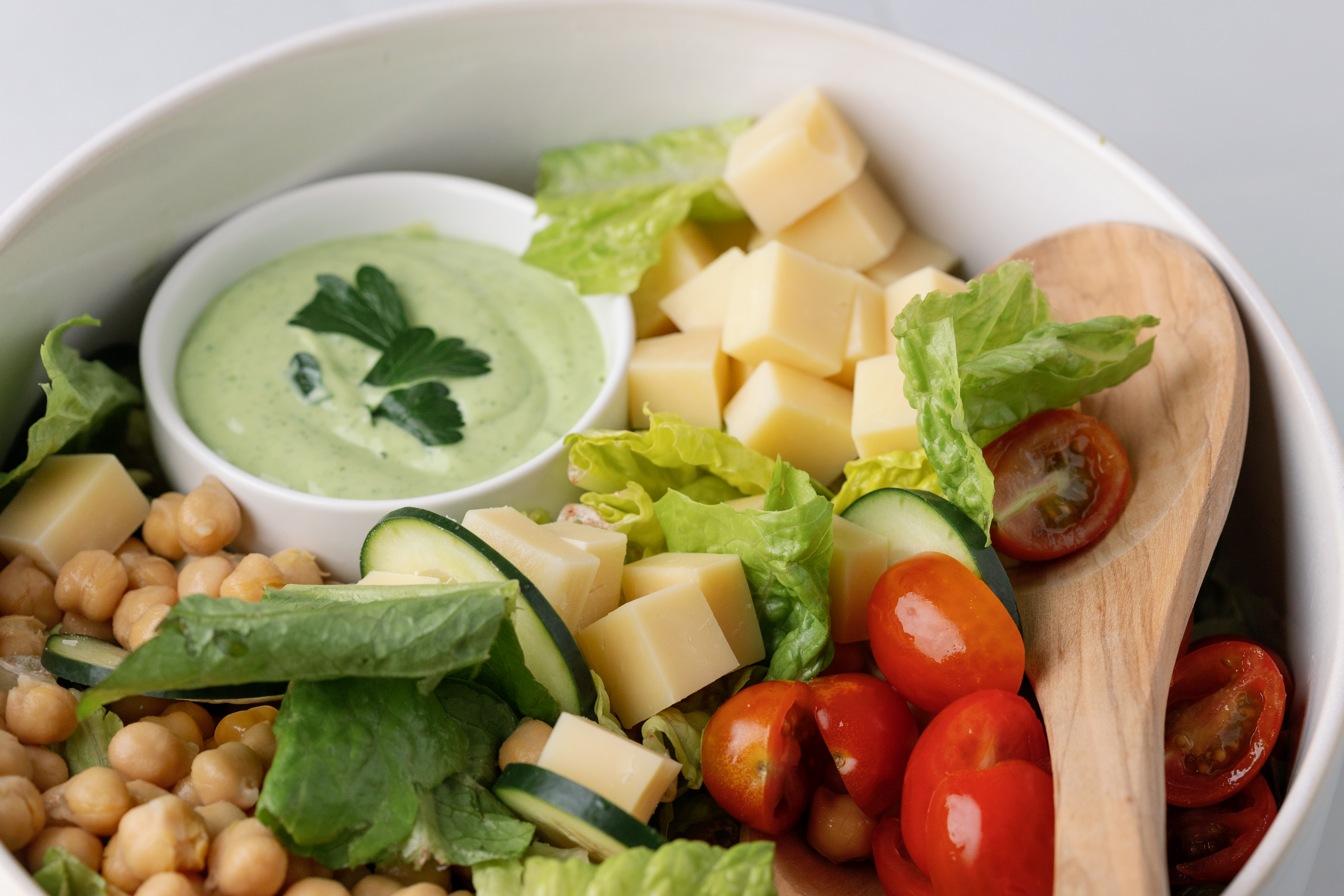 Let this goddess of the greens be the empress of your next gathering. Green Queen Salad has a crown-full of deliciousness that everyone will be bowing down to. They will be green with envy of the avocado-based buttermilk and herb dressing, draped across the regal romaine lettuce and consort of cucumbers. This monarchy of rich, regent flavors found at the helm of the Green Queen Salad will rule all of your salad wants and wishes. Be the debutante or beautillion ball of your dining room when you roll out the red carpet with this salad royalty. Your guests will curtsy with kindness and confidence for your majesty's honorable salad feast! Long live the Green Queen Salad... but probably not, because it will disappear quicker than a queen-like wave of the hand!