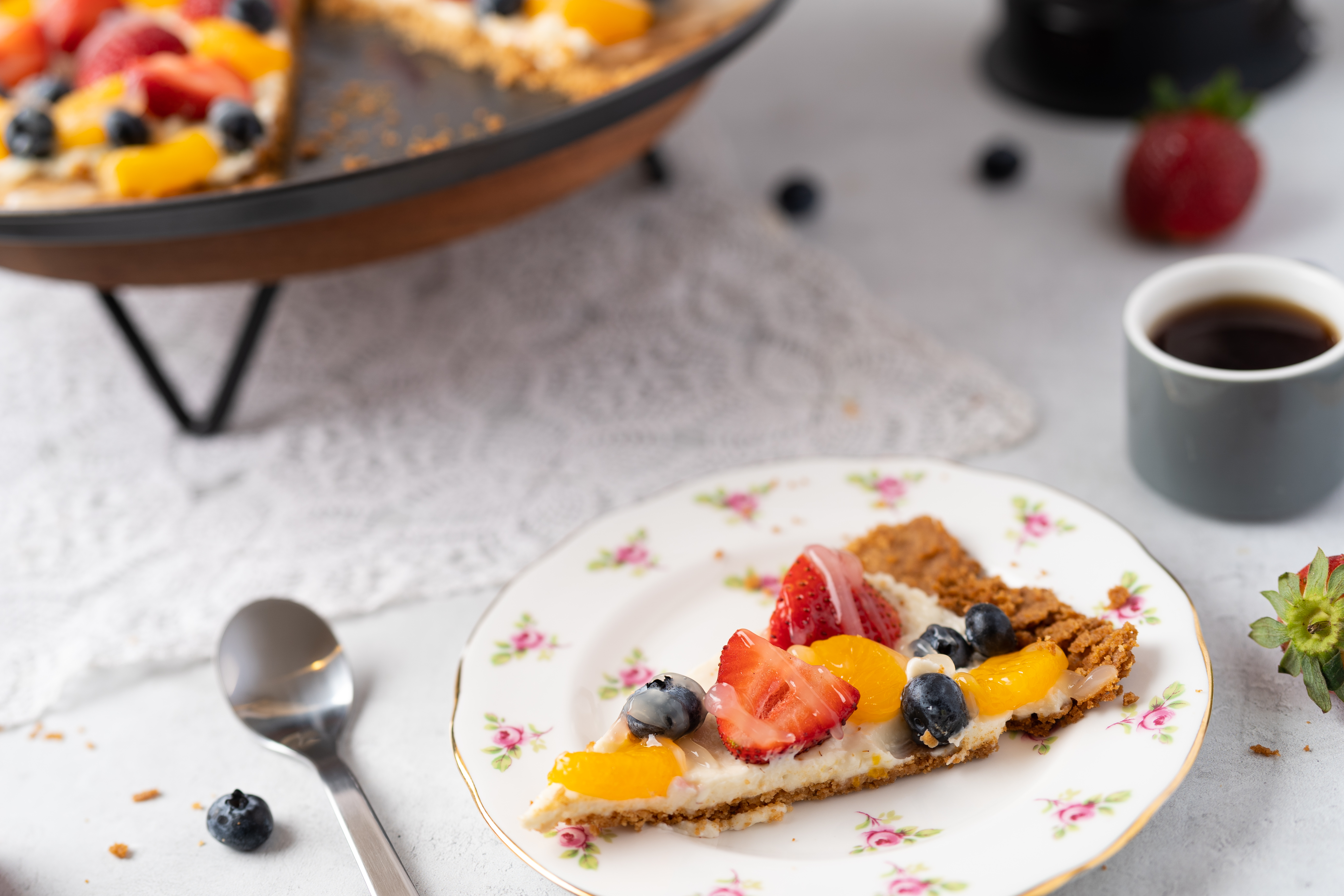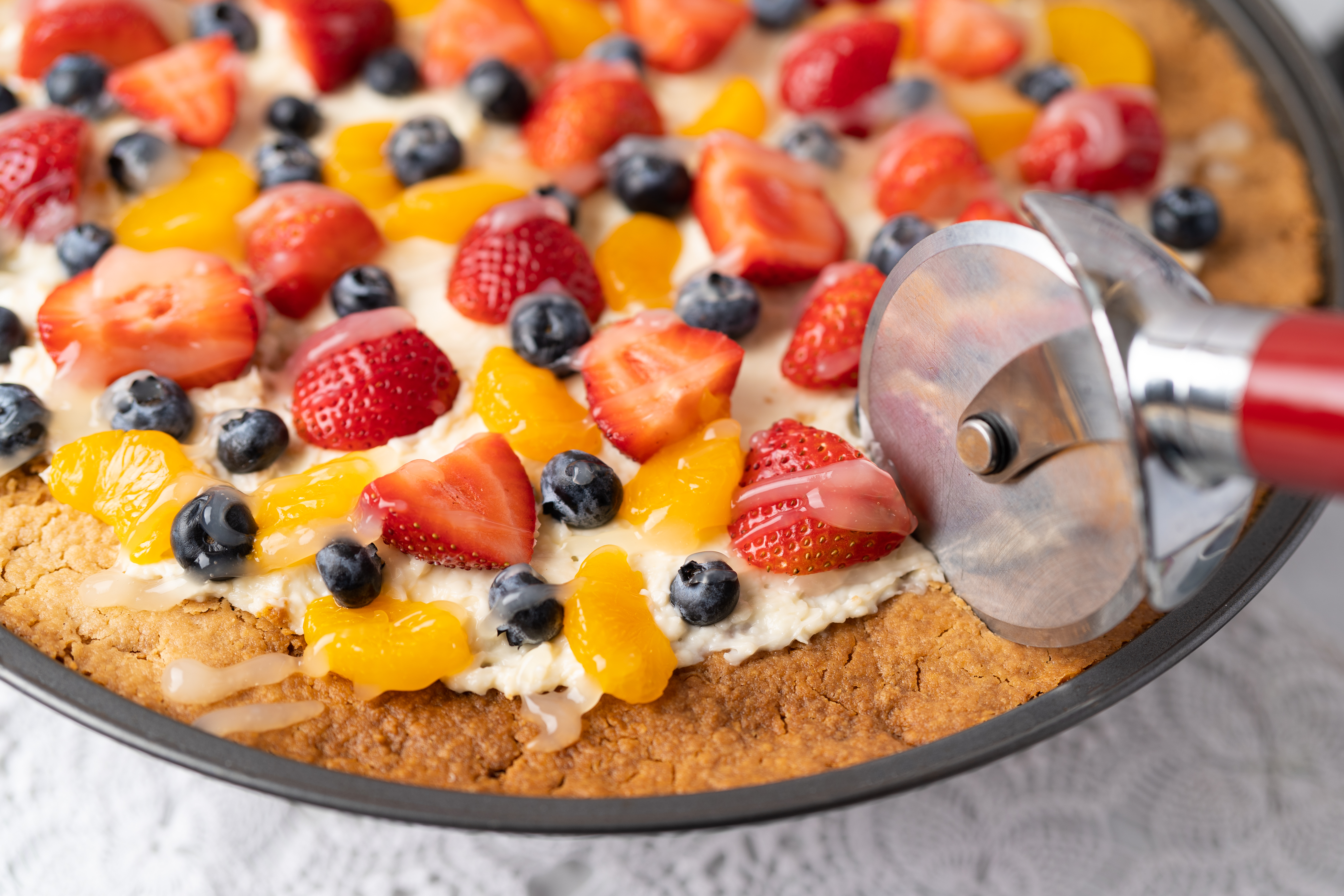 Eat dessert and have no qualms about doing it! This Guilt-Free Dessert Pizza brings joy back into a little after-dinner indulgence. Fret no more about what you're consuming, because this golden crust, covered in a pineapple-sweetened glaze and a rich reduced-fat cream cheese layer, topped off with refreshing fruit, is wholesome and delicious! Guilt-Free Dessert Pizza is the best reminder that not everything that has a little bit of sweetness is bad for you. So, if you're looking for a way to enjoy a sweet treat again without guilt, this is it!