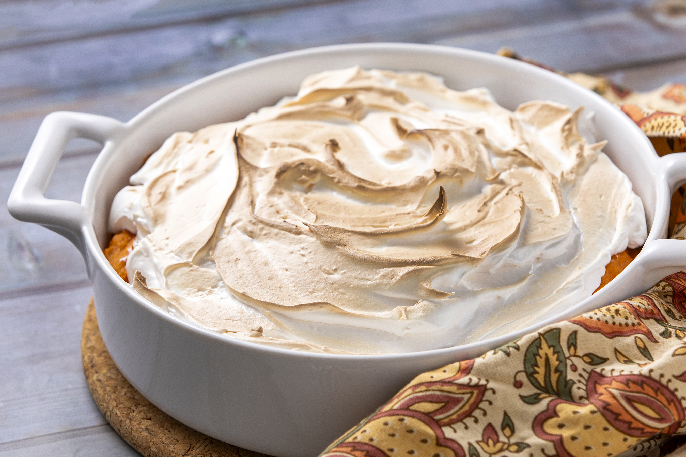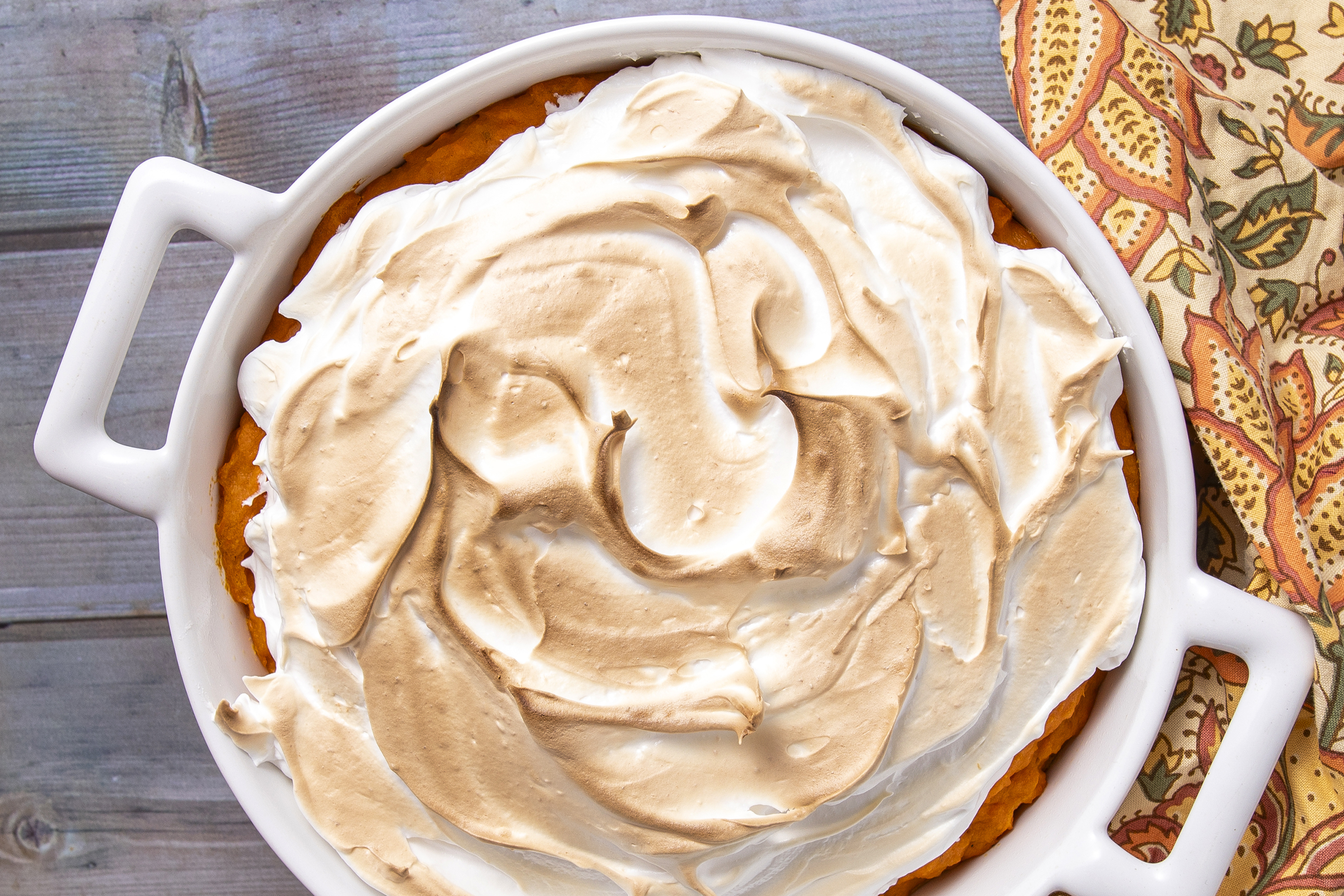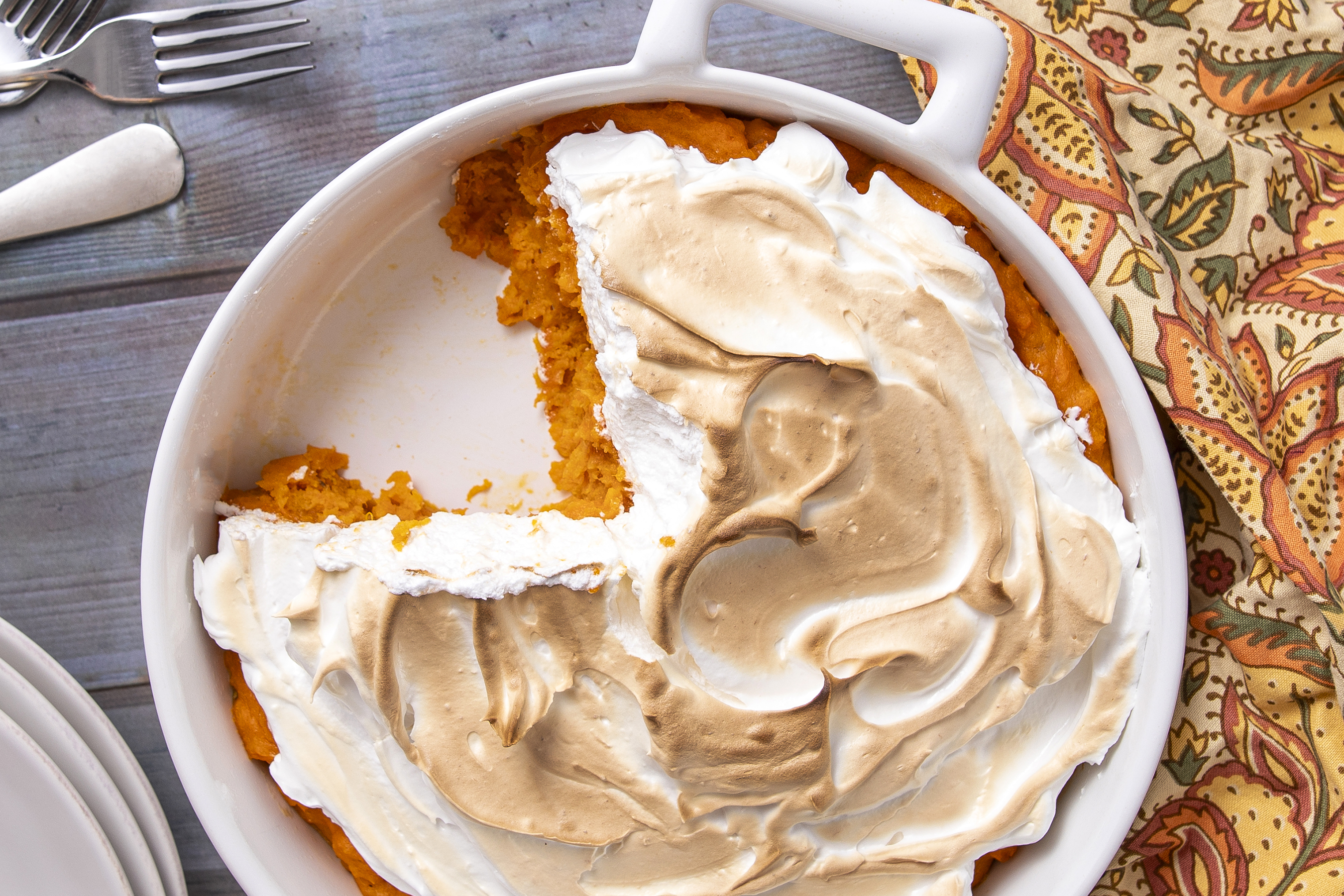 Honestly, it's hard to think of Homemade Sweet Potato Bake as anything other than a dessert. Look at it! Those caramel-y sweet potatoes sweetened up with dark brown sugar and seasoned with just a little touch of cayenne pepper, mashed until smooth and fluffy. And then on top, there is actual meringue! Fluffy with just a touch of crunchy-on-the-outside meringue! Well, we aren't ones to question good fortune; if Homemade Sweet Potato Bake wants to be a side dish, we certainly aren't complaining!