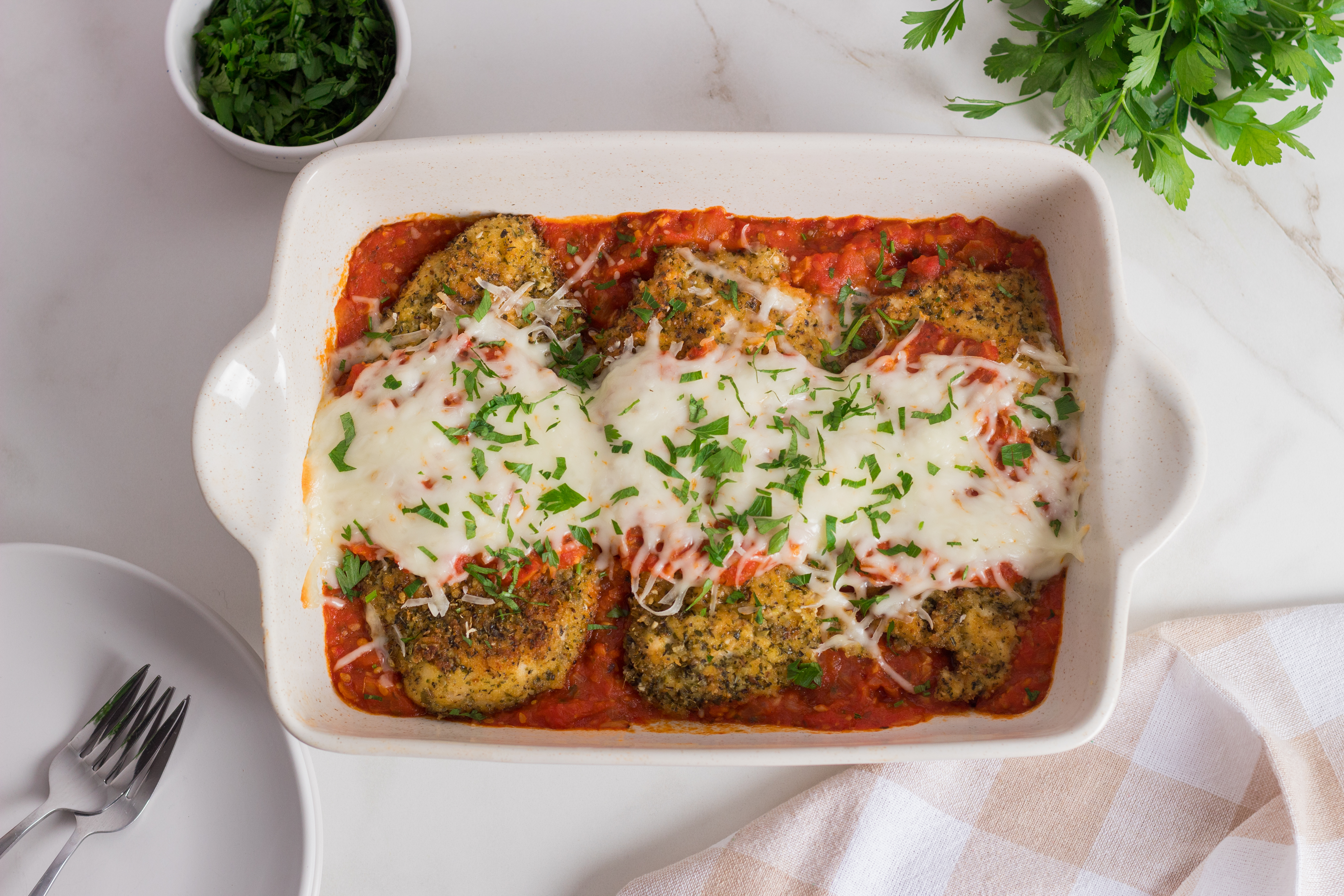 An easier take on the fancier chicken parm dish, this Killer Chicken Parmesan is really where it's at! All you have to do is cook some deliciously coated chicken until perfectly golden-brown, and then layer it in some tangy marinara sauce and salty cheese, and voilà! Fancy-ish prepared on your plate in basically no time! If you're feelin' extra hungry, serve this Killer Chicken Parmesan over a bed of bouncy pasta for the ultimate dinner satisfaction. Are you hungry yet?!