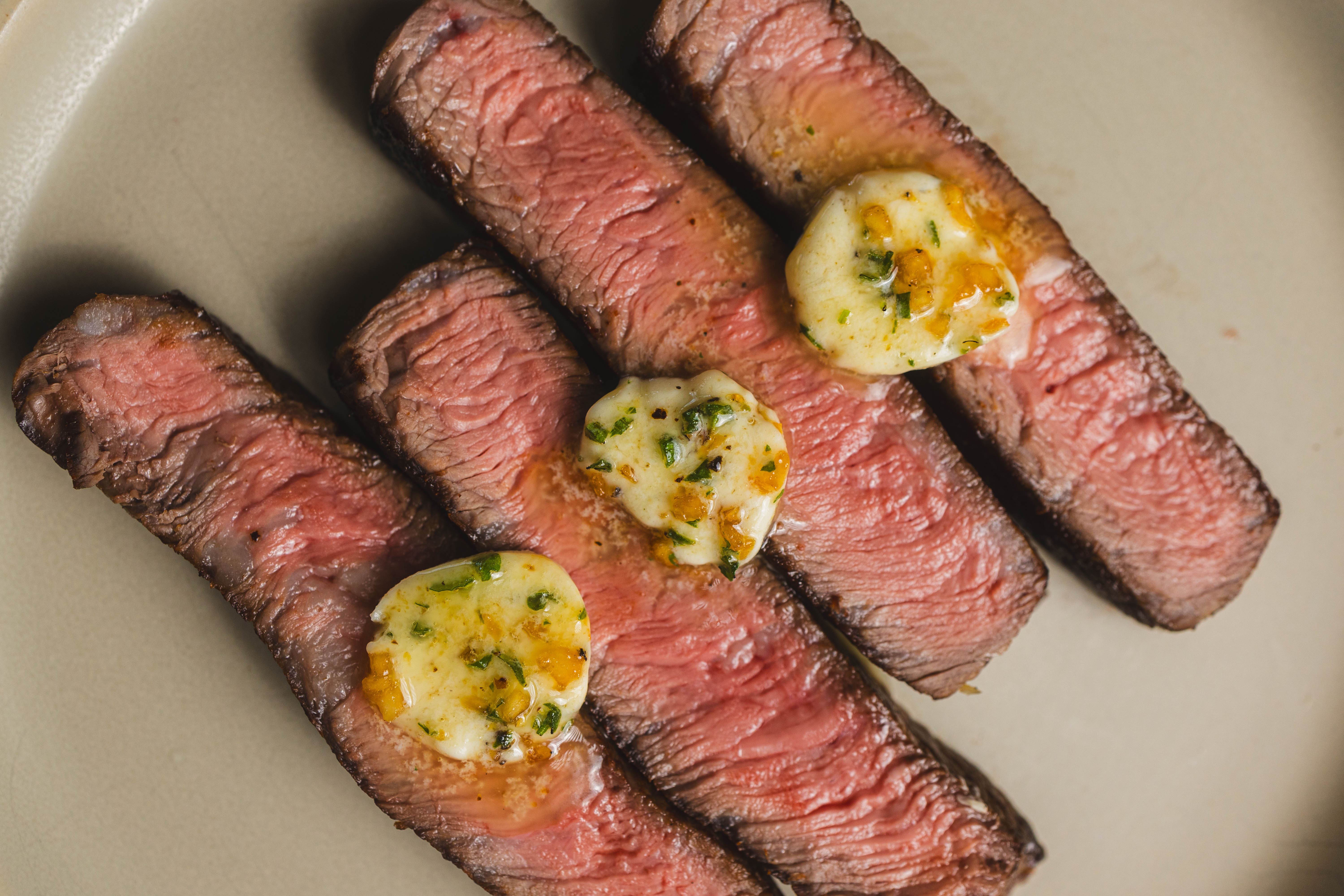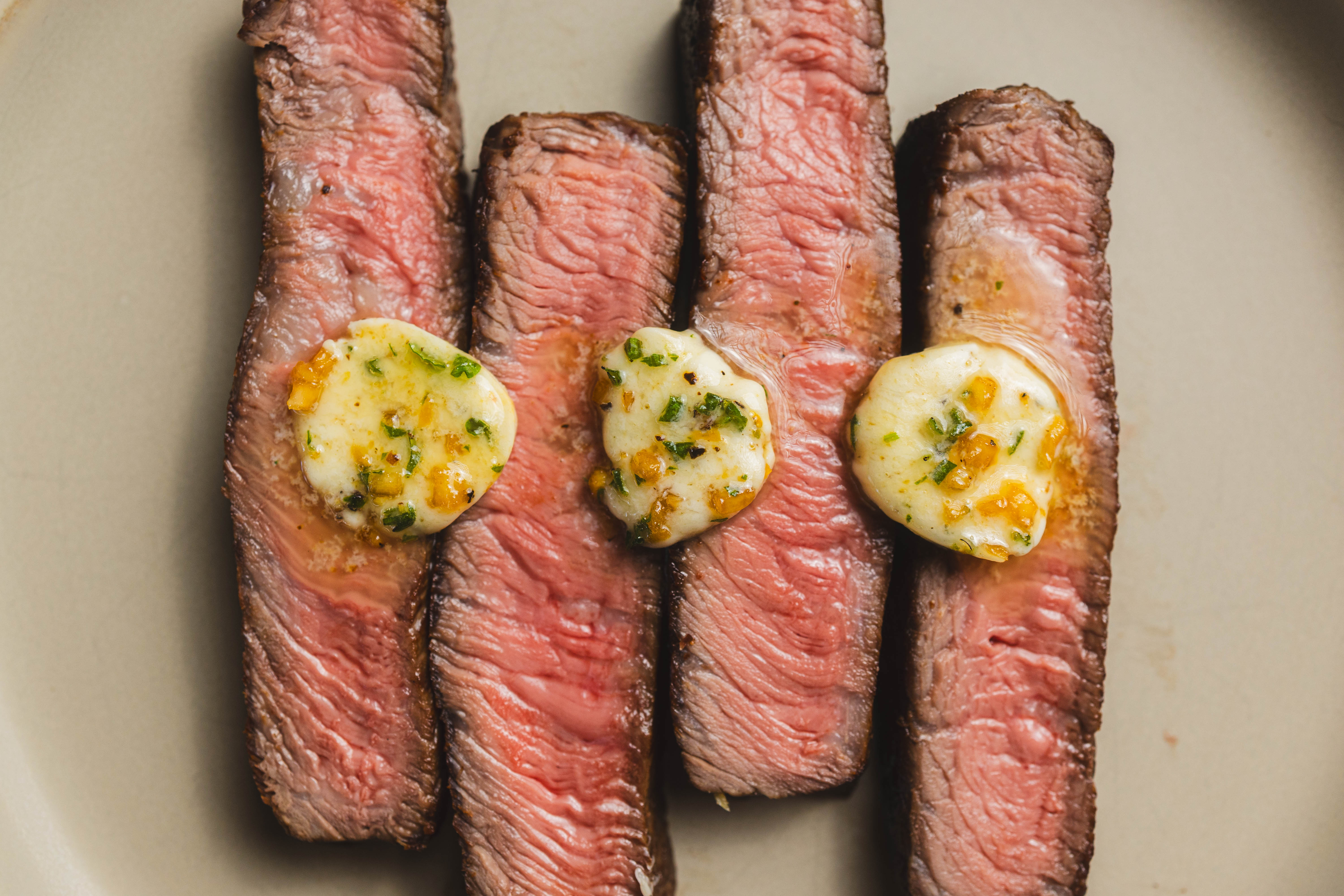 Step 7 -Top the warm steak slices with the herb-butter.