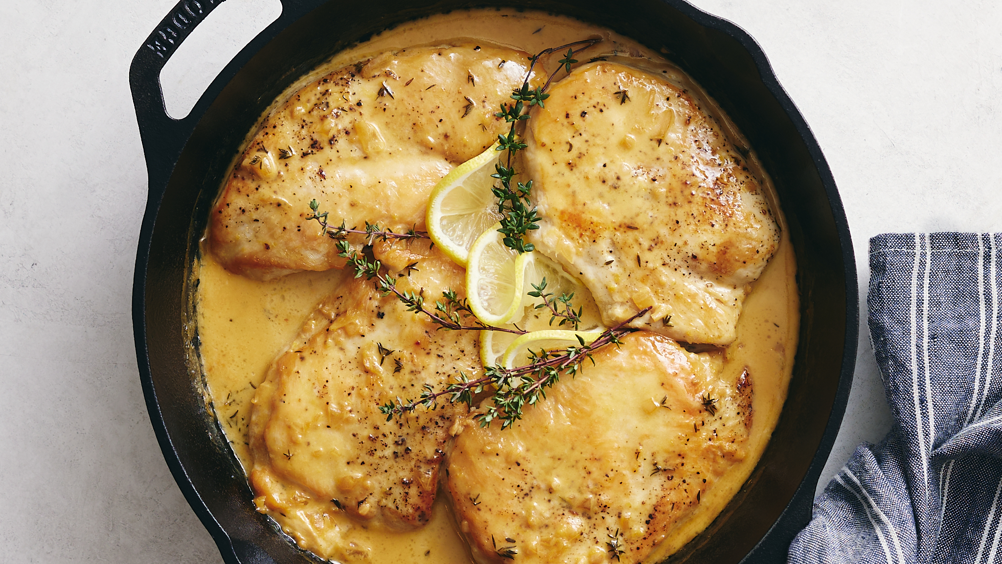 There's always time for romance, especially around Valentine's Day! What better way to prove that than by making a delicious dinner in just 40 minutes or less? Making-Thyme-For-You Chicken infuses both savory, tender chicken and a creamy sauce with the peppery, clove-like flavor of fresh thyme. The brightness of lemon and fragrance from some garlic help enhance both the poultry flavor and the thyme's natural aromatic taste; it's a romance of flavors perfect for sharing with your loved one! Make time for Making-Thyme-For-You Chicken and prepare for a truly romantic meal!