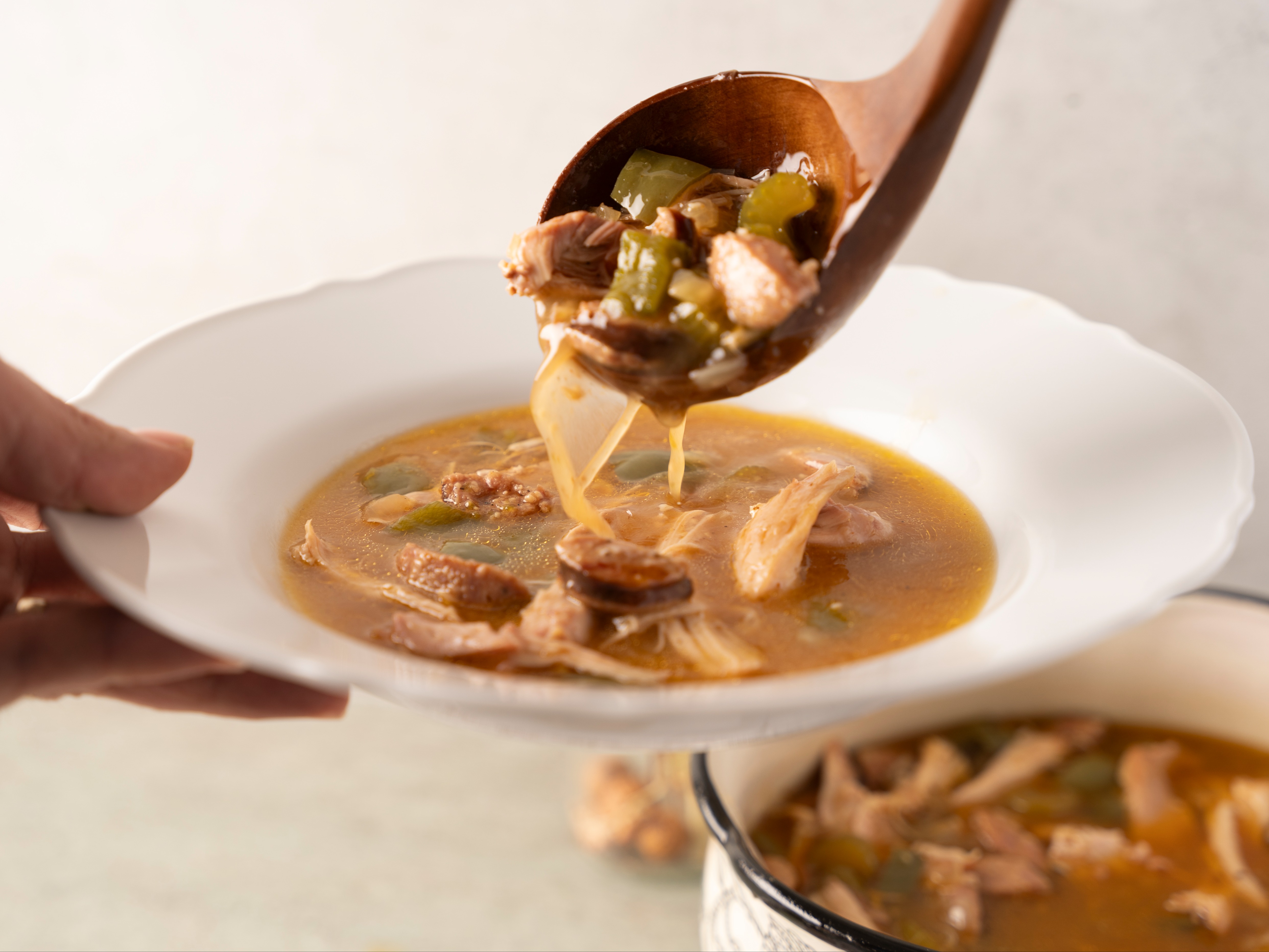 Let's head on down to the Bayou State for some good 'ole Nola-Style Gumbo! Okay, the fun secret here is you don't have to go anywhere but your kitchen to get a taste of this soupy, spicy Southern classic. Loaded with meaty sausage and plenty of veggies... and oh, you can't forget the heat, Nola-Style Gumbo will you have dancing in the streets. It's the flavorful party your taste buds crave!