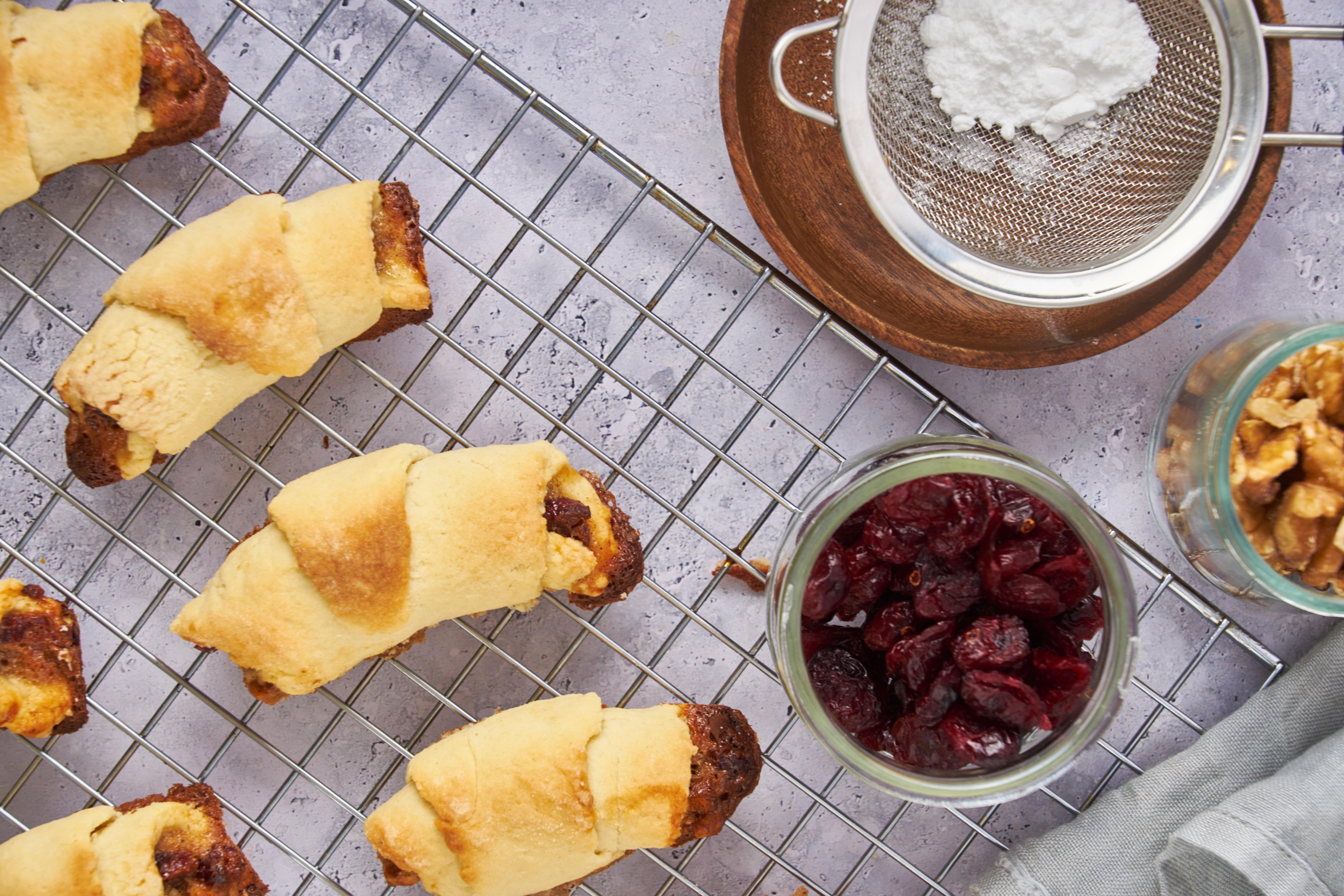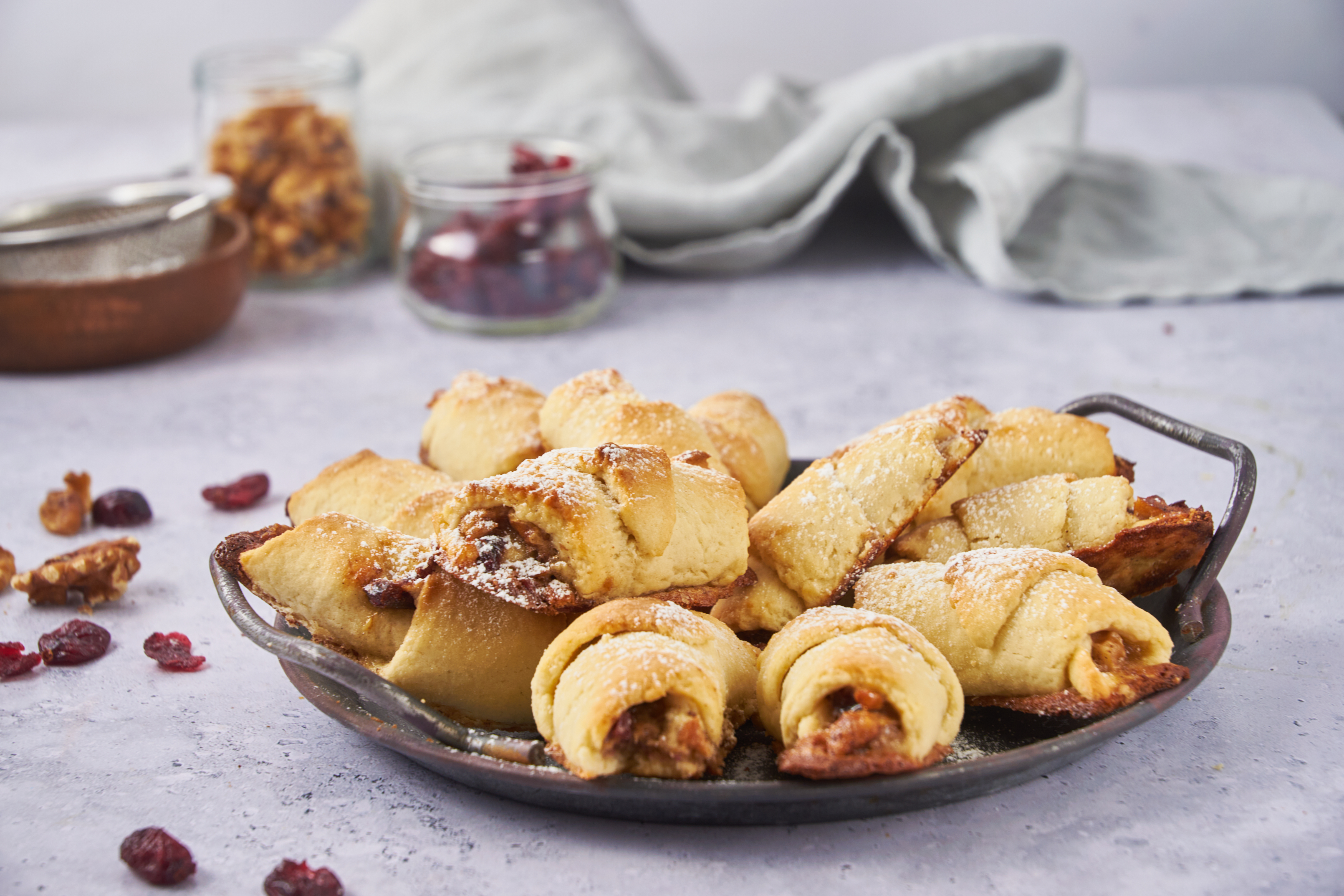 It is a delight to recreate authentic recipes from years gone by and this recipe is definitely worthy of remaking! Polish Rugelach rolls all the flavors you remember into a sweet, sweet treat! This crescent of soft, cream cheese dough is brimming with the impeccable, old-world taste of a sweetened and spiced cranberry-toasted walnut filling that is sure to please. Reminisce and walk down memory lane with Polish Rugelach... just like grand-mama used to bake. It's a decadent pastry you won't soon forget!