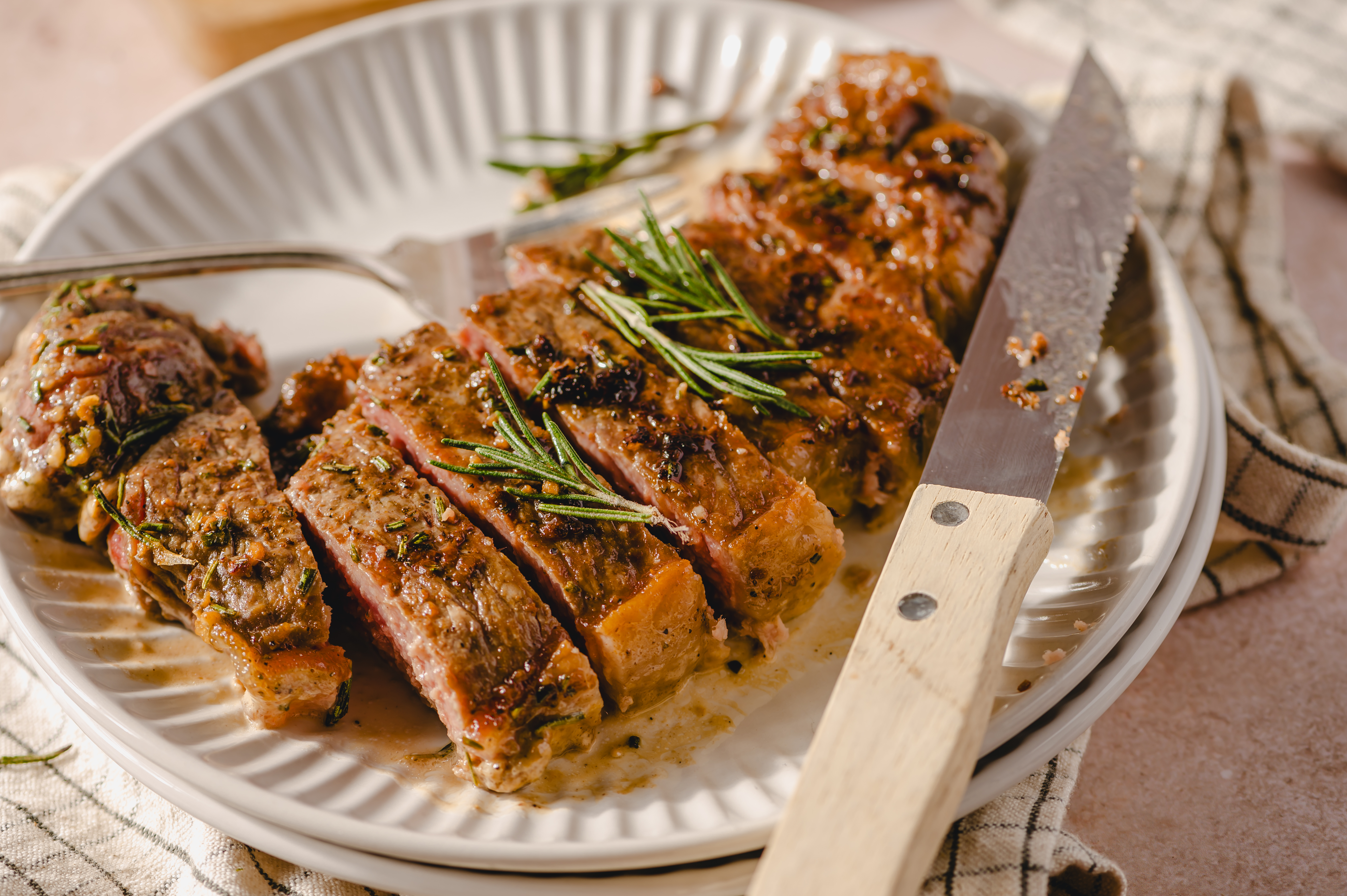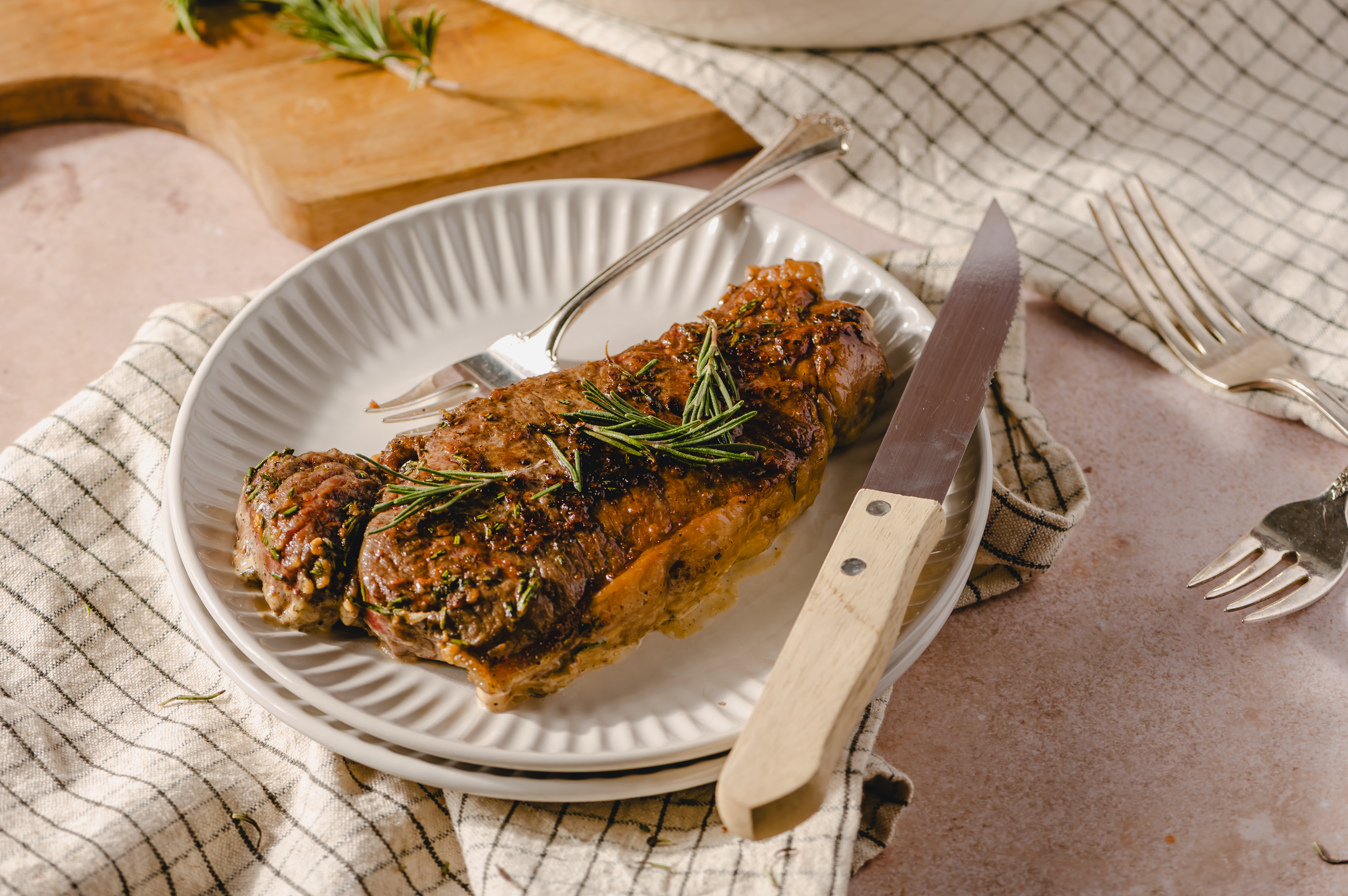 - 4 (10-ounce) New York strip steaks, room temperature