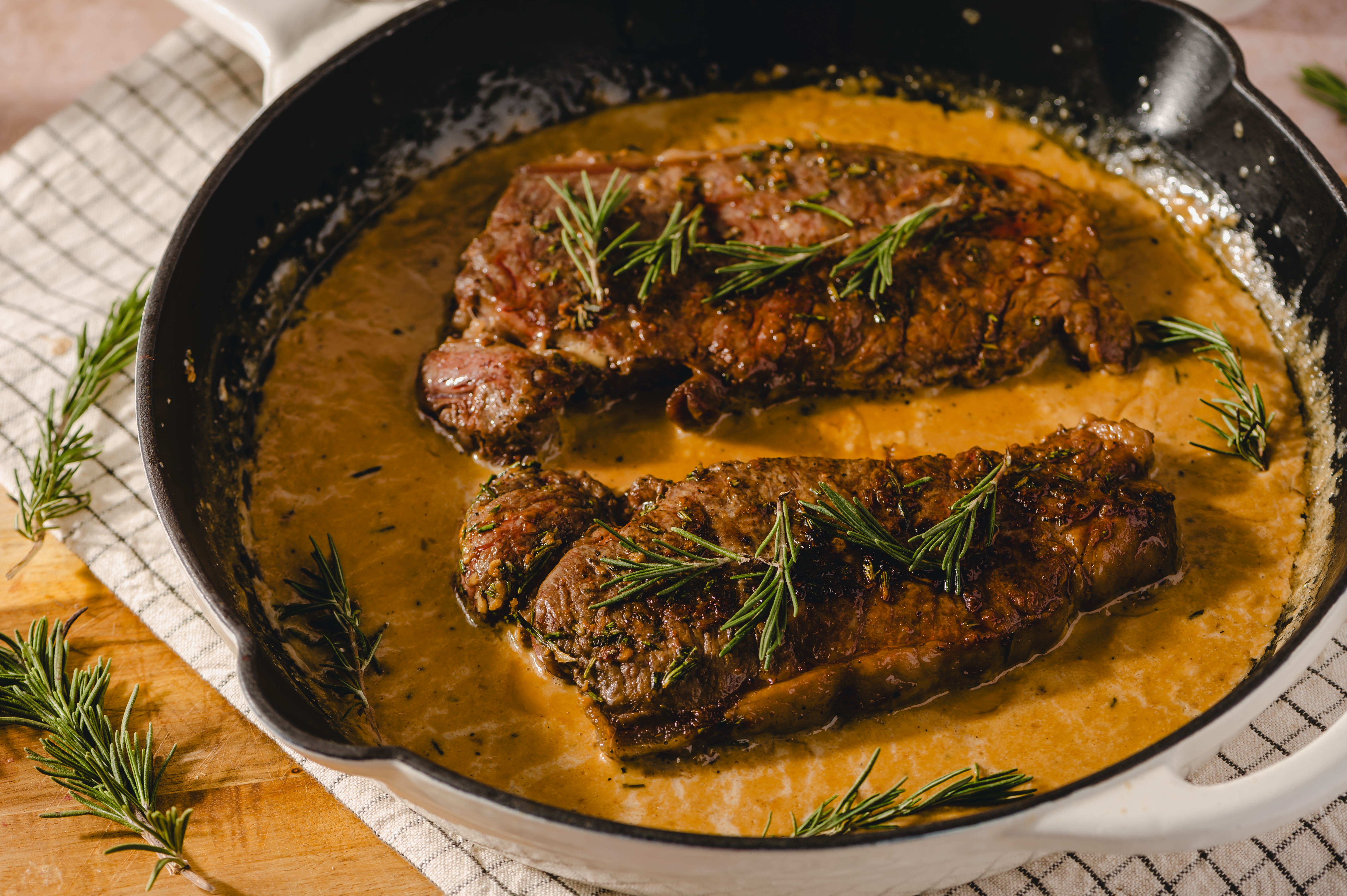 What's romance without a little dazzle? Romance-Me Steak works to truly amaze your taste buds (and the taste buds of your favorite person). The steaks are pretty cooked with a lightly rosy center and gorgeous golden crust; they're just so juicy and succulent! And then there's the creamy, bright, sherry-infused pan sauce draped all over! You're going to fall in love with Romance-Me Steak... over and over again!