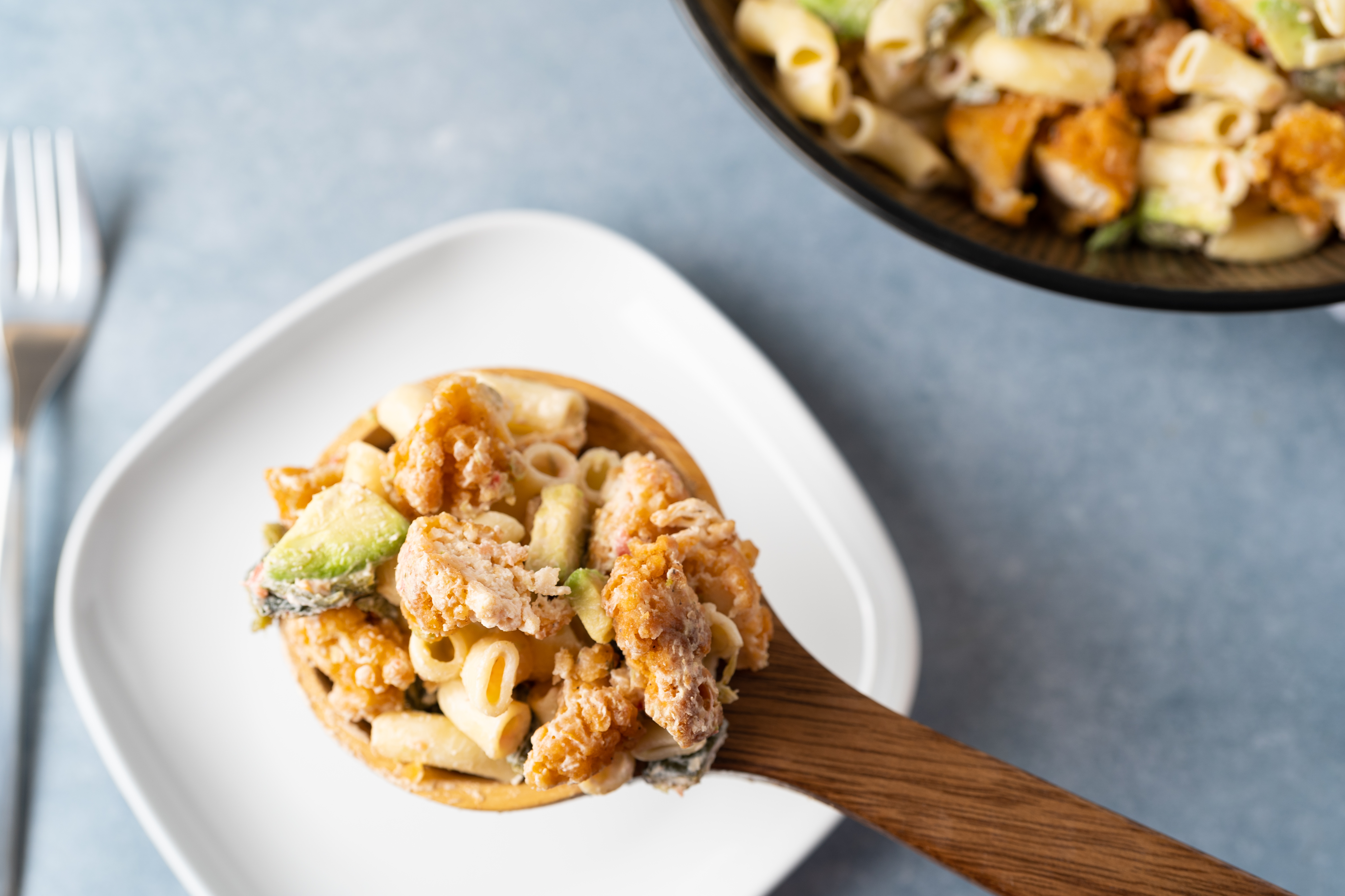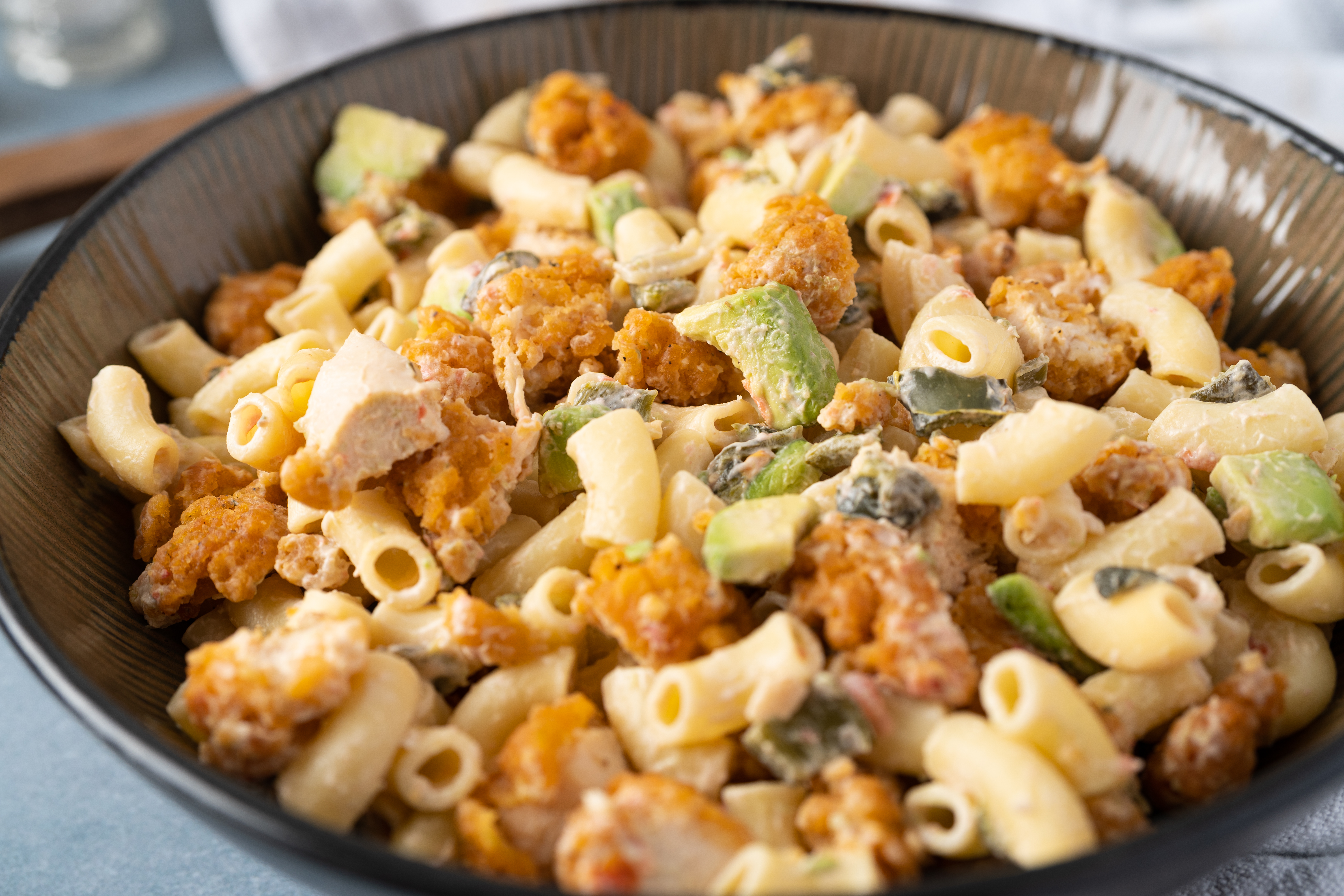 Get your tastebuds ready to ride! Saddle Salad is about to take them on the wildest flavor adventure this side of the Mississippi! This yeehaw of an escapade is trailing with crispy chicken strips, tender macaroni, and a creamy tomato salsa that will have you riding the trails home as quickly as you can to fill up your bowl! You better get on home now; the dinner bell is a ringin'! Giddy on up for some Saddle Salad!