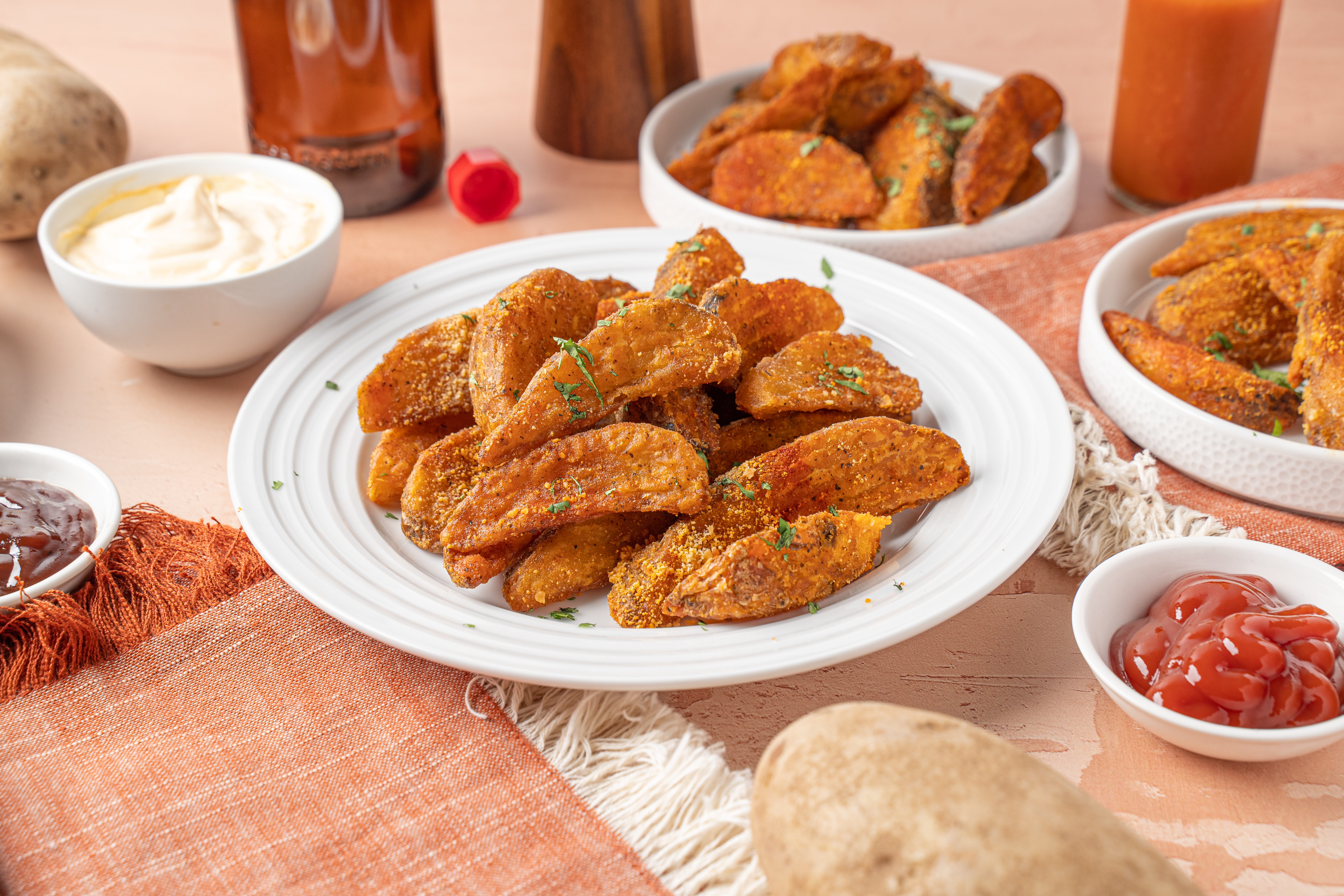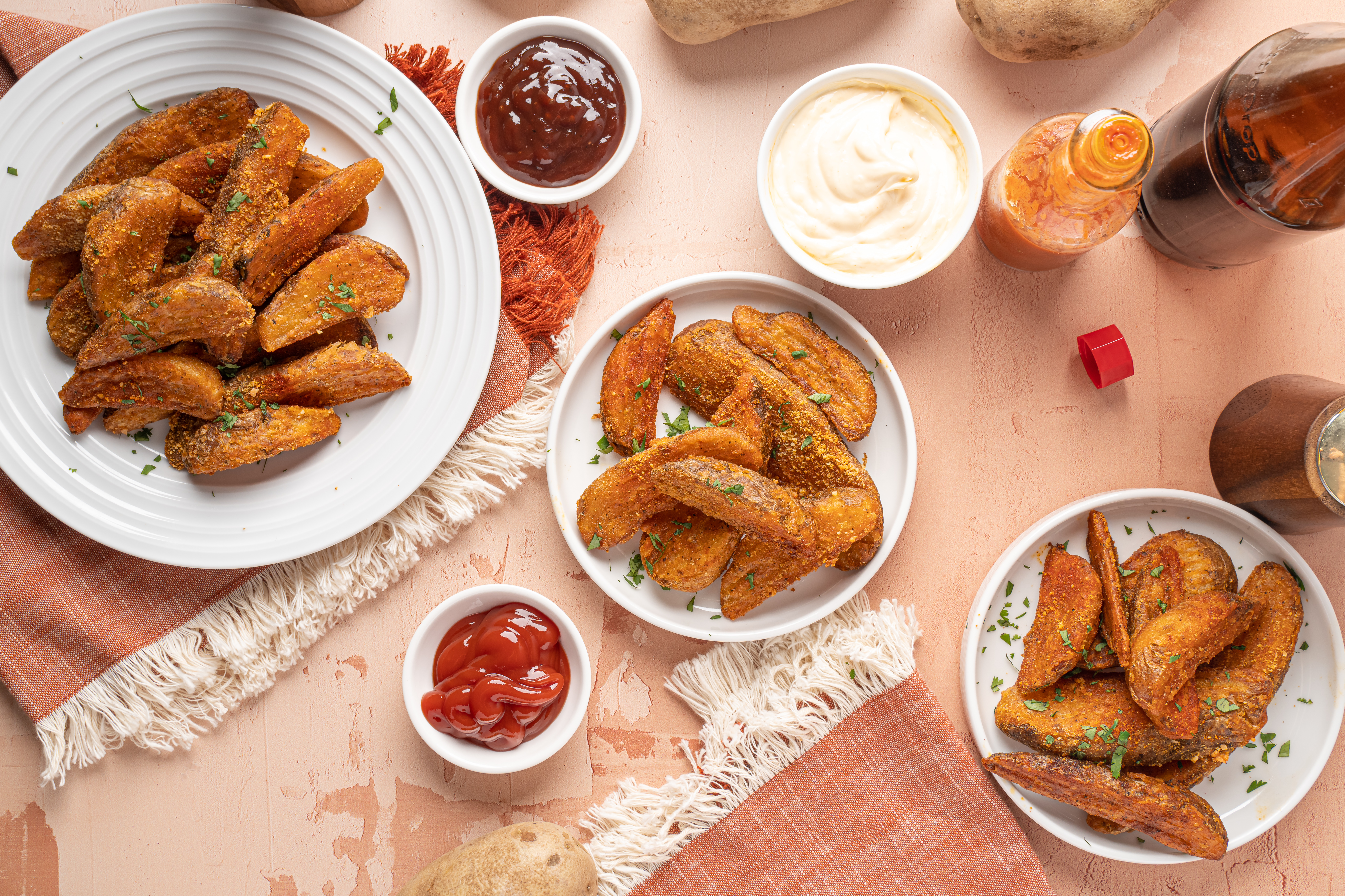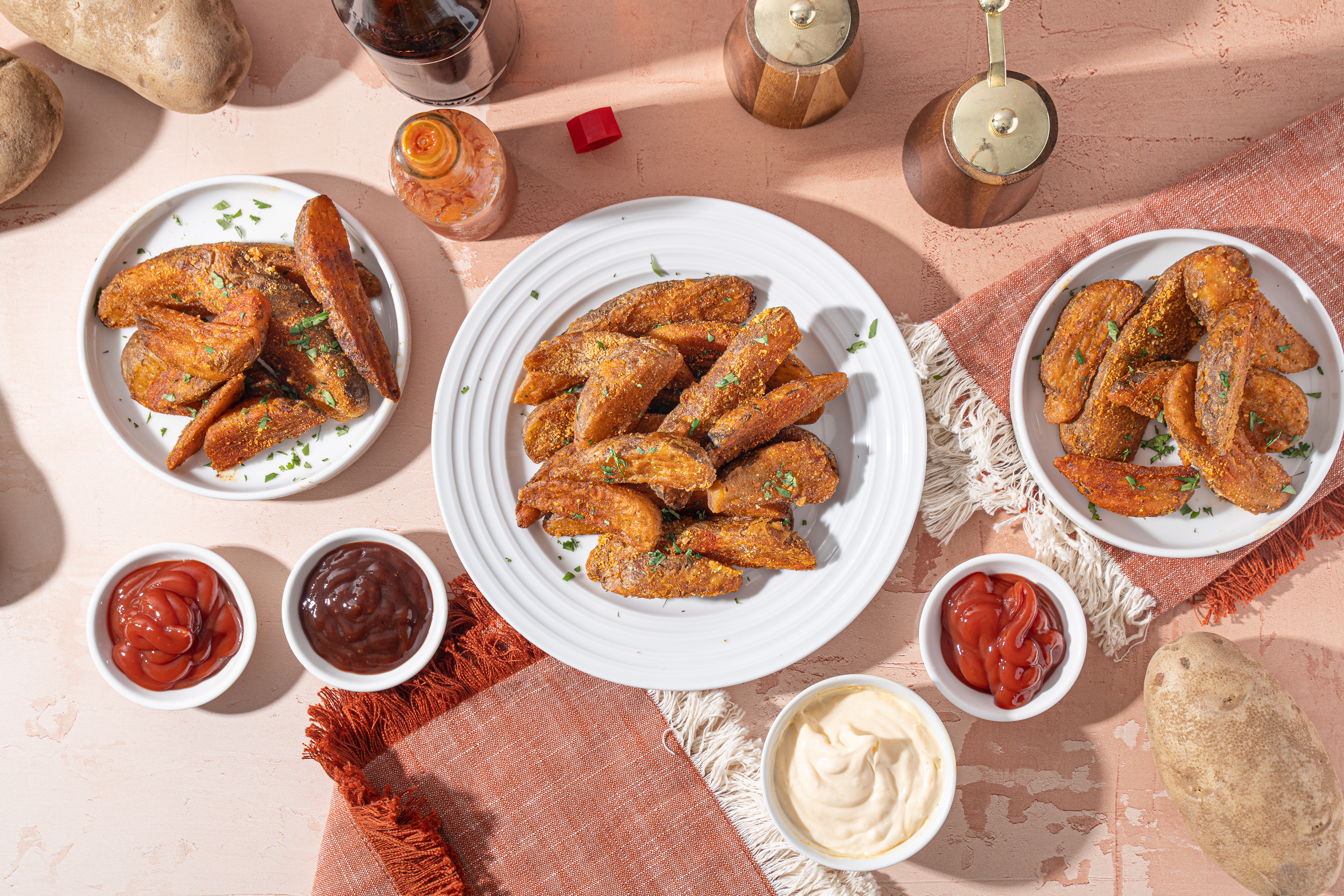 - 5 large russet potatoes, washed and dried, cut into wedges