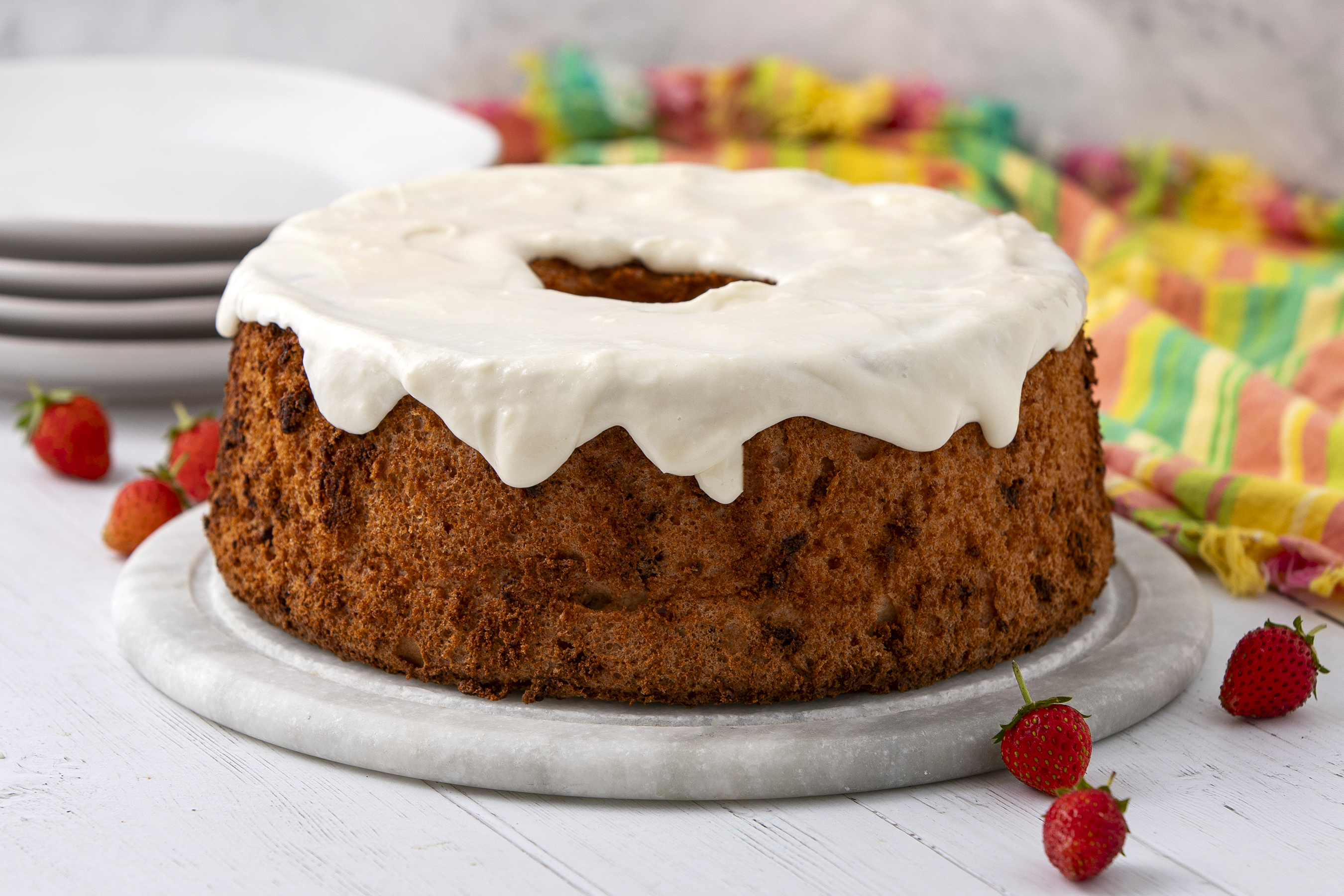 Step 7 -Transfer the cake from the oven and immediately invert the tube pan onto a wire rack to cool.