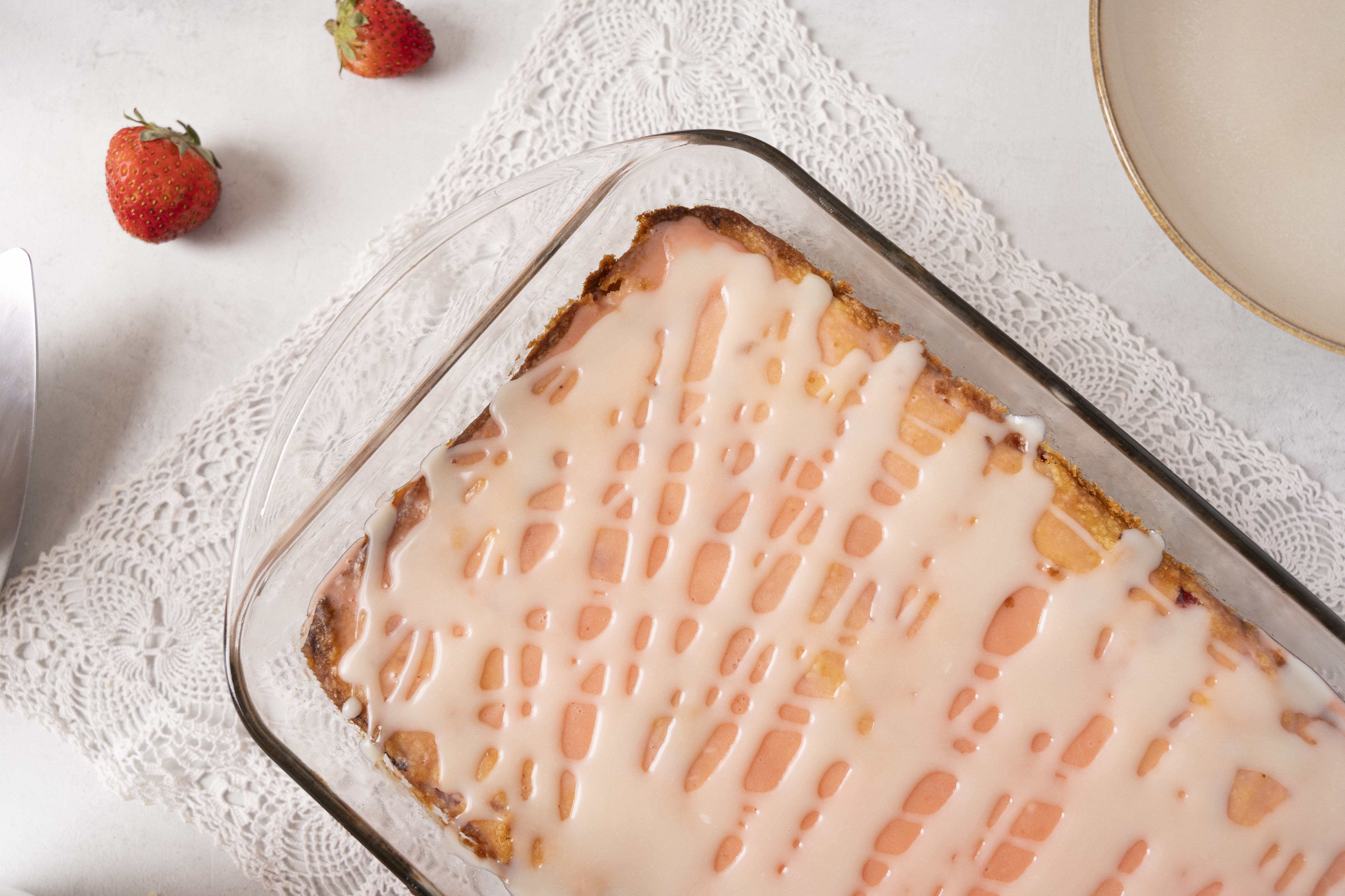 There's still time for one more truly refreshing, summery dessert before autumn starts in earnest! And what better way to encapsulate summer than with Strawberry Lemon Blondies? It's like the coolest beverage of the season baked into a fudgy cake form! The bright lemon and strawberry flavors are baked into the tender, sweet blondie, and then it all gets topped with a creamy glaze with even more of that deliciously fresh fruit flavor! Take a bite of Strawberry Lemon Blondies and let your taste buds enjoy a little bit more summer fun!