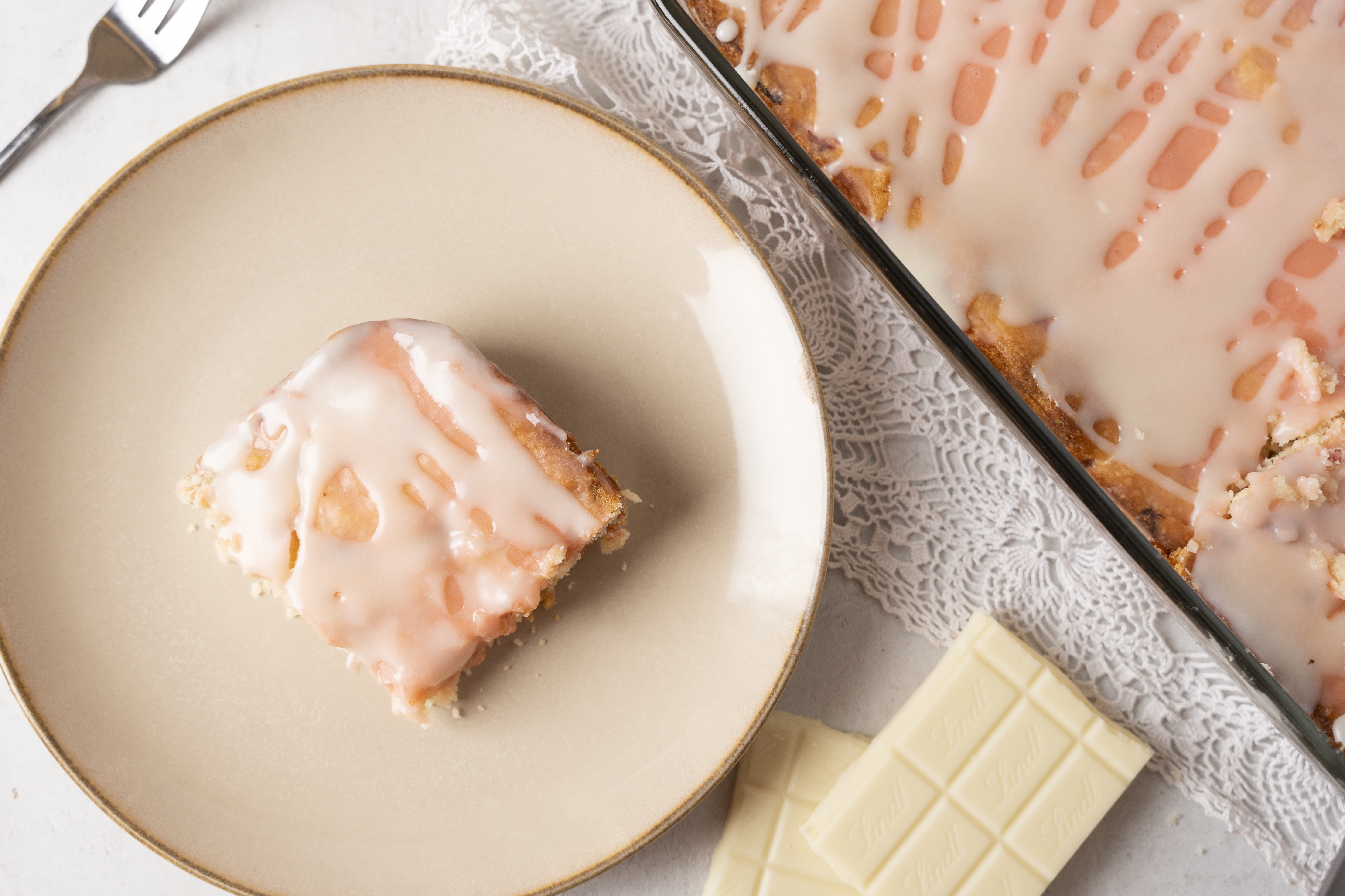Step 15 -Pour the glaze over the cooled blondies and quickly spread it out evenly.