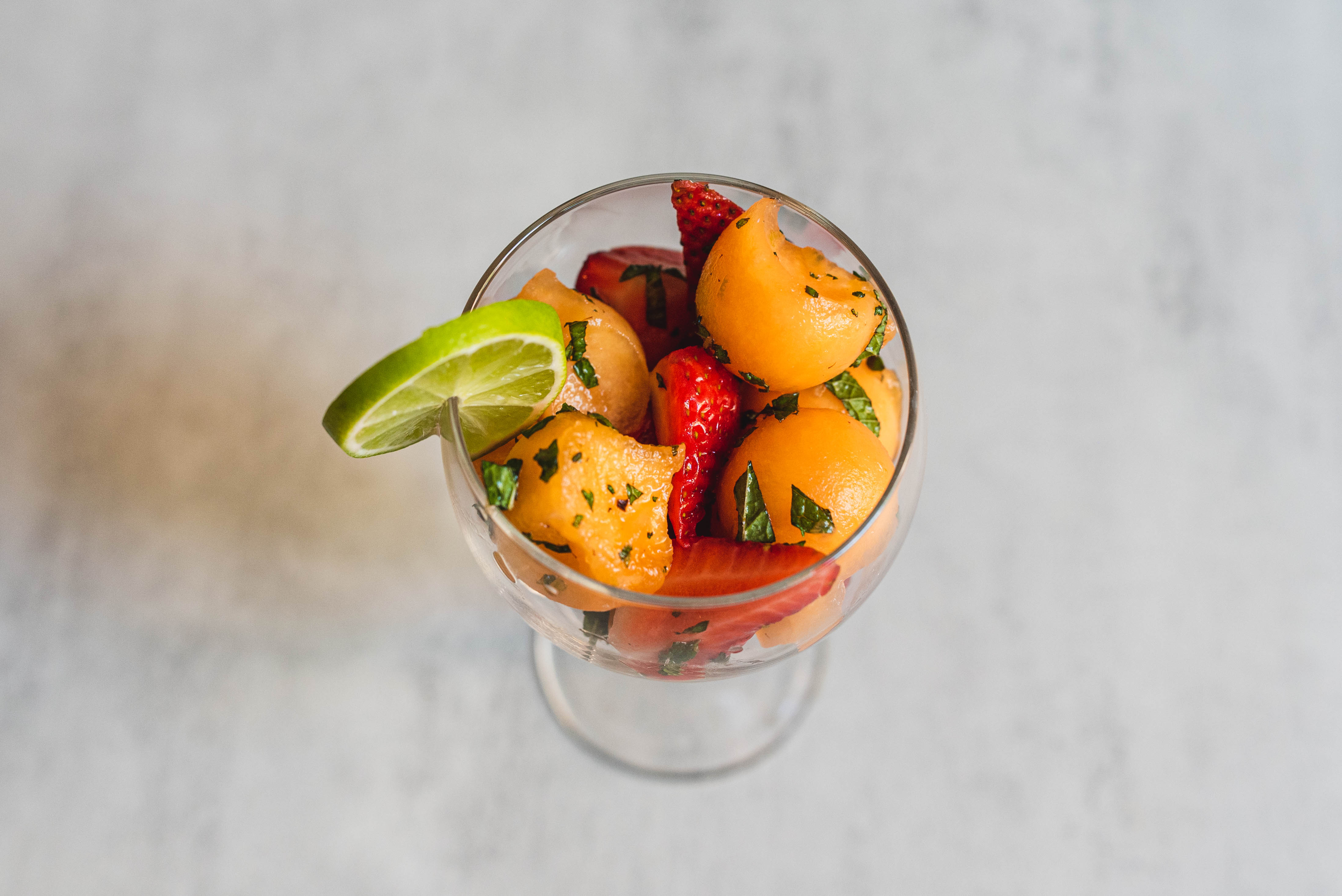 Step 1 -In a medium bowl, combine the strawberries and the cantaloupe.