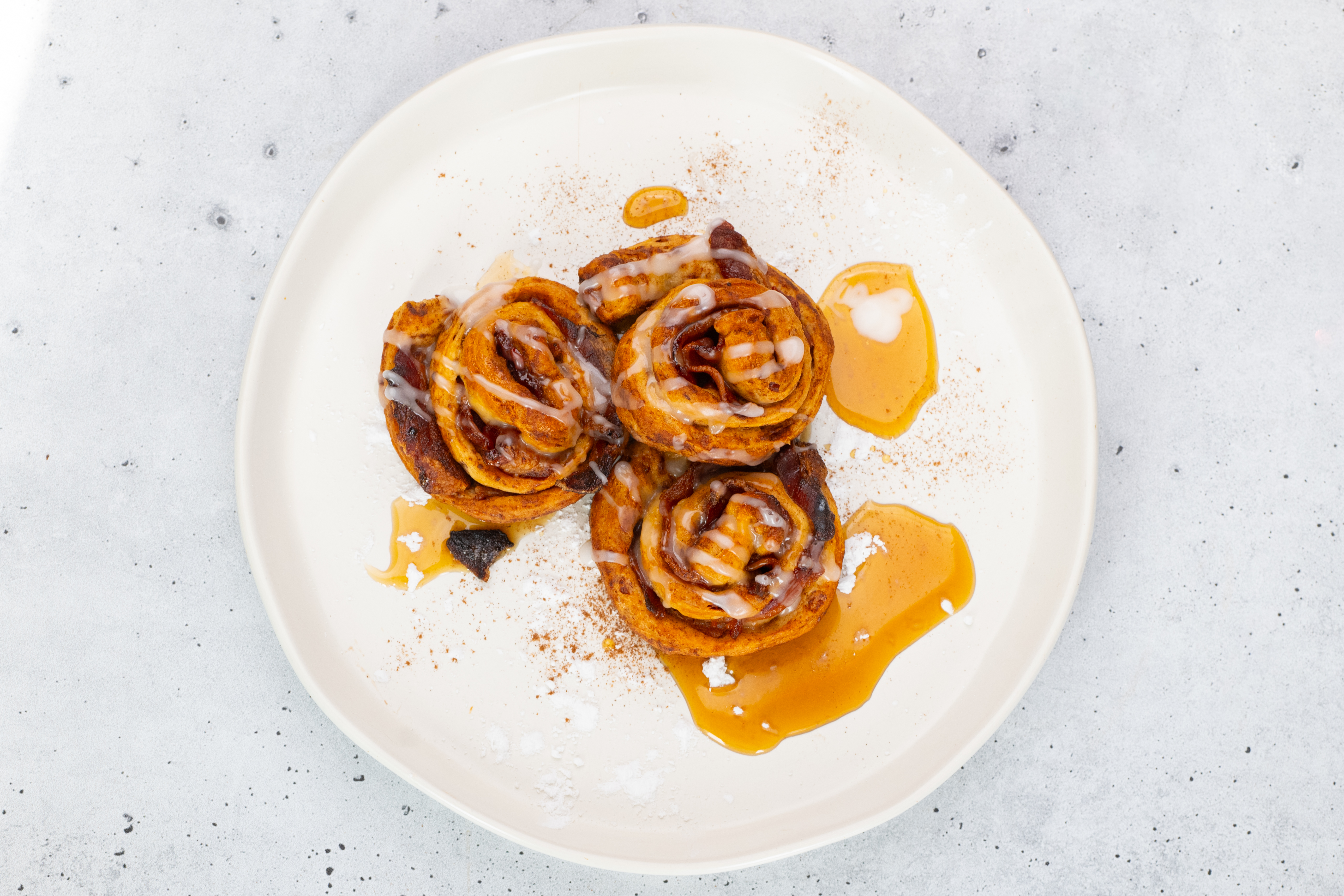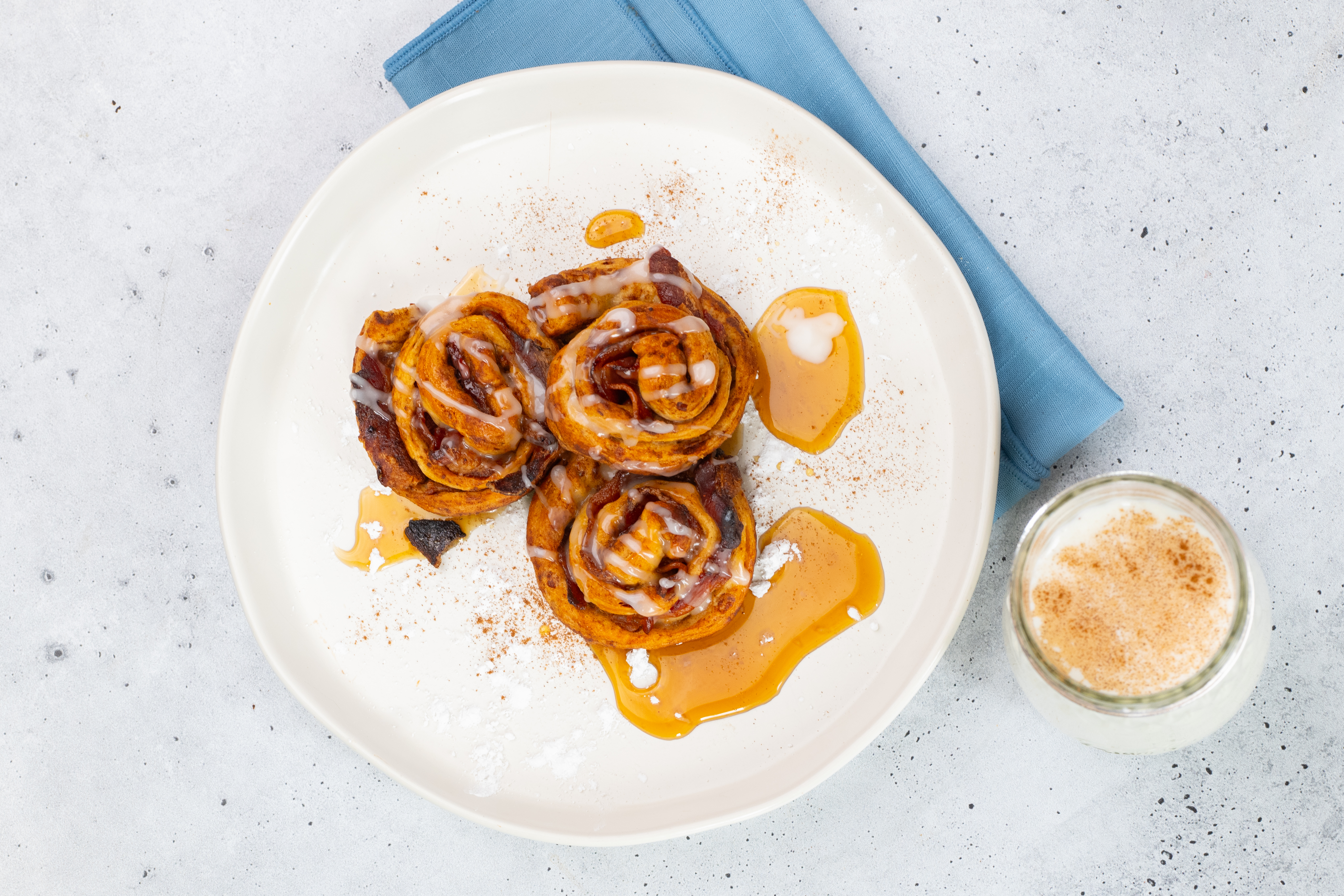 Sunday Cinnamon Rolls have a surprise inside. You know how people love to combine sweet and savory? Sunday Cinnamon Rolls maybe go one step beyond that. There's bacon in the rolls. Yes, nestled in between all that delicious smoky-sweet cinnamon sugar is maple-glazed bacon slices for that succulent, crispy endorphin hit! Your taste buds will be thrilled that it's Sunday and you are treating them to something special!