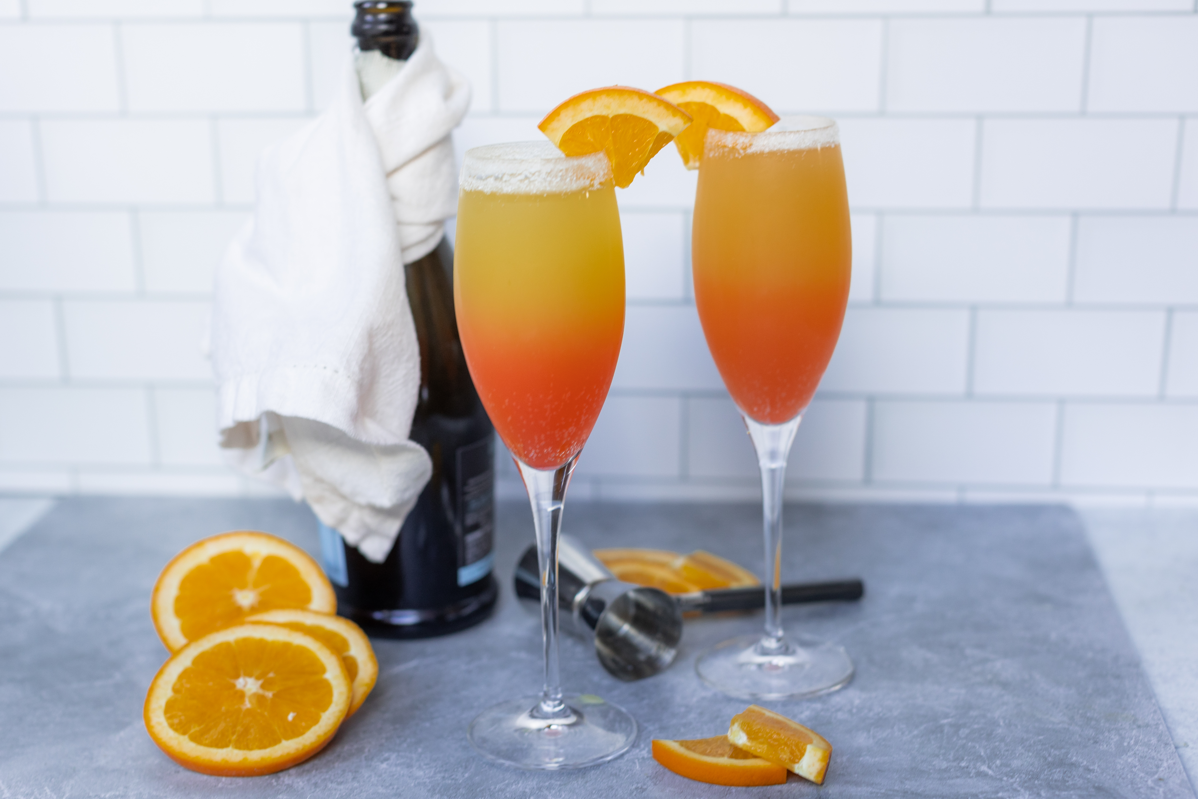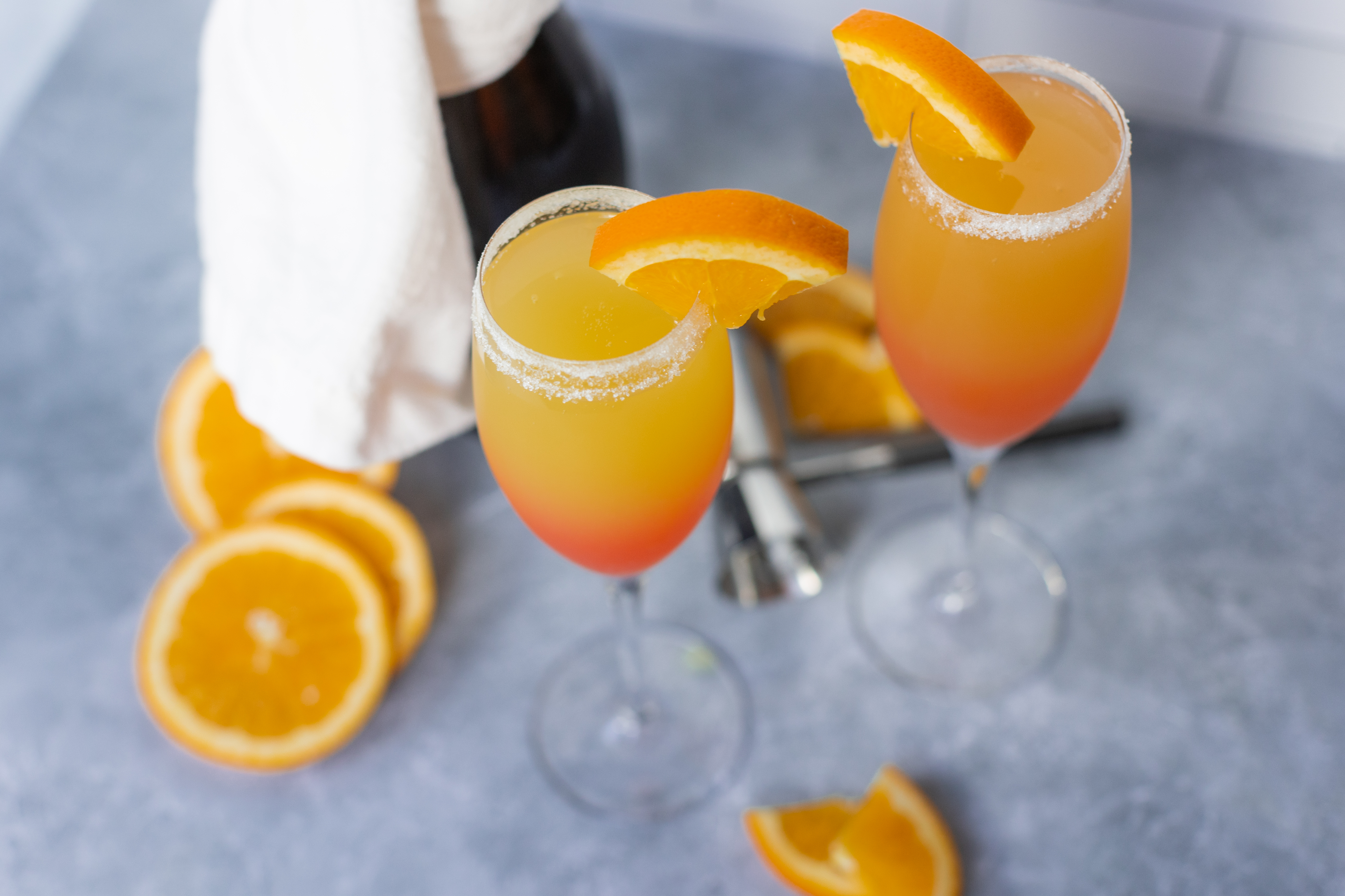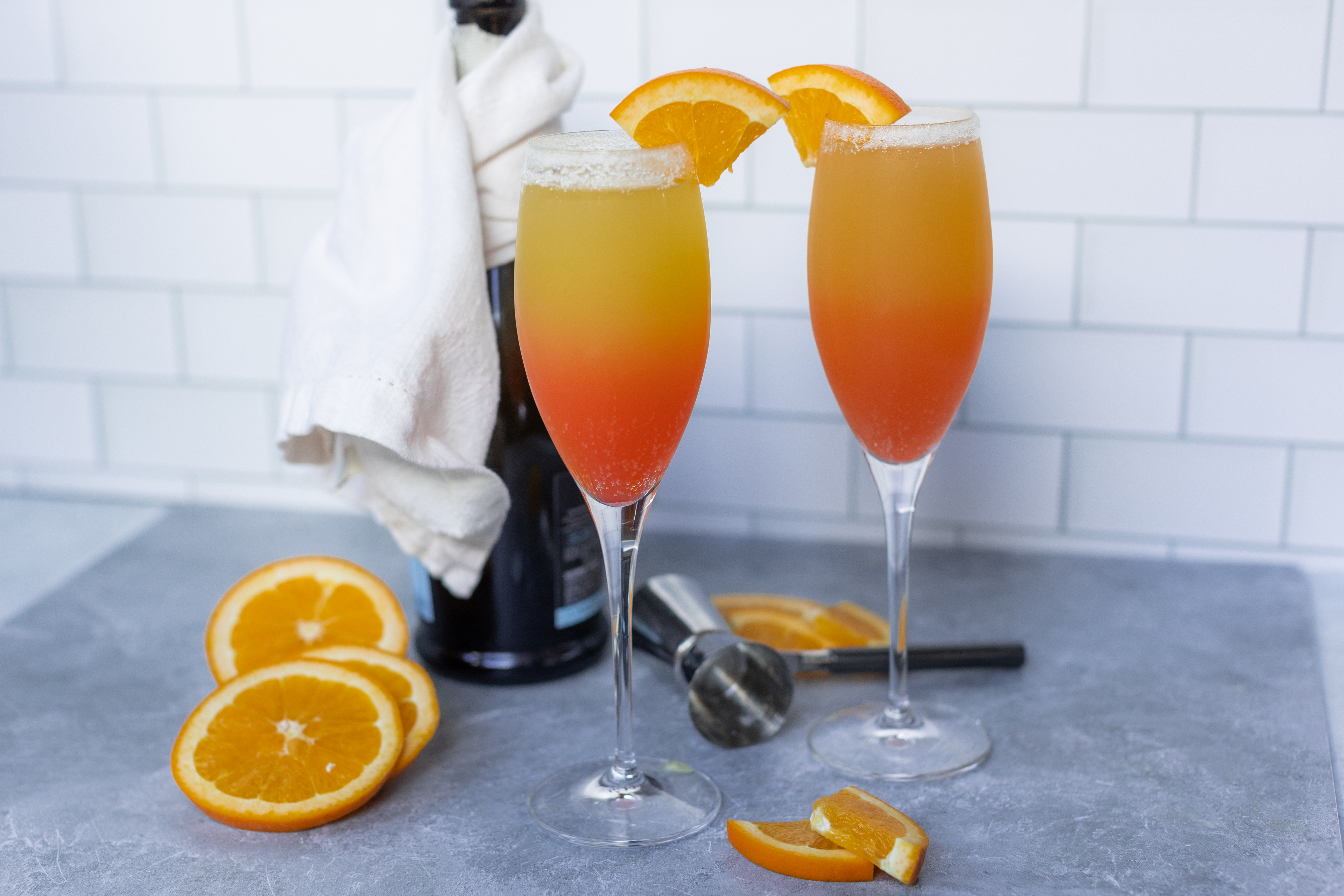 The beauty of the sunrise can be found on your brunch table, so long as you have cold Sunrise Mimosas! These gorgeous cocktails are just as sunny and cheery as your day, with bright orange juice and the surprise addition of some bold tequila working together to put a smile on your face! A sugar rim and a touch of grenadine add new color and sweetness to your morning! Sunrise Mimosas will have even night owls looking forward to the start of the day!