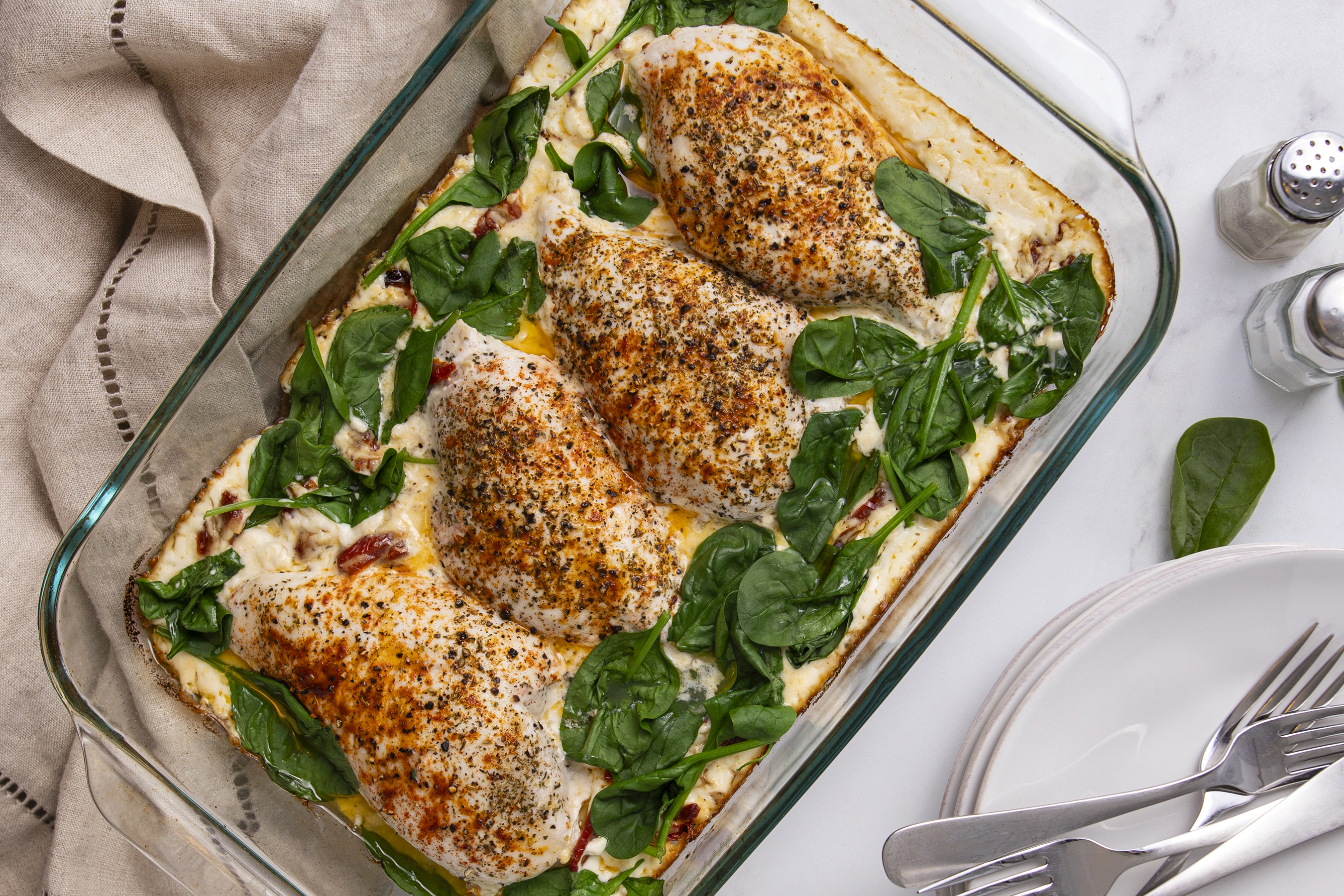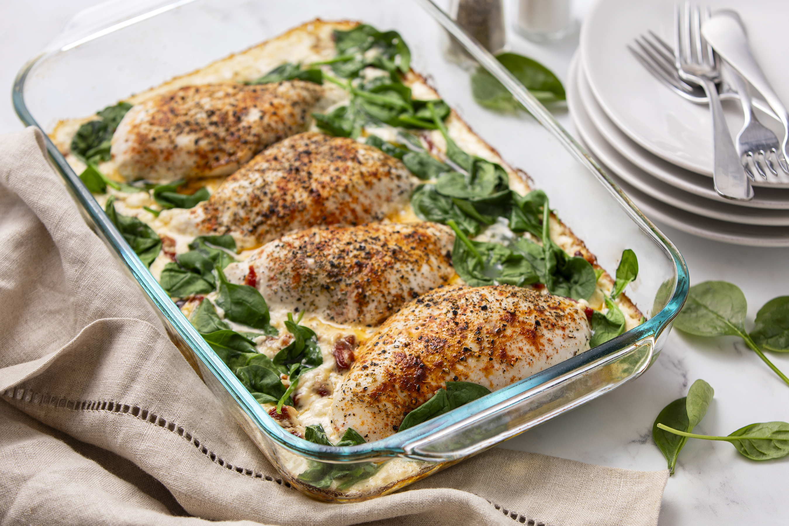 Everyone's been singing the praises of and passing the word about the Talk-of-the-Town Tuscan Chicken! It's easy to see how this dish got to such a lofty position. The chicken is extra tender, as it essentially braises in a savory, garlic-infused cream sauce with vibrantly sweet sun-dried tomatoes and sharp parmesan. Then for a full Tuscan experience, it throws in some wonderfully wilted spinach! Talk-of-the-Town Tuscan Chicken will certainly have you gabbing... when your mouth isn't busy taking another bite!