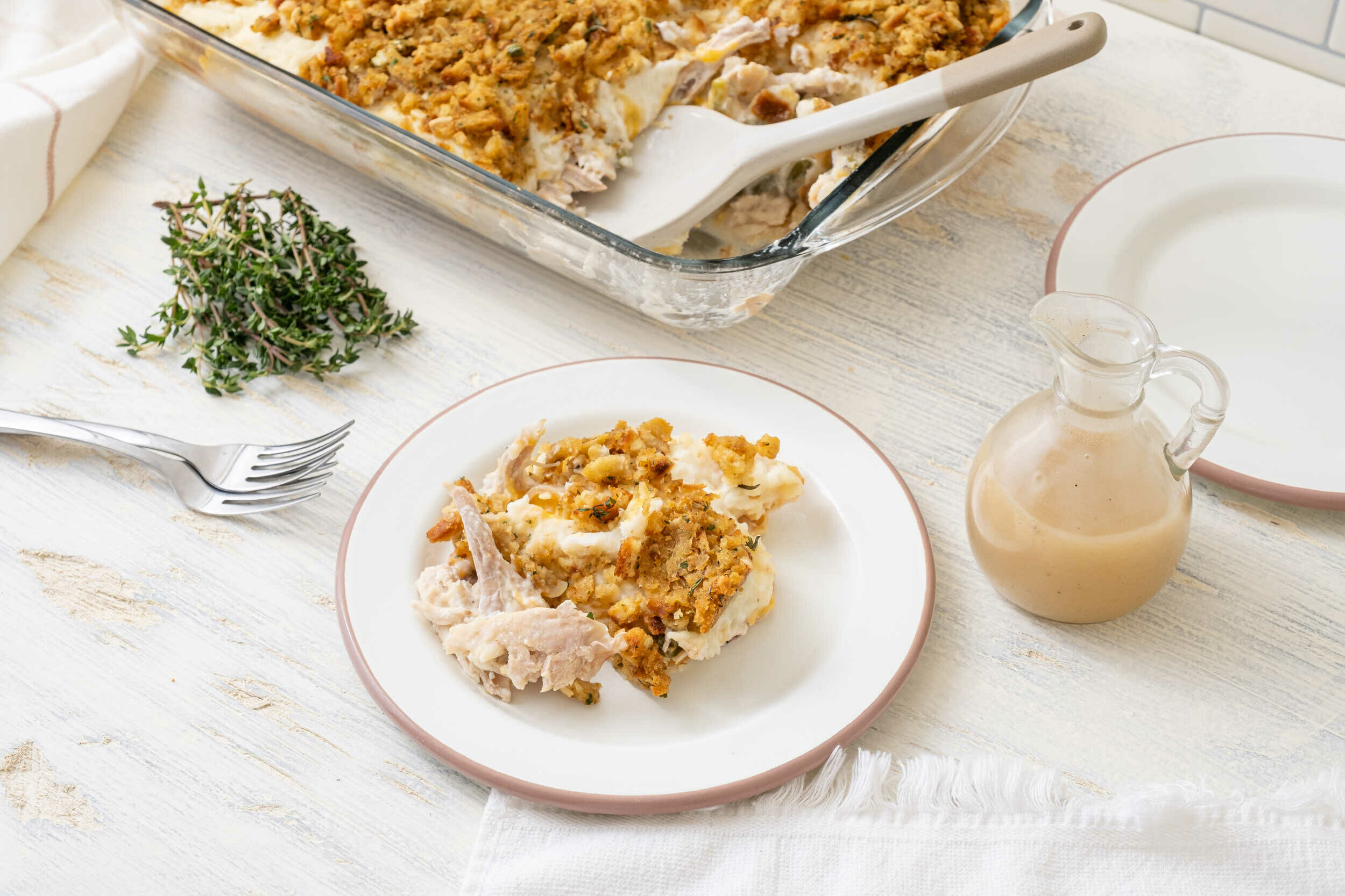 Every fall, people find new and creative ways to get every Thanksgiving flavor into one mouthful. This Ultimate Thanksgiving Table Casserole takes that lip-smacking impulse and runs with it! Every bite is suffused with savory turkey, fresh green beans, and fluffy mashed potatoes, topped with the crunch of toasted stuffing. With a touch of cheddar sharpness and sour cream tang, the Ultimate Thanksgiving Table Casserole is a hearty holiday meal. It's literally layered with love!