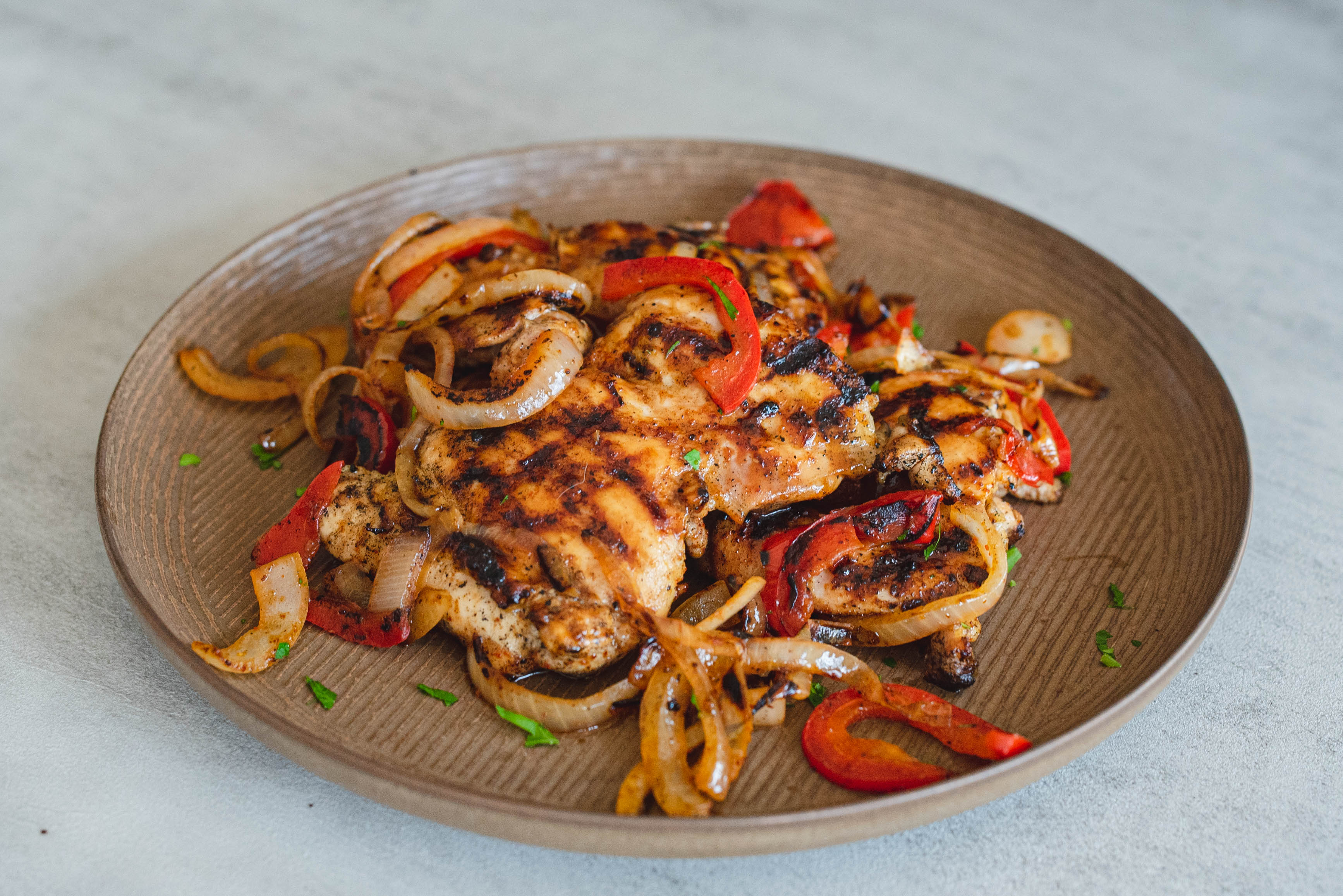 Step 12 -Chop the grilled pepper and the grilled onions and sprinkle them over the chicken.