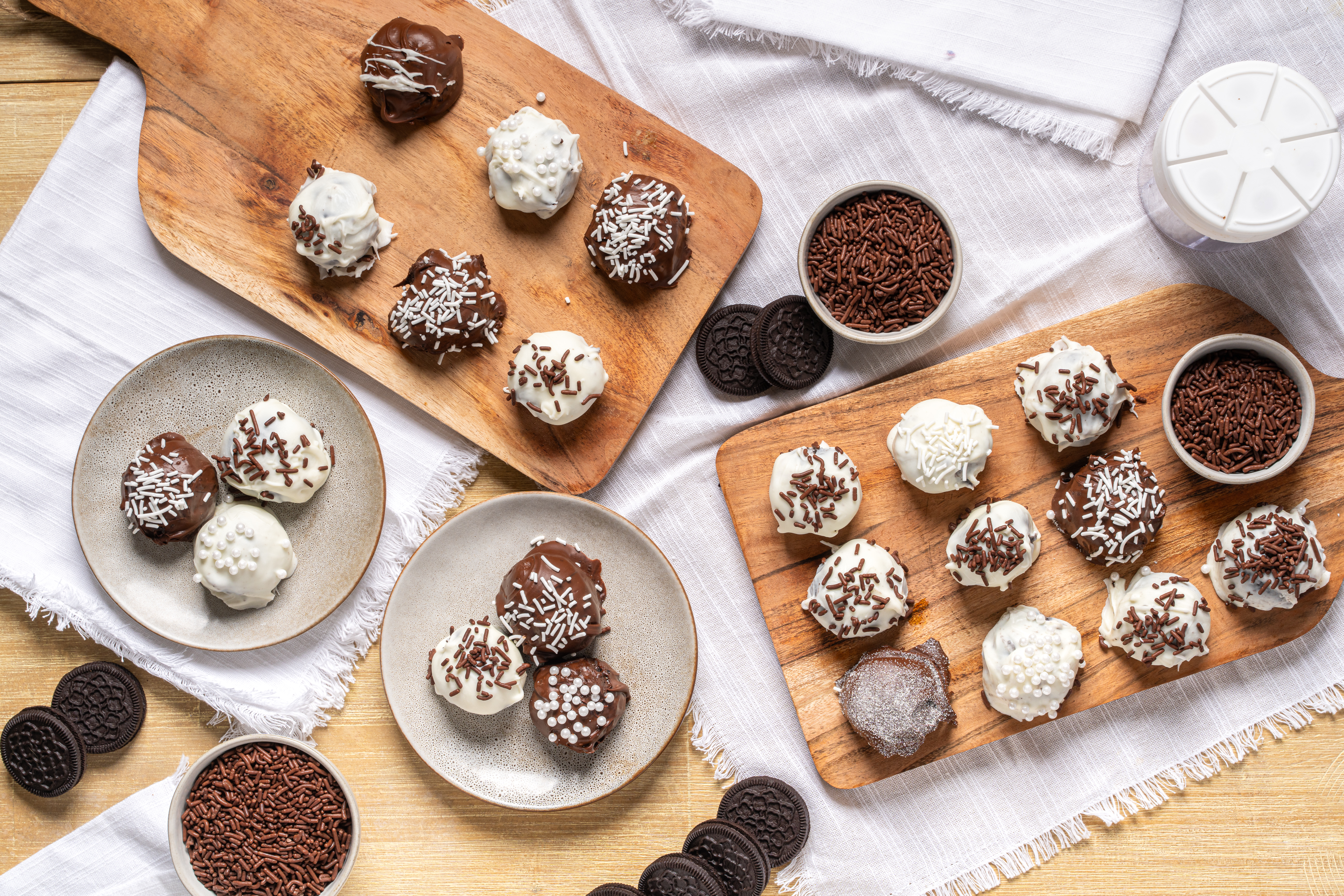 Let your taste buds go walking in a winter wonderland! They'll be jolly, that is for sure! Winter Wonderland Truffles are melty spheres of chocolate with a creamy, tangy, Oreo® cookie filling that's impossible to resist and even harder to stop eating! Whether you prefer white chocolate or bittersweet chocolate, you'll find Winter Wonderland Truffles just so lovable! Make sure you make enough for everyone!